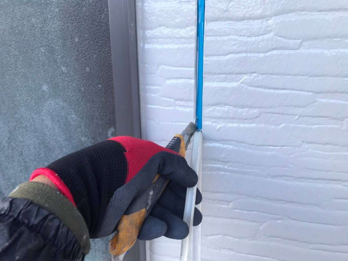 稲沢市Y様邸の昨日の作業内容は、縦目地コーキング(シール)打替え、窓廻り増し打ち作業でした。