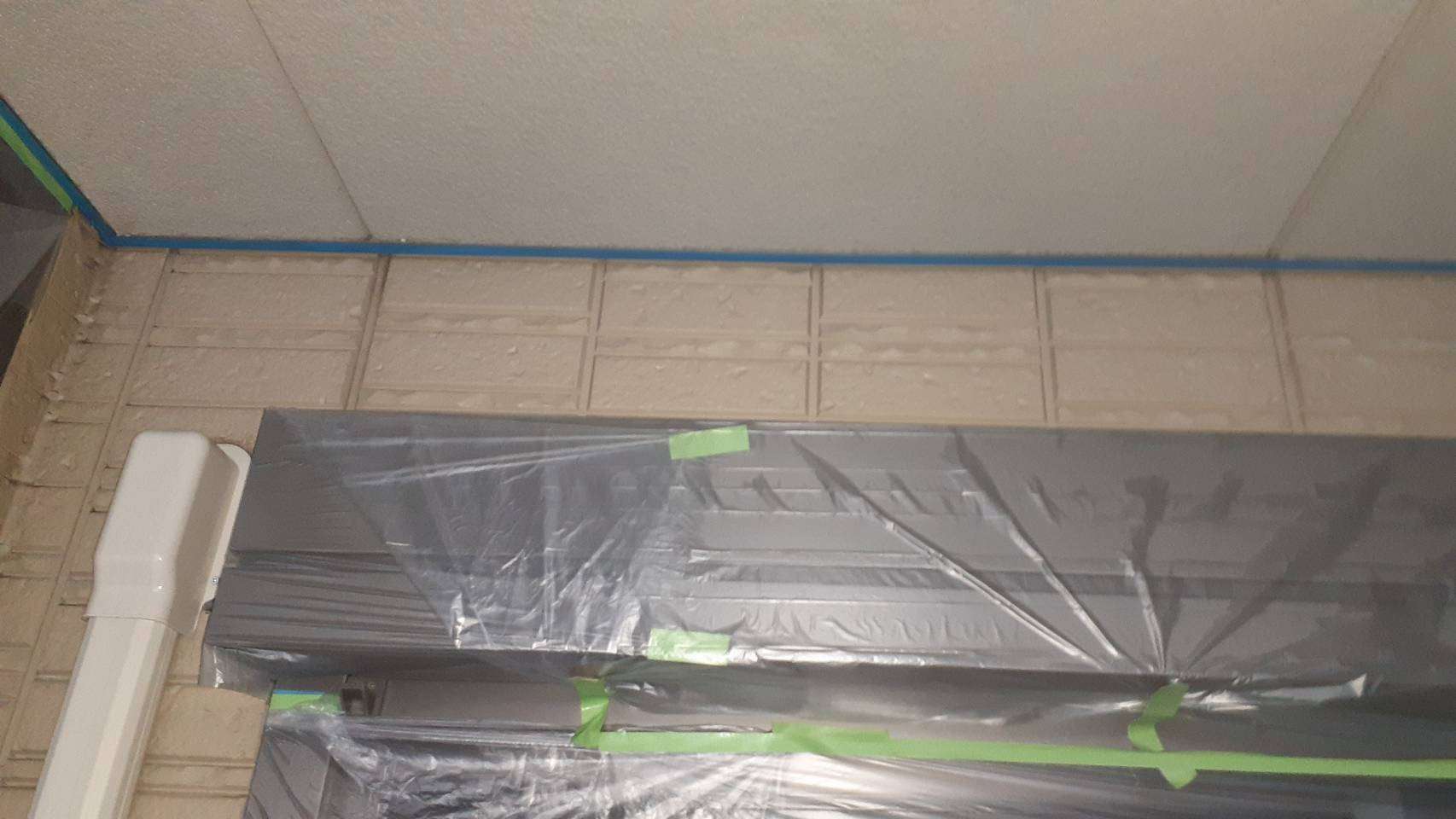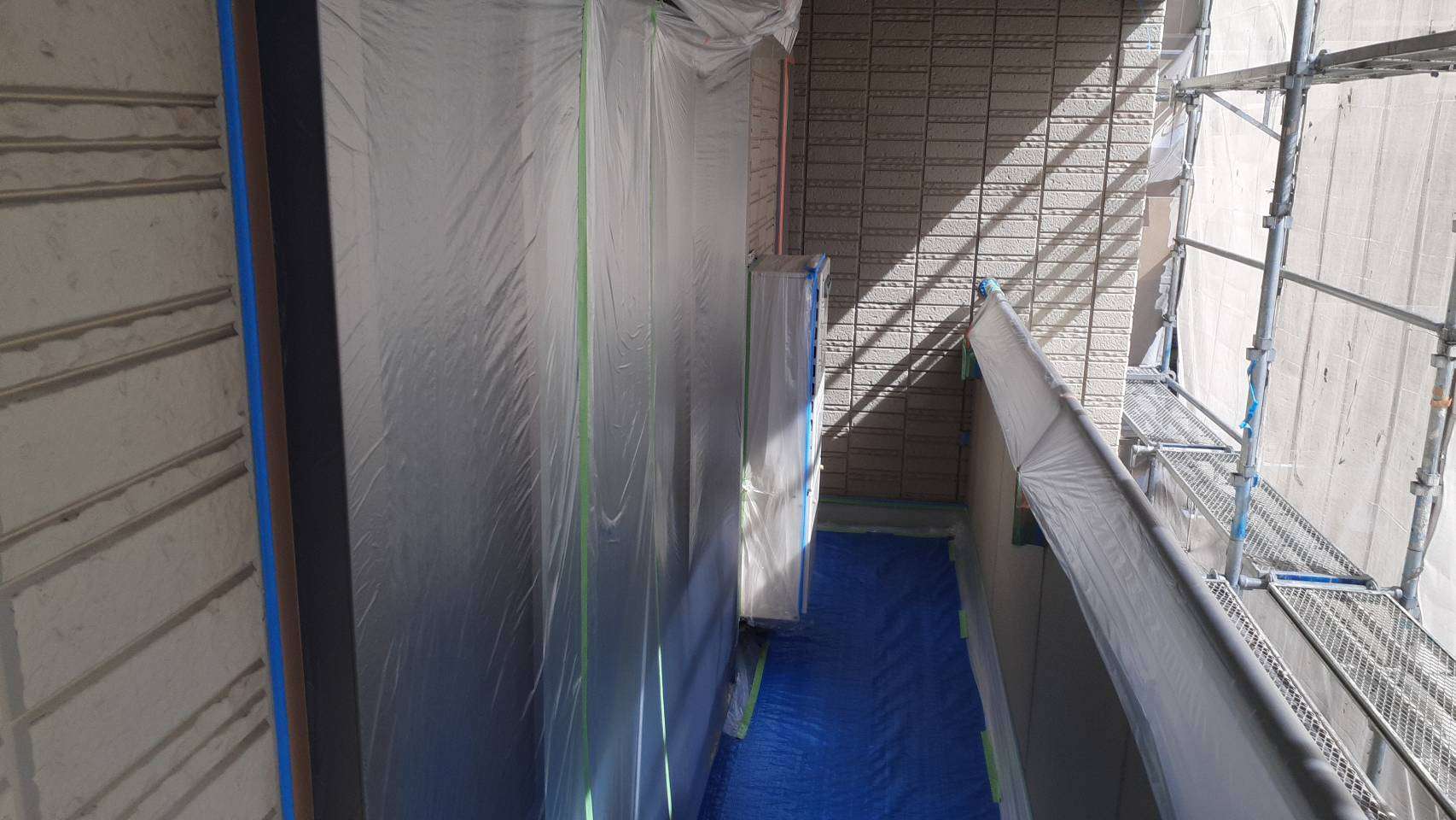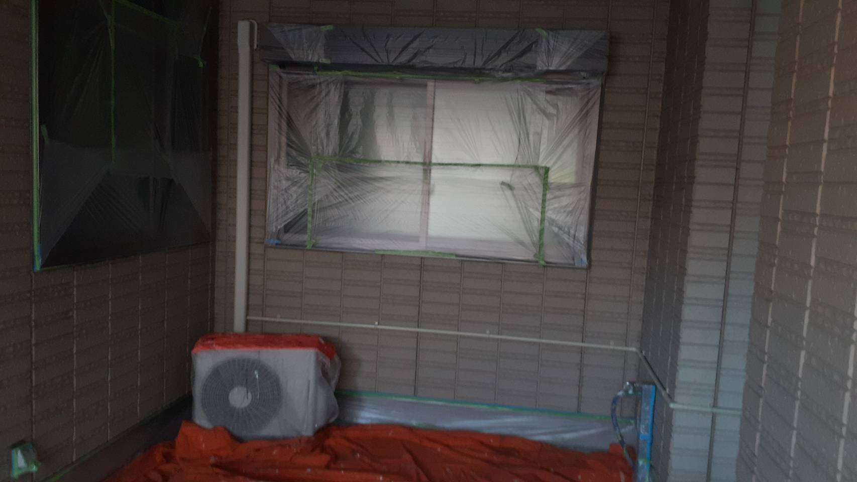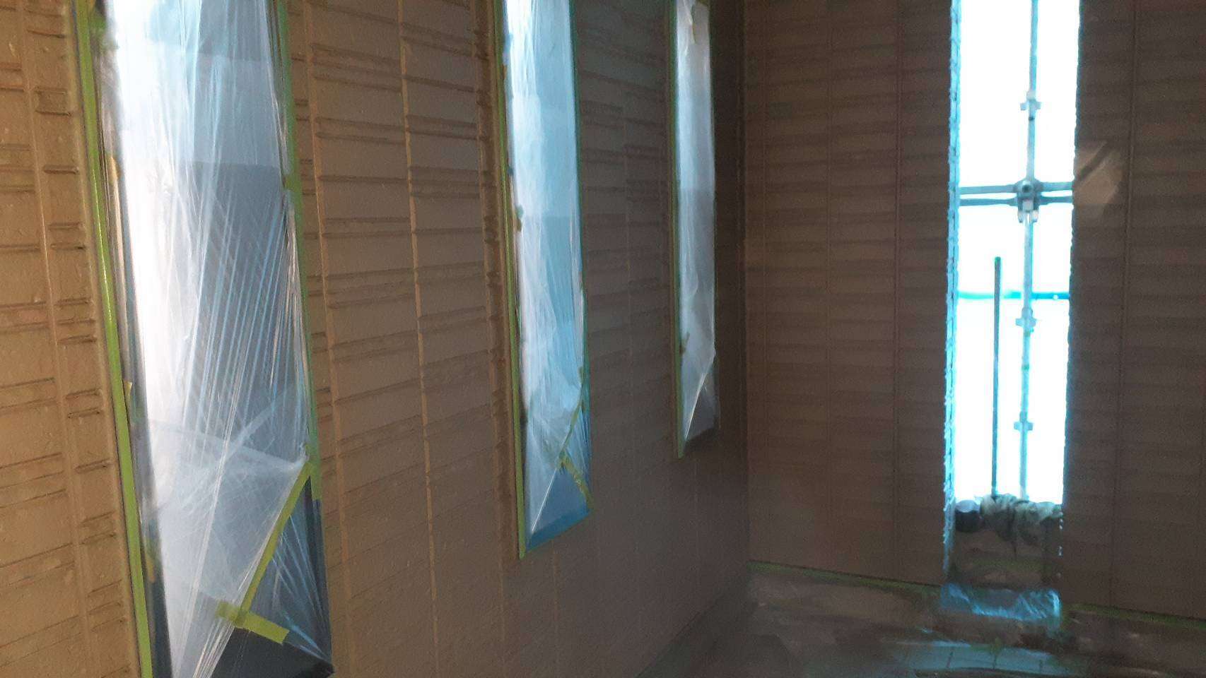 養生作業と外壁の下塗り塗装作業でした。