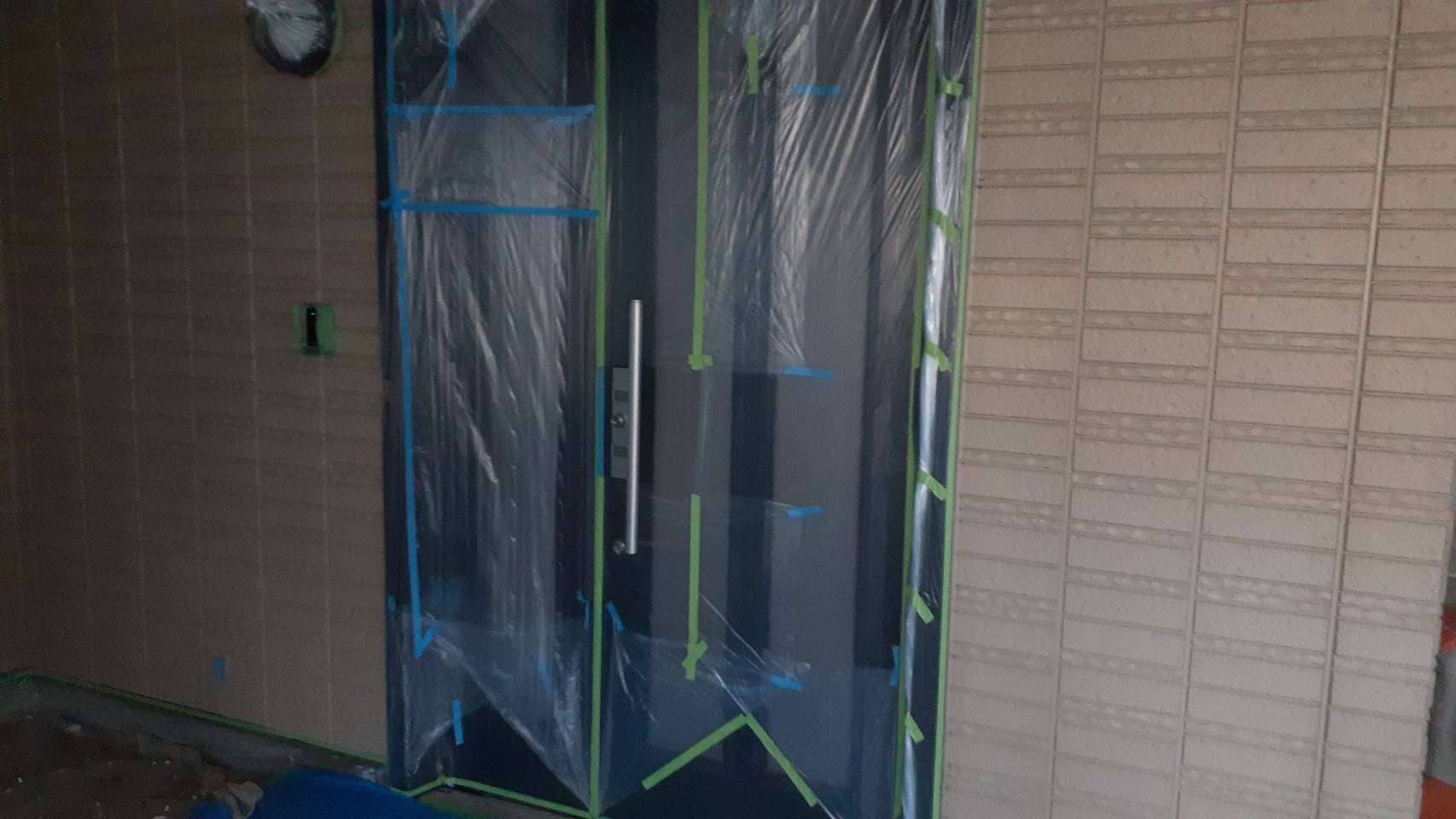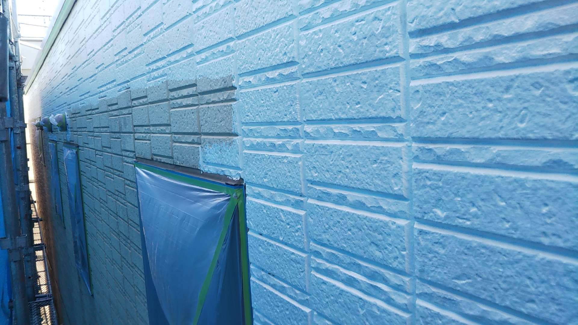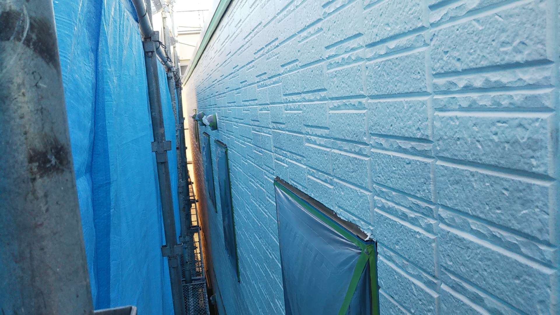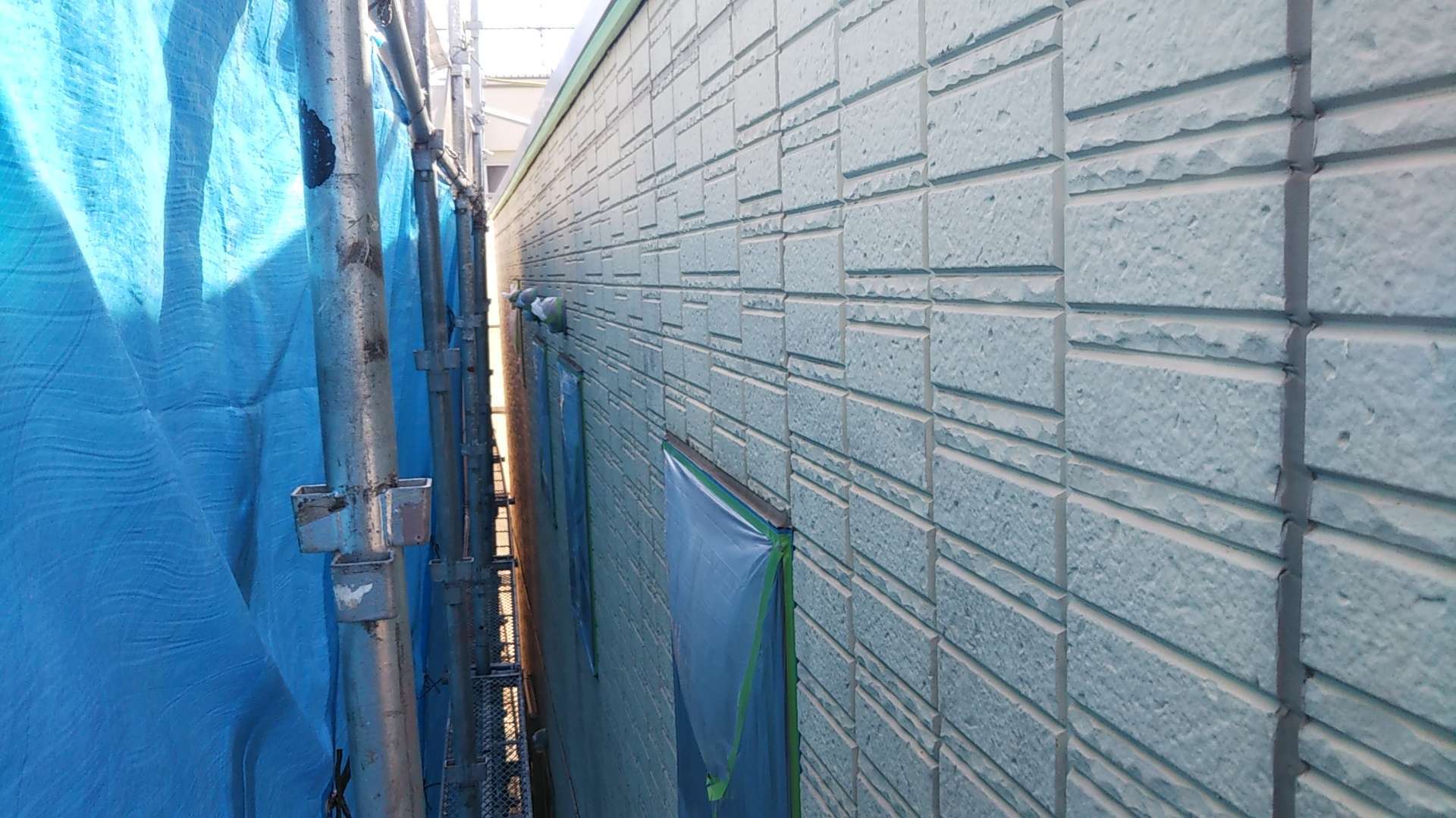 養生作業と外壁の下塗り塗装作業でした。