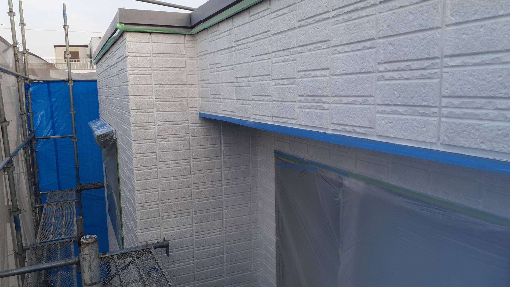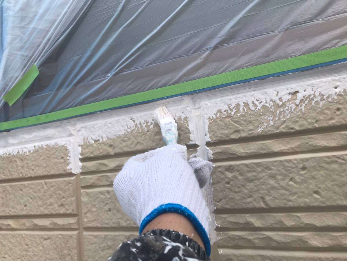 東区、I様邸の昨日の作業は、外壁の下塗り塗装作業でした。