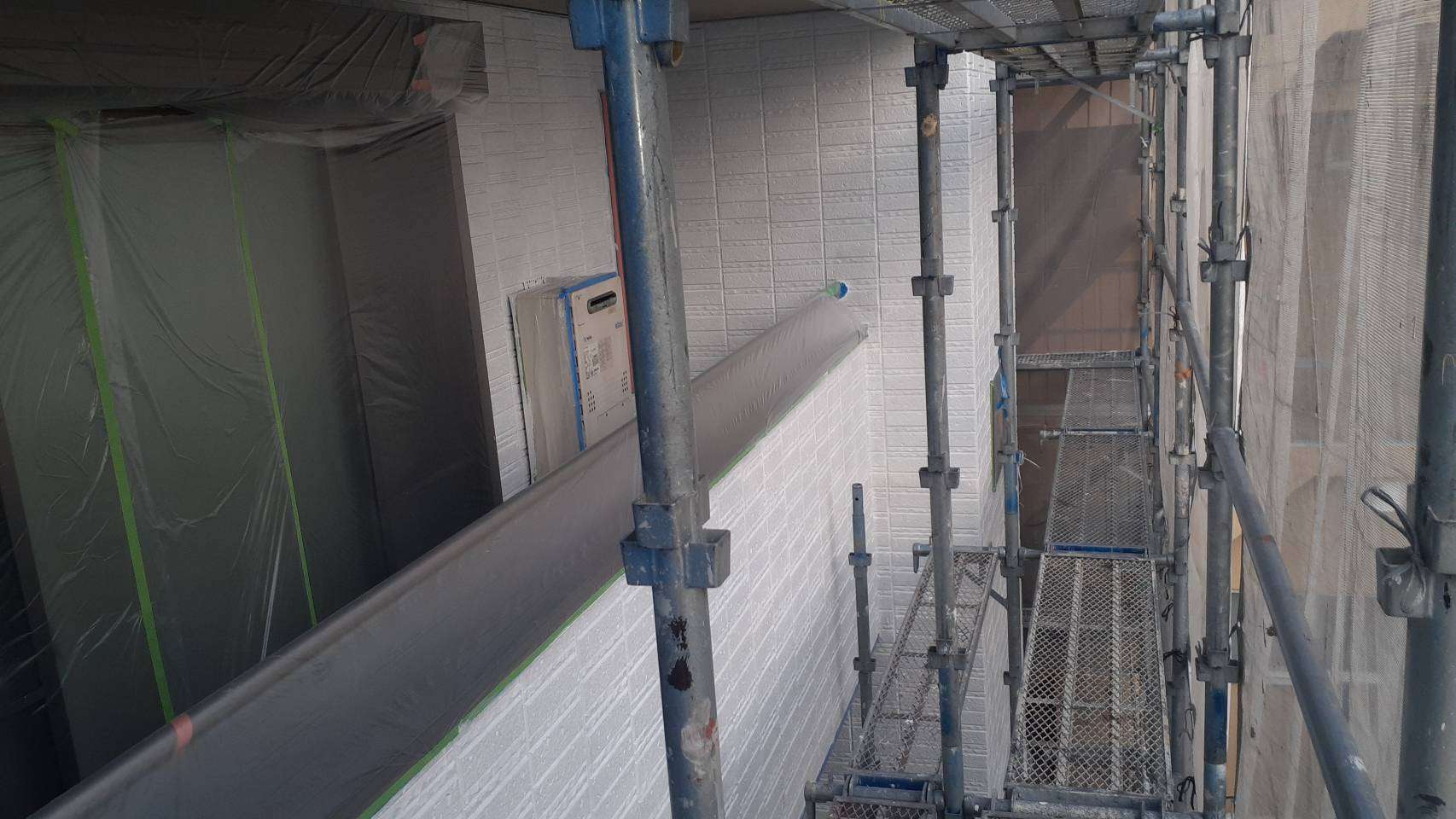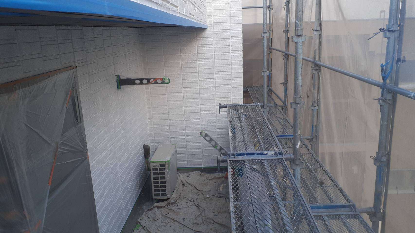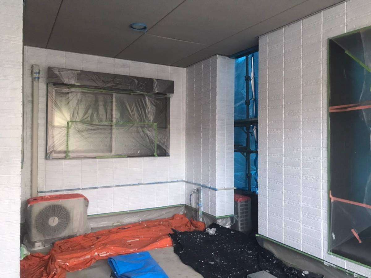 名古屋市名東区 K様邸 外壁塗り替え工事 洗浄作業が終わり、今日は養生作業です! 洗浄作...