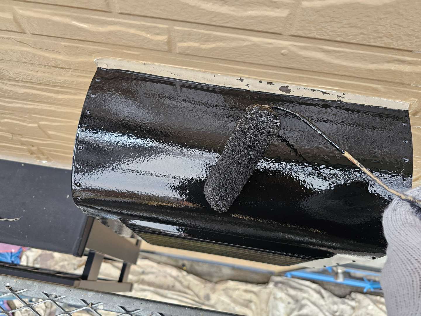 昨日のA様邸の作業内容は、付帯部塗装の上塗り2回目塗装作業を