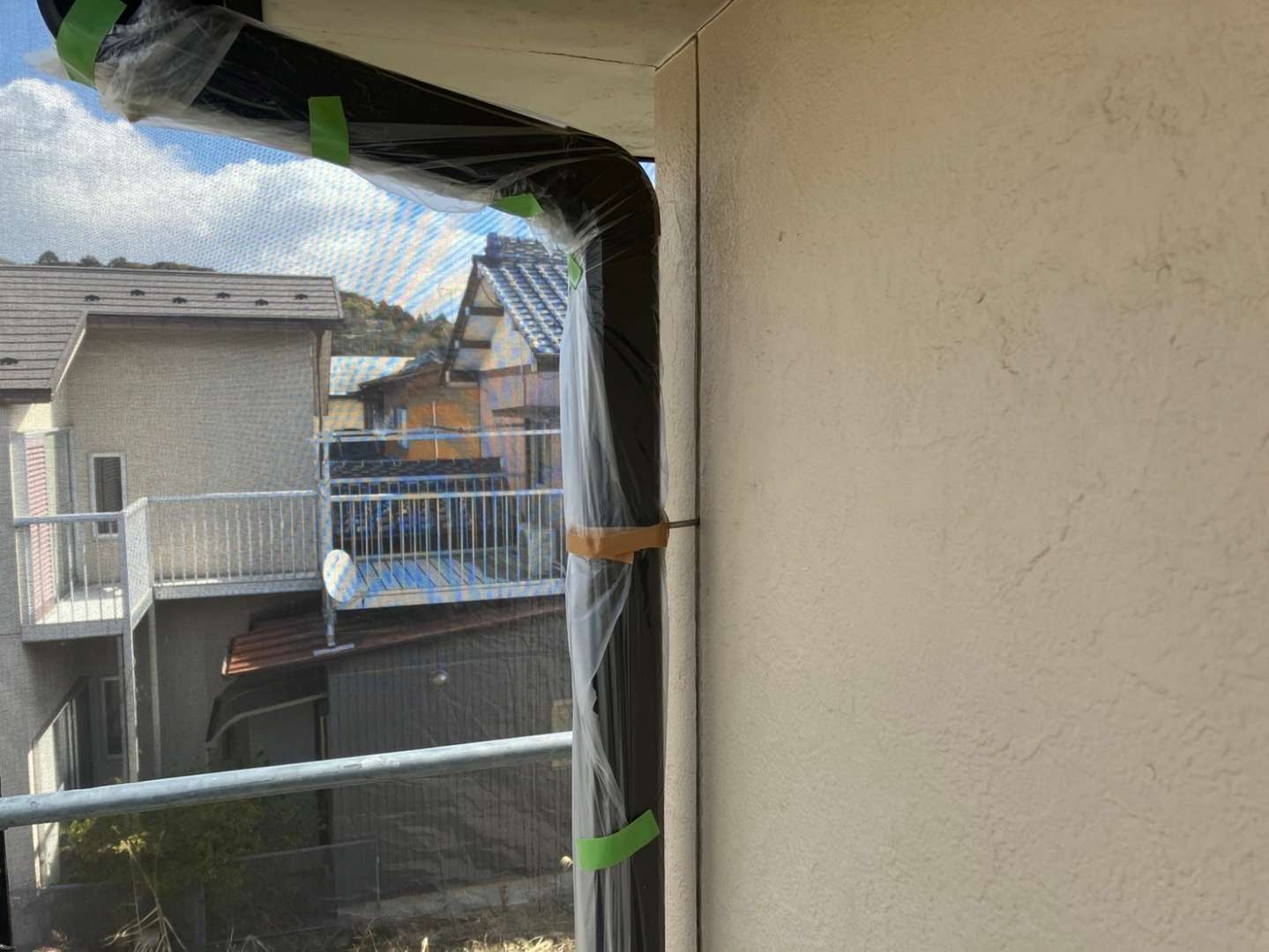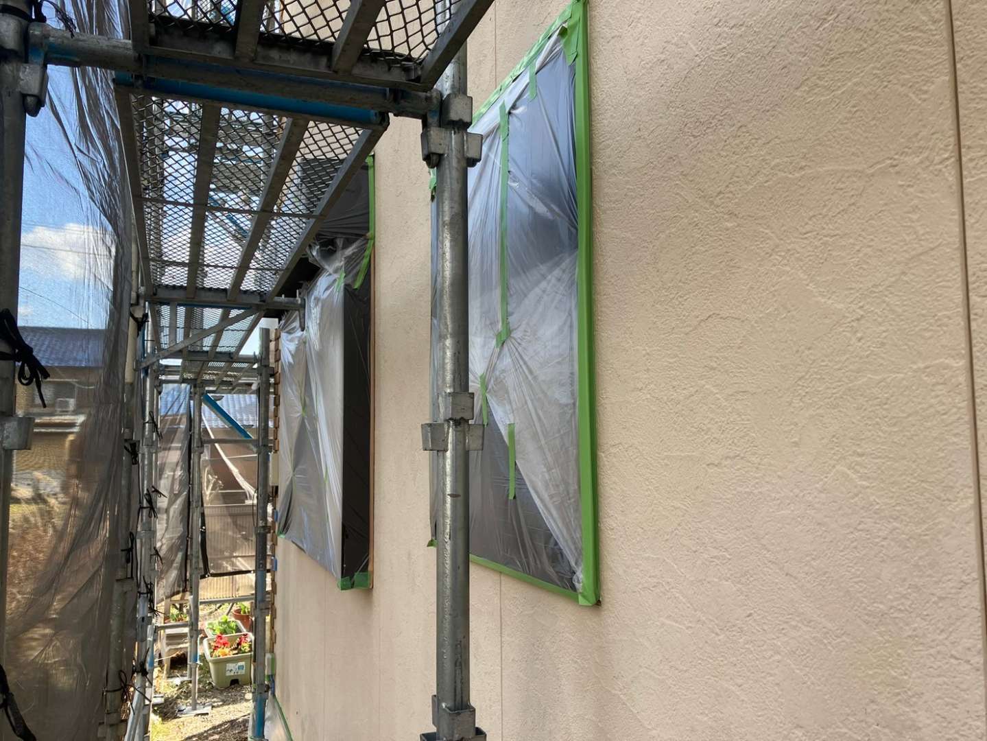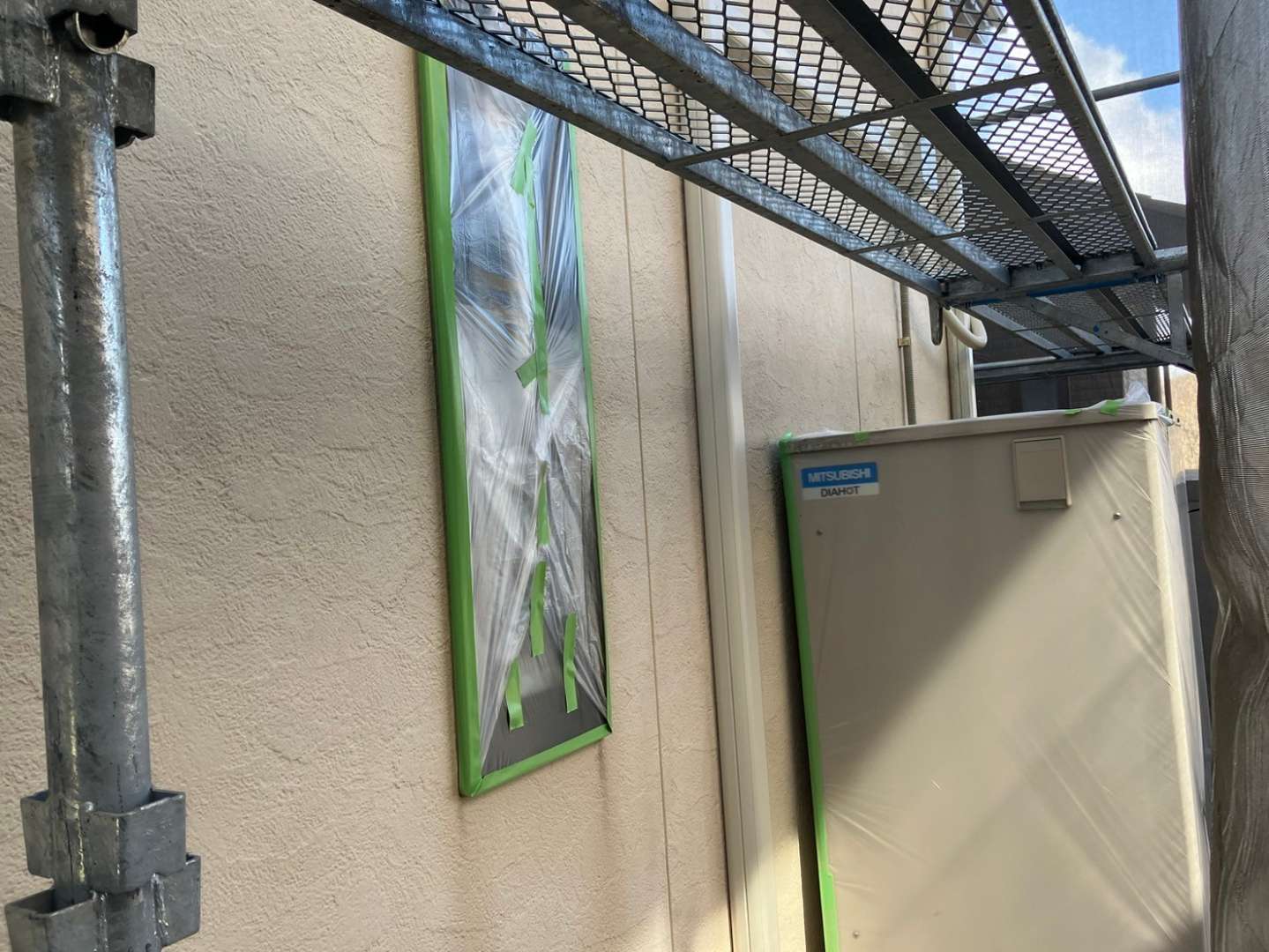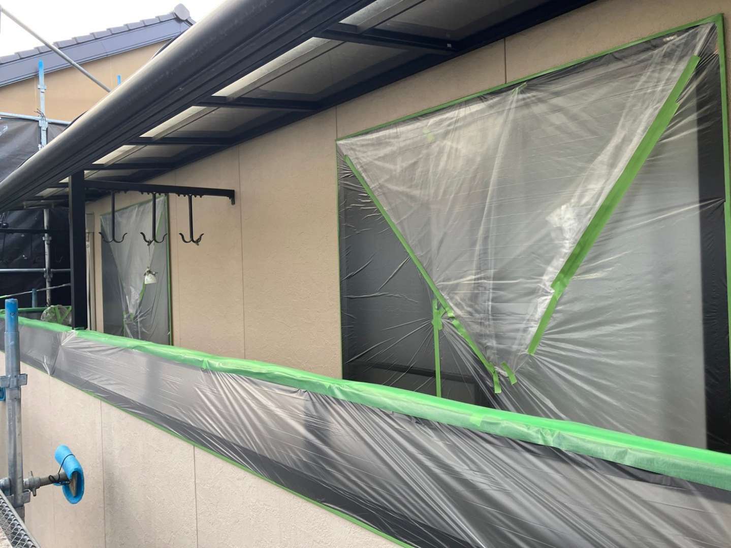H様邸の昨日の作業内容は、非塗装部分の養生作業でした。