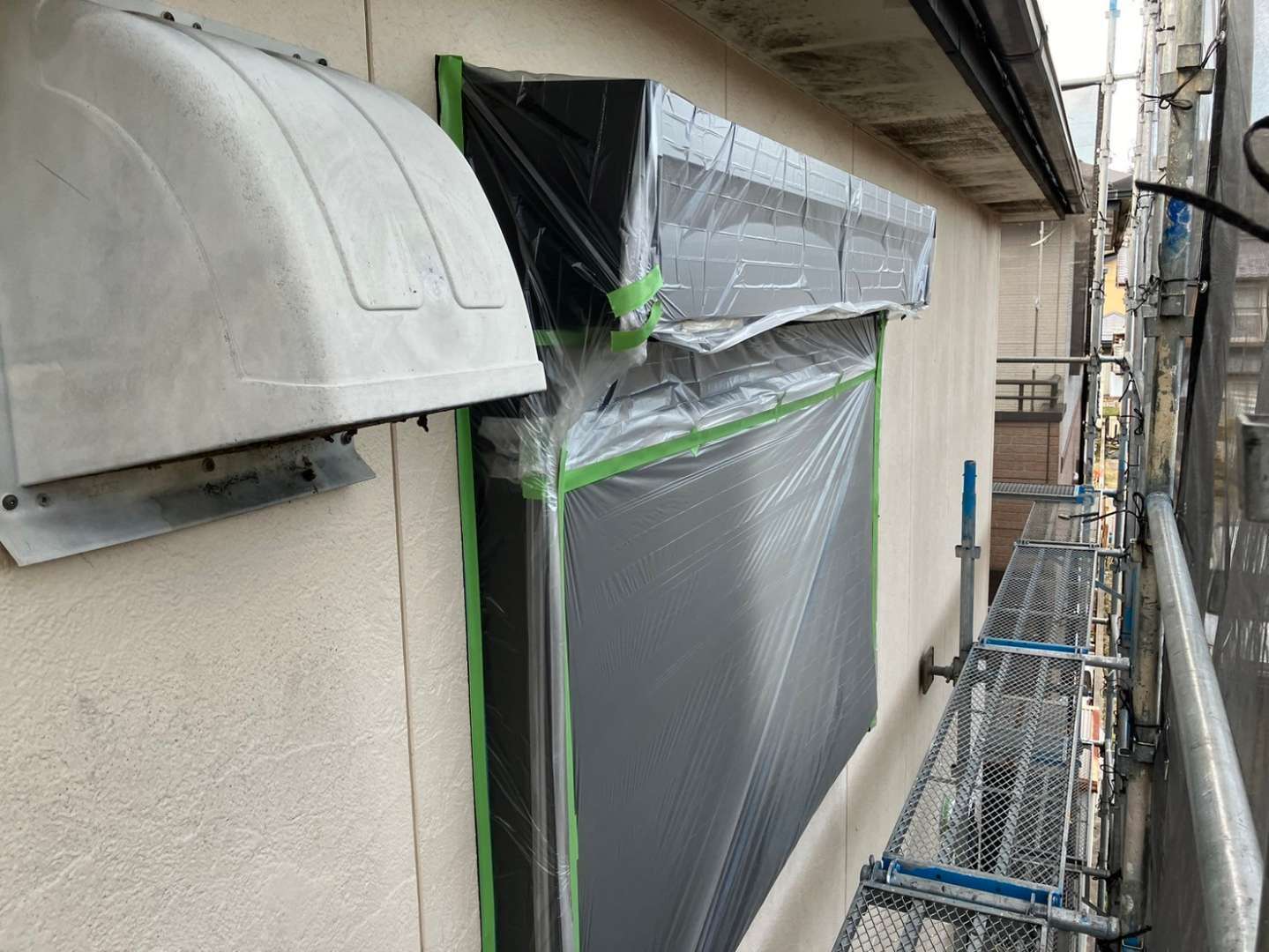 名古屋市名東区 K様邸 外壁塗り替え工事 洗浄作業が終わり、今日は養生作業です! 洗浄作...