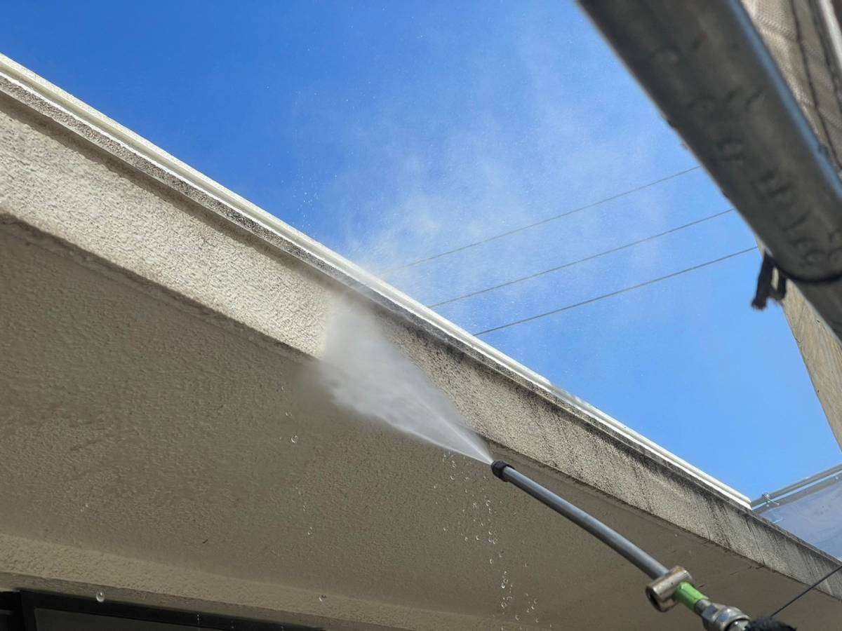 名古屋市名東区 K様邸 外壁塗り替え工事 洗浄作業が終わり、今日は養生作業です! 洗浄作...