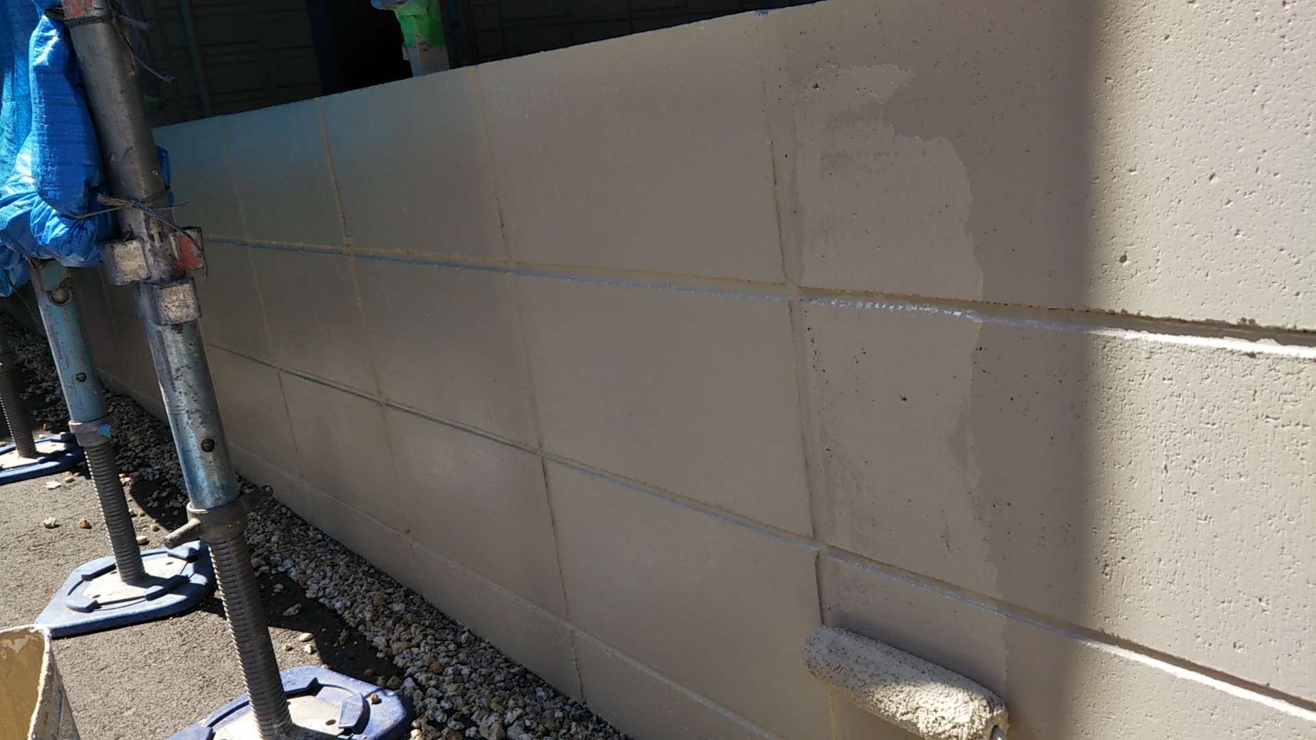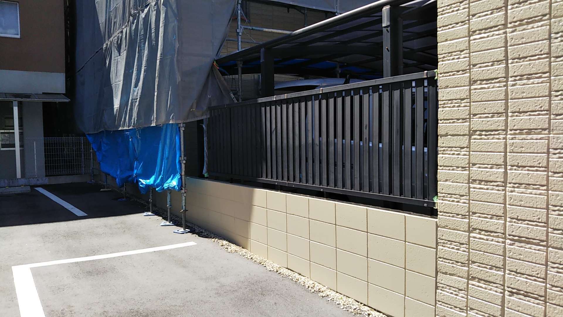 I様邸は、昨日までの作業で門扉・塀塗装が完了しています。
