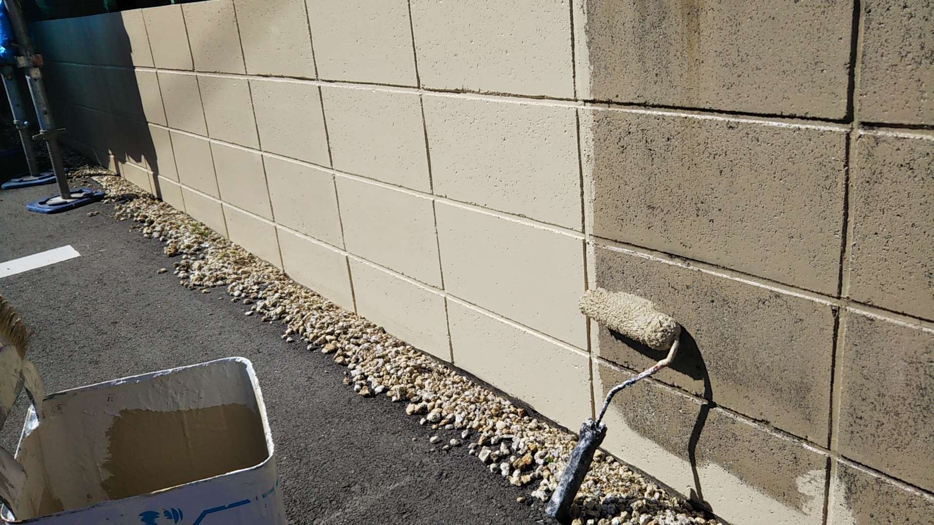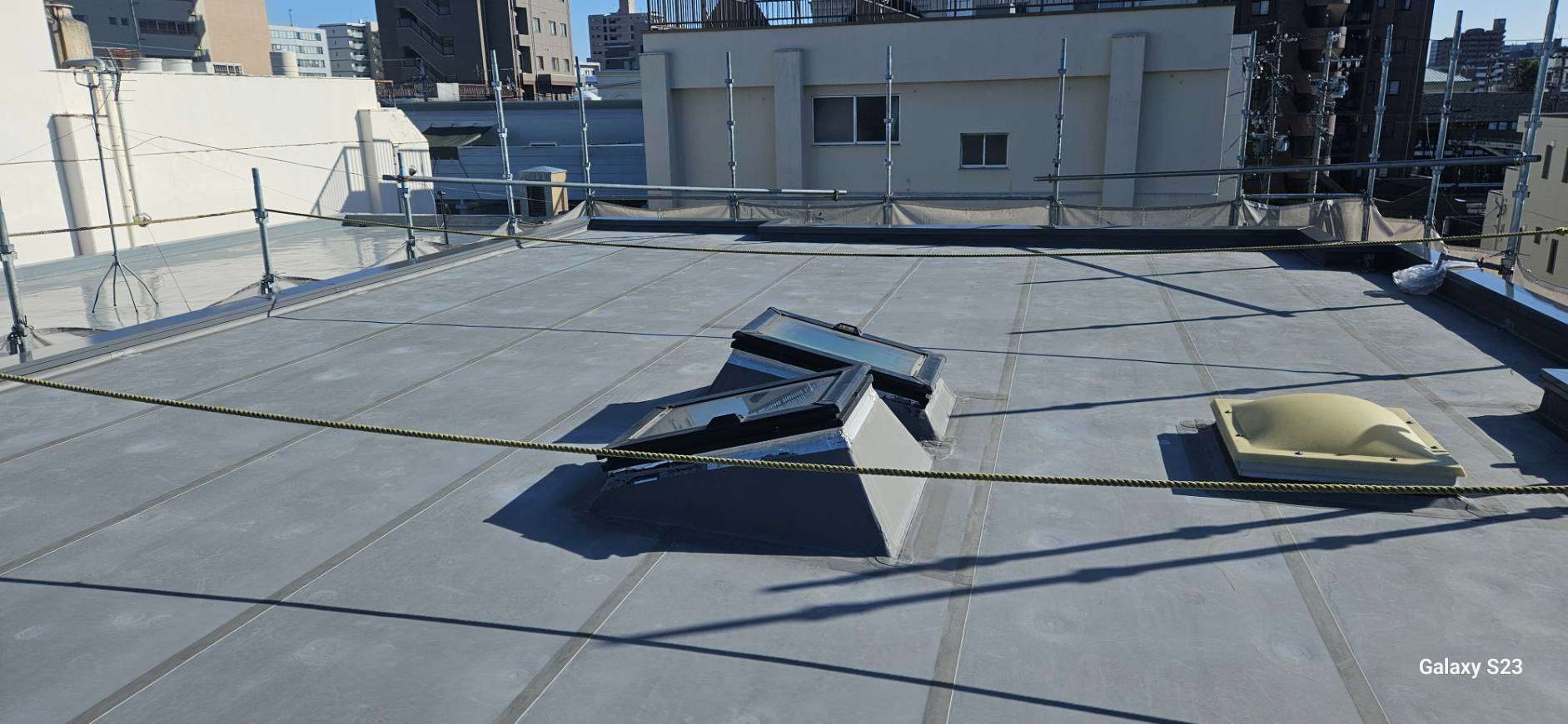 屋上の笠木部コーキング作業・屋上のトップコート1回目塗装完了しています!