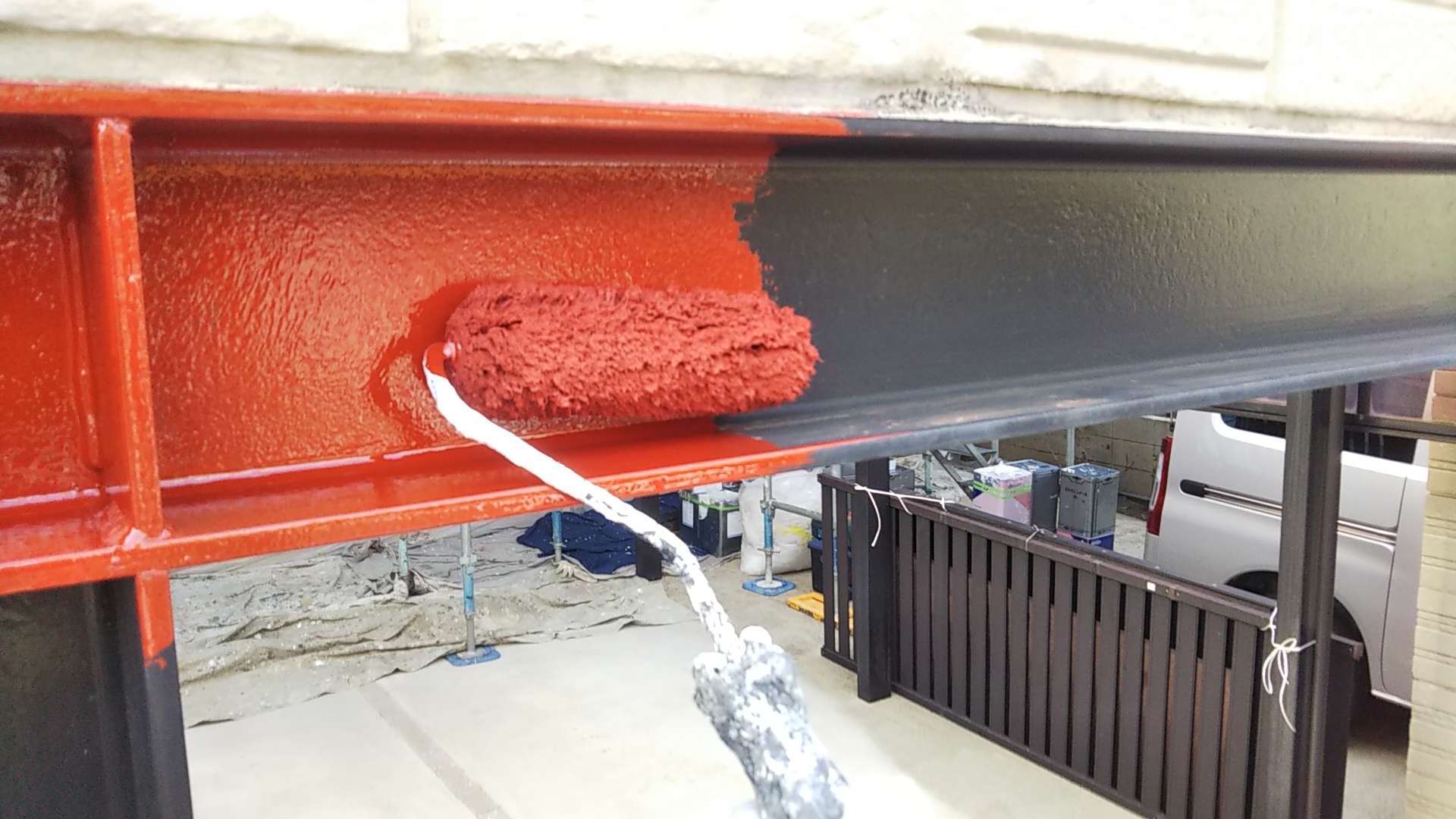 付帯部塗装の下塗り(錆止め)・上塗り1回目塗装・