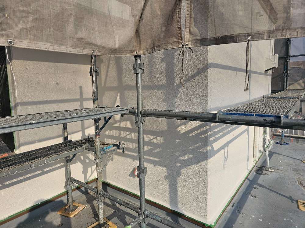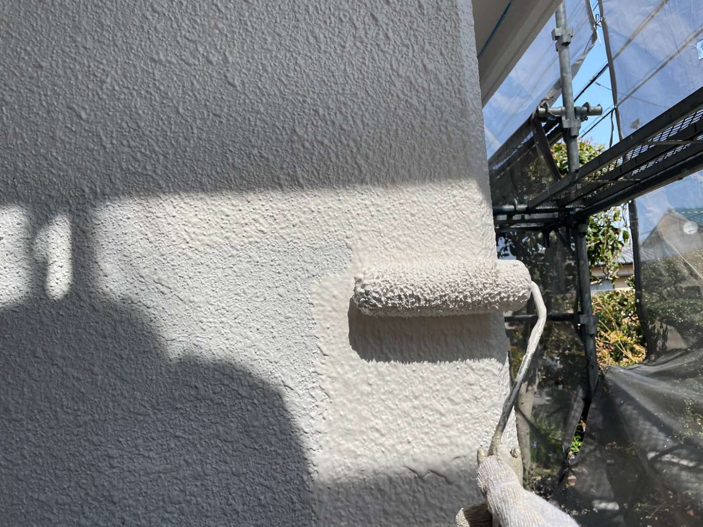 名東区I様邸の昨日の作業内容は、外壁の中塗り塗装作業でした。