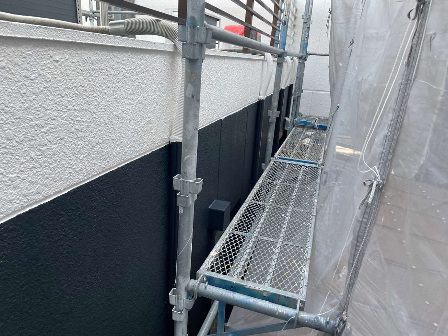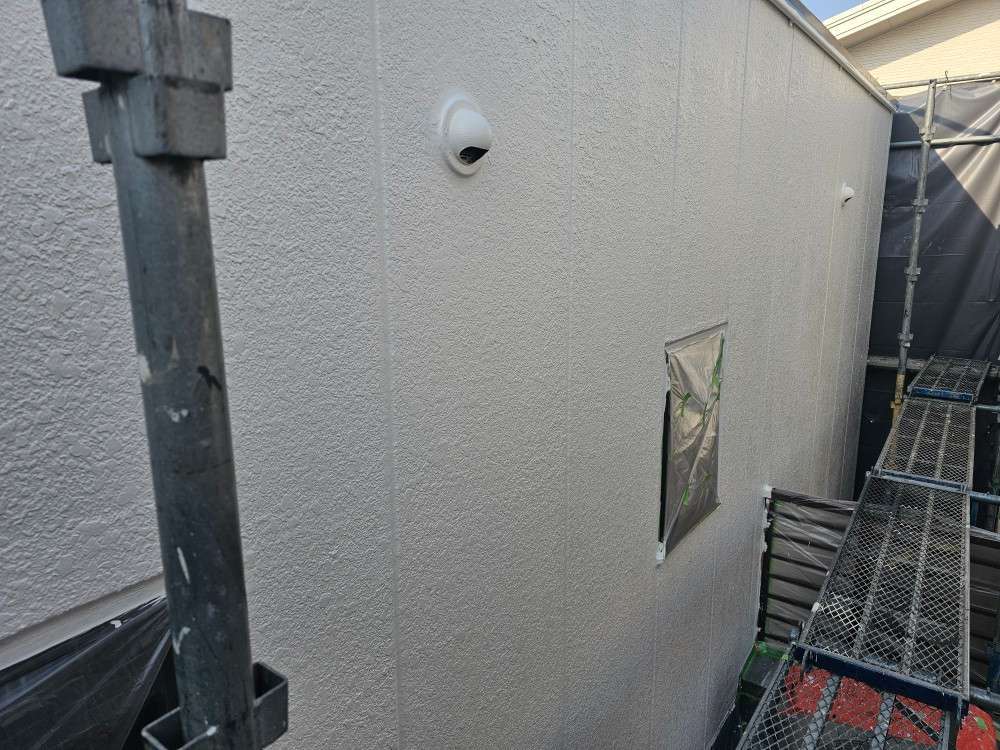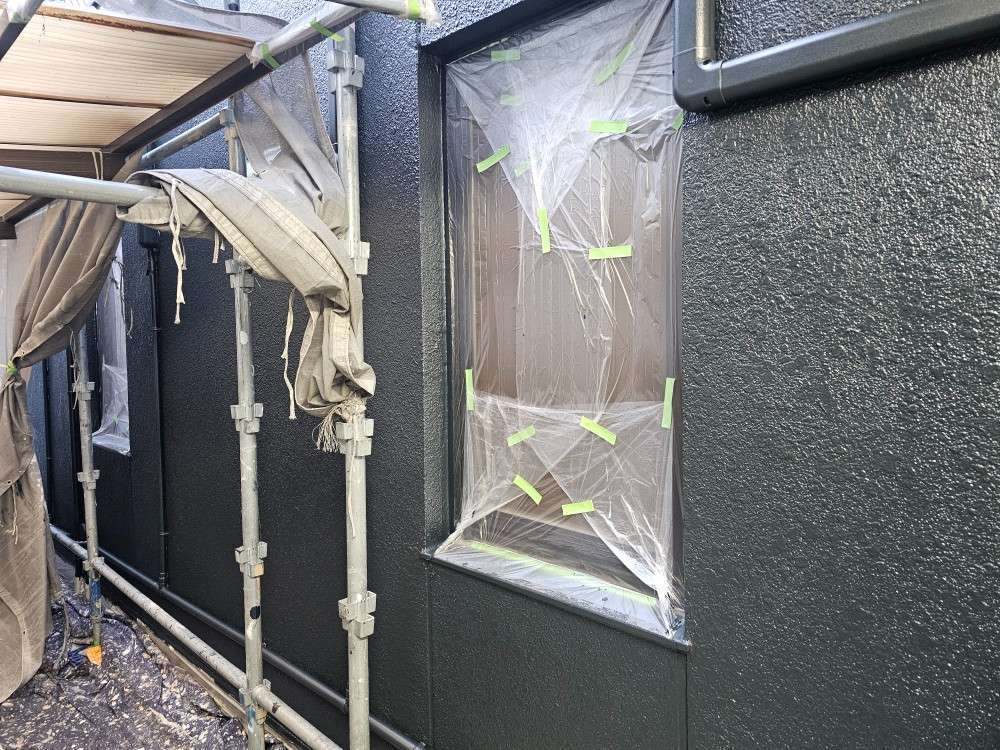N歯科様邸の今日の作業は、外壁の上塗り塗装作業予定です。