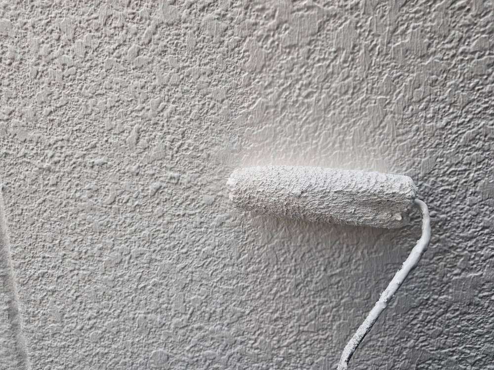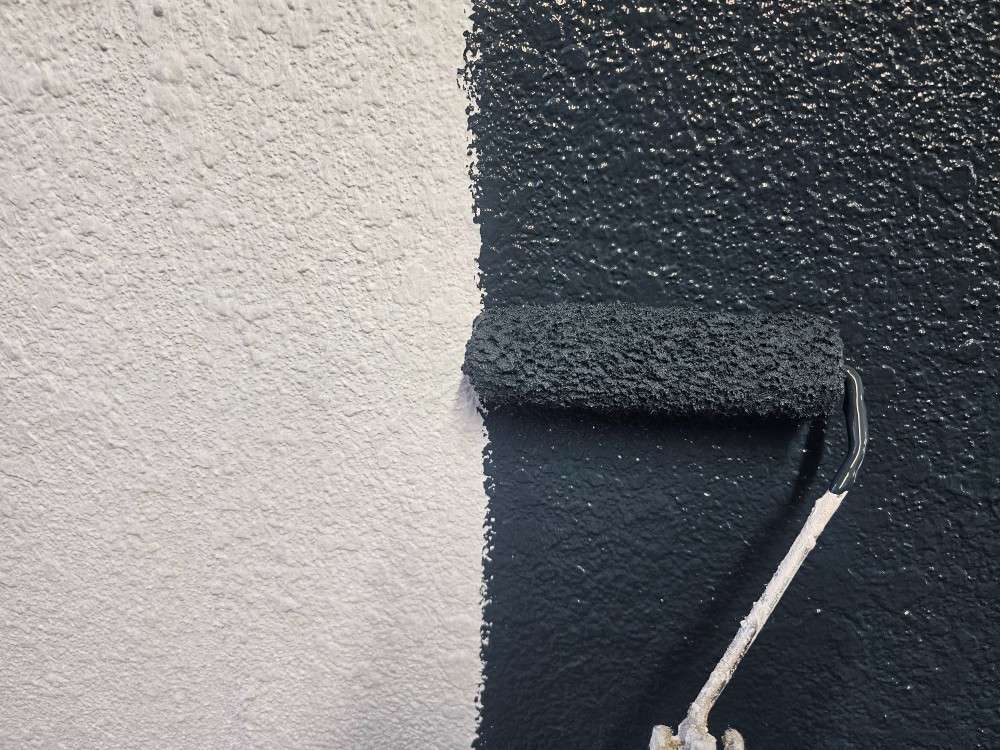 外壁の中塗り塗装作業