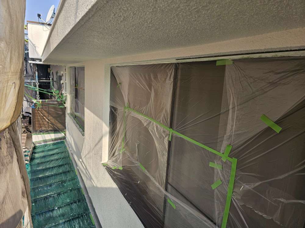 名東区N歯科様邸の昨日の作業内容は、外壁の中塗り塗装作業でした。