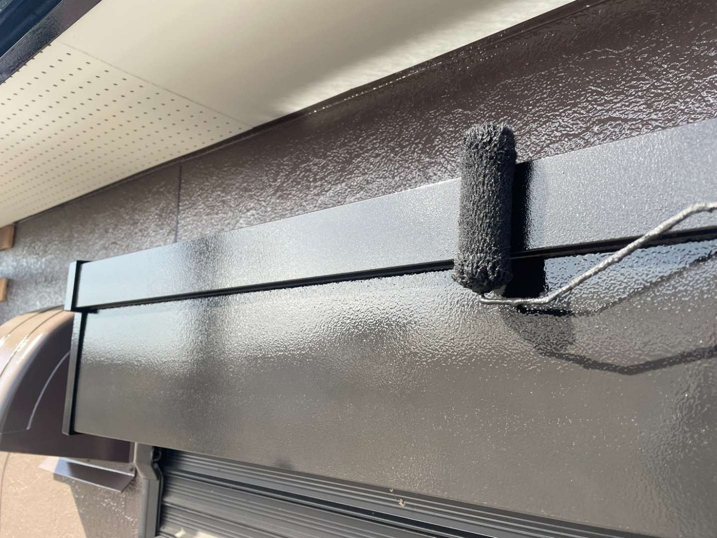 H様邸の昨日の作業は、付帯部2回目塗装・コーキング作業でした。