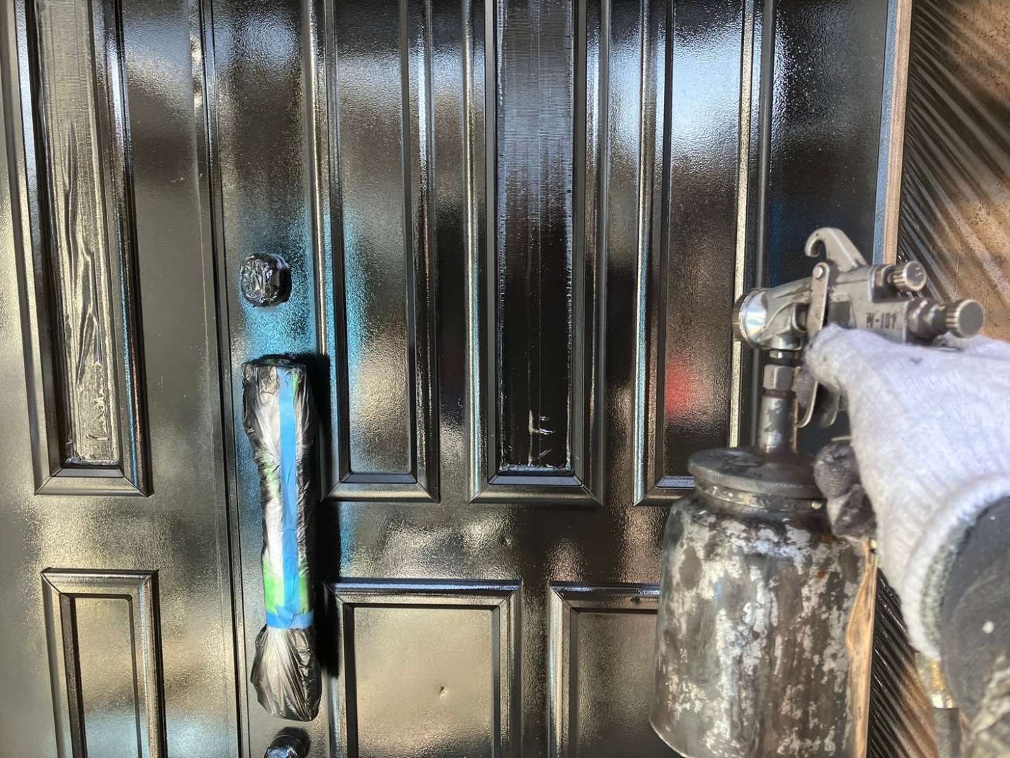 玄関ドア上塗り2回目塗装