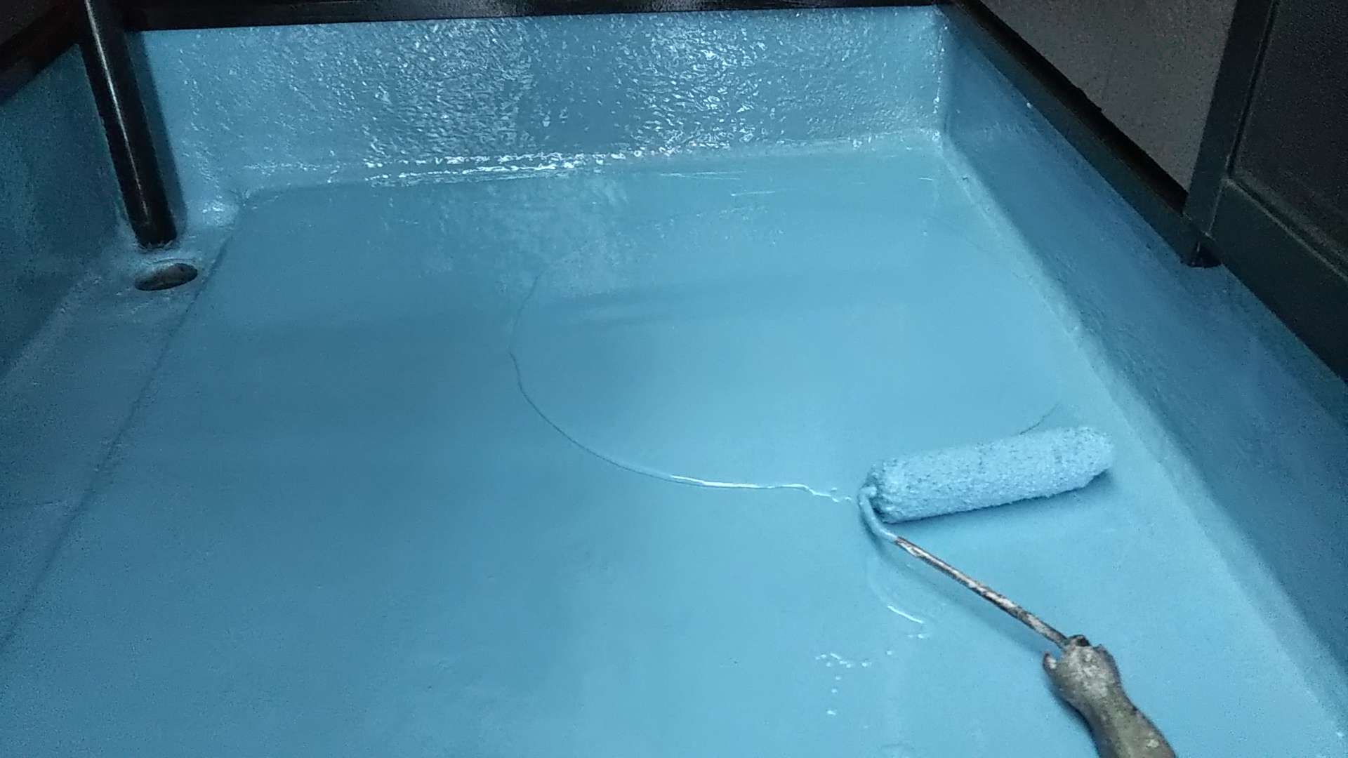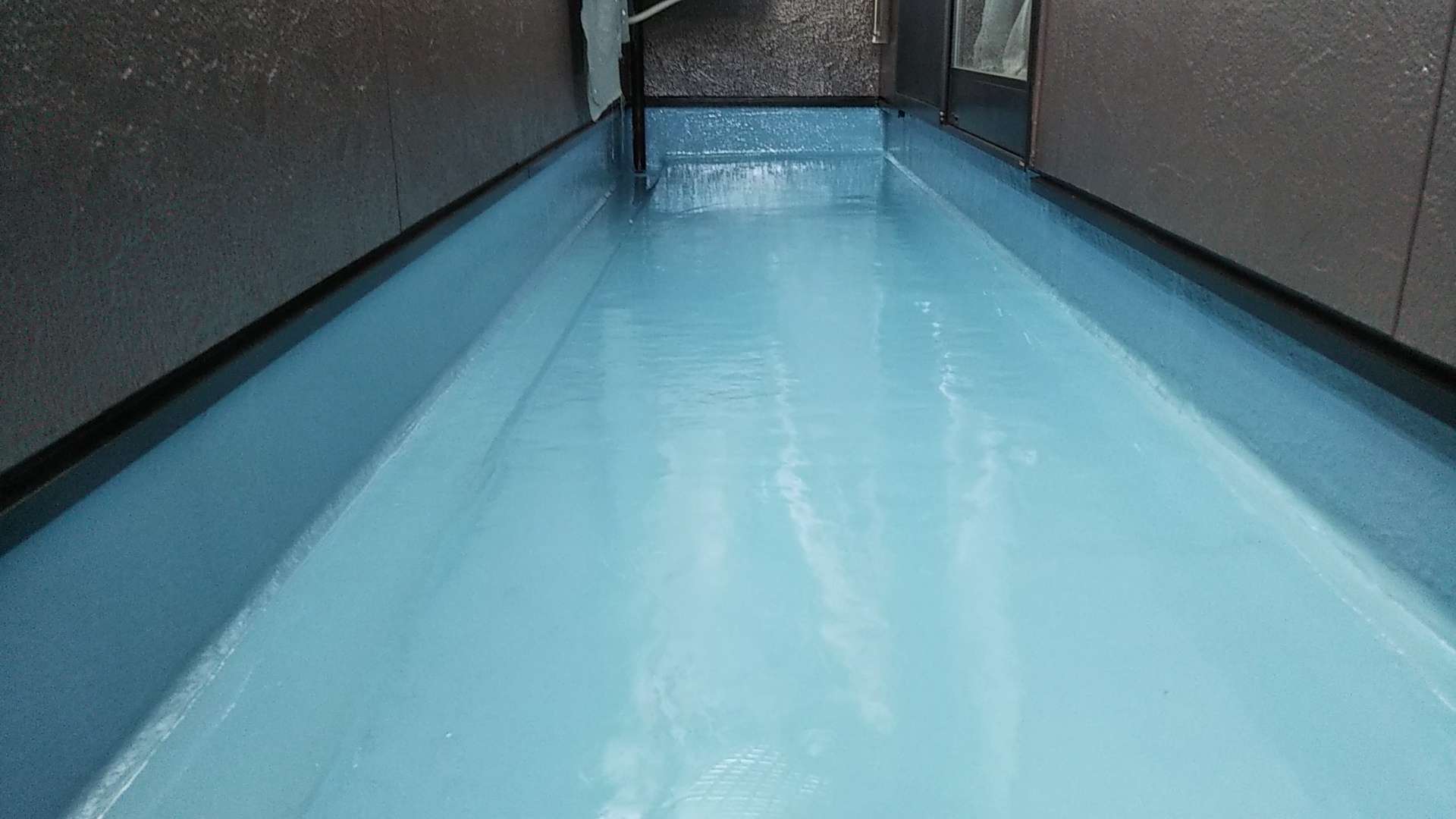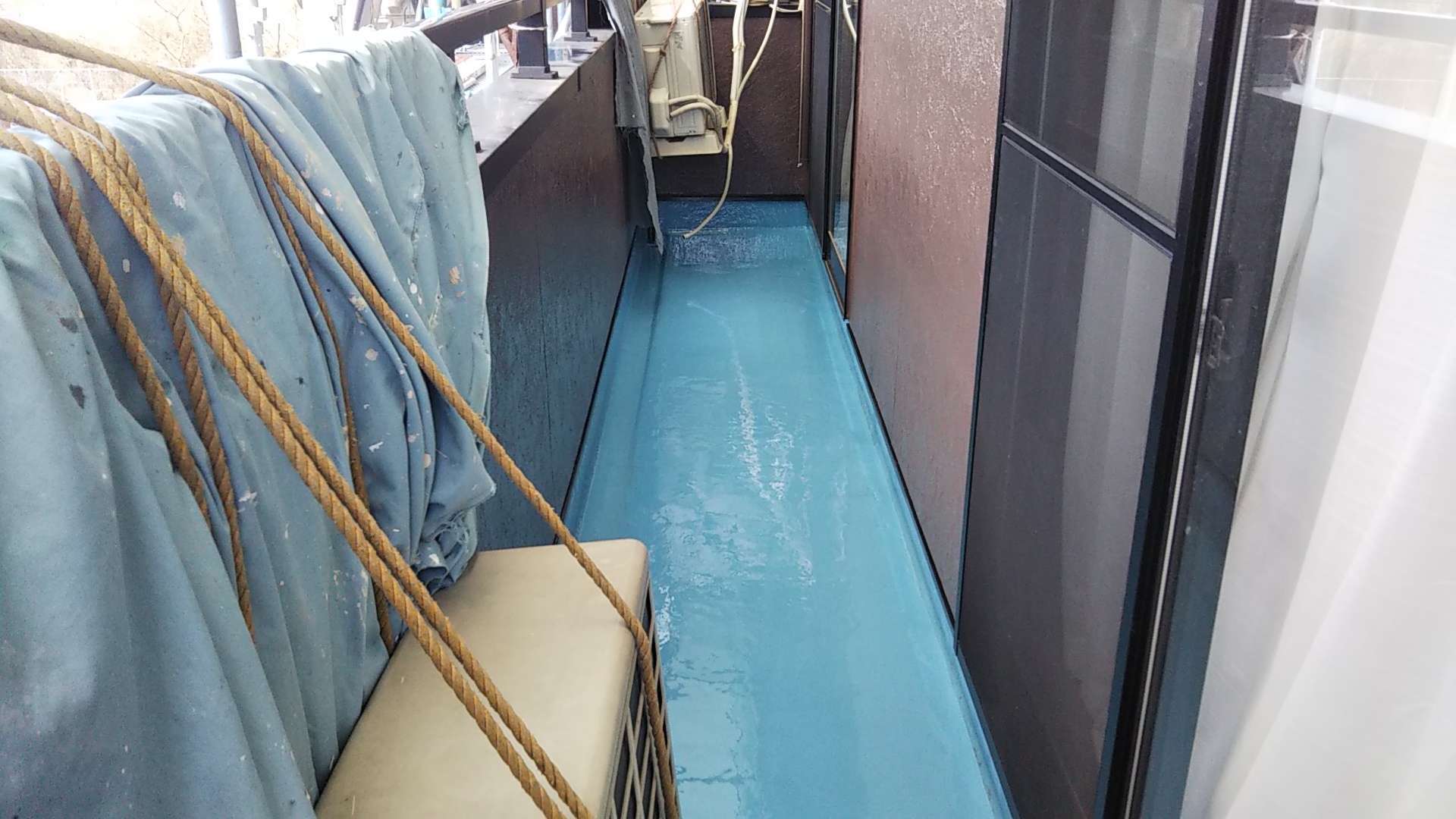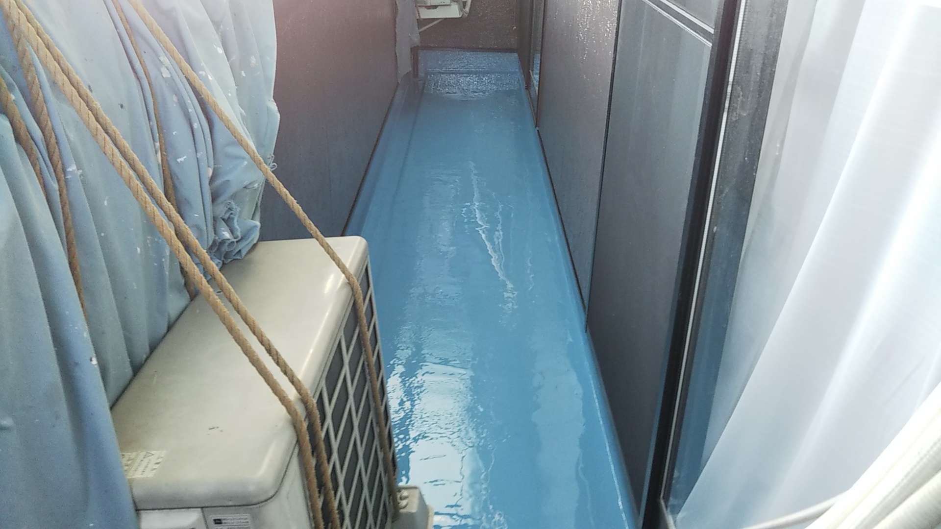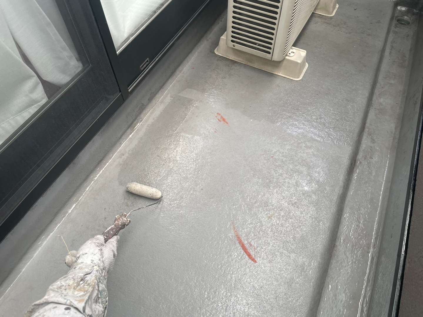 今日の作業は、ベランダ防水のトップコート塗装作業予定です!