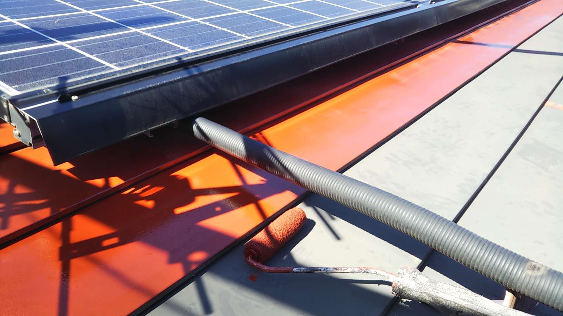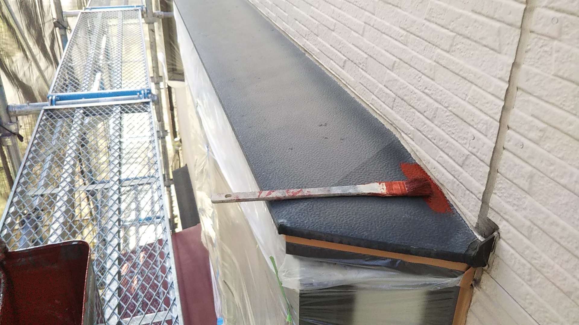 岐阜市、S様邸の昨日の作業は、養生作業・屋根、付帯部の錆止め塗装作業を行っていました。