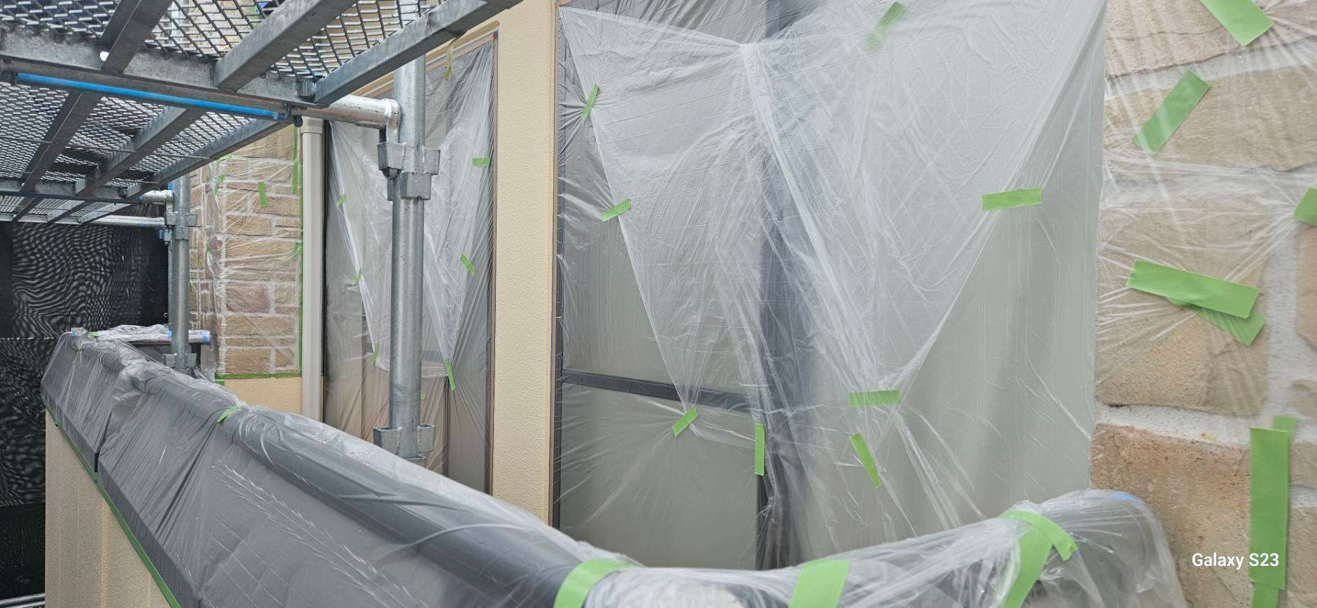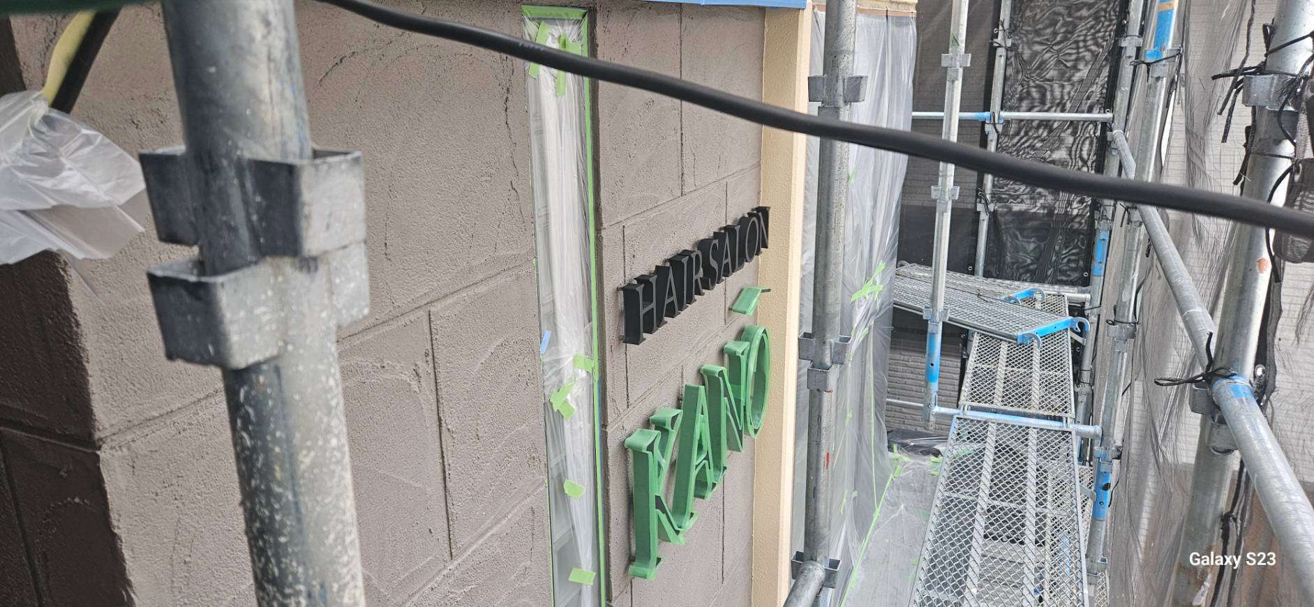 K理容店様の今日の作業は、外壁の下塗り作業予定です。