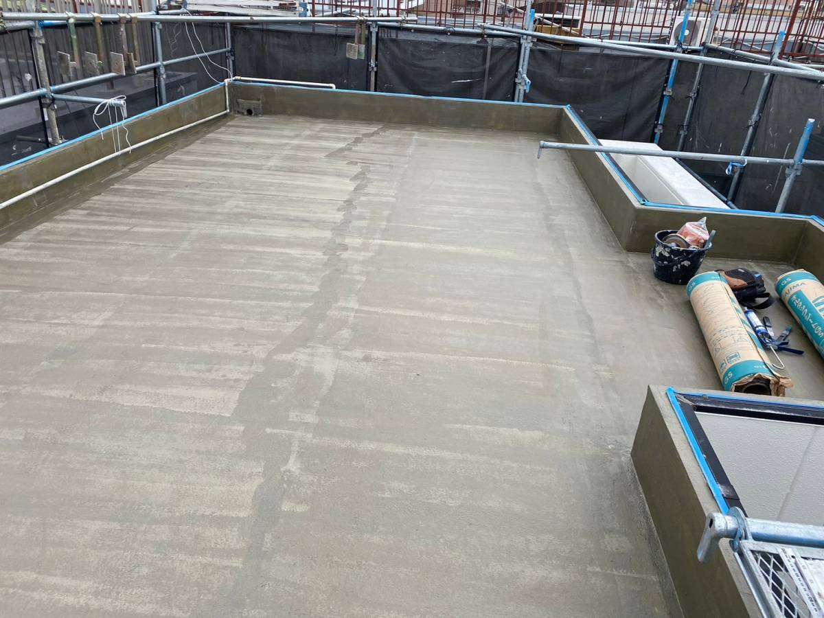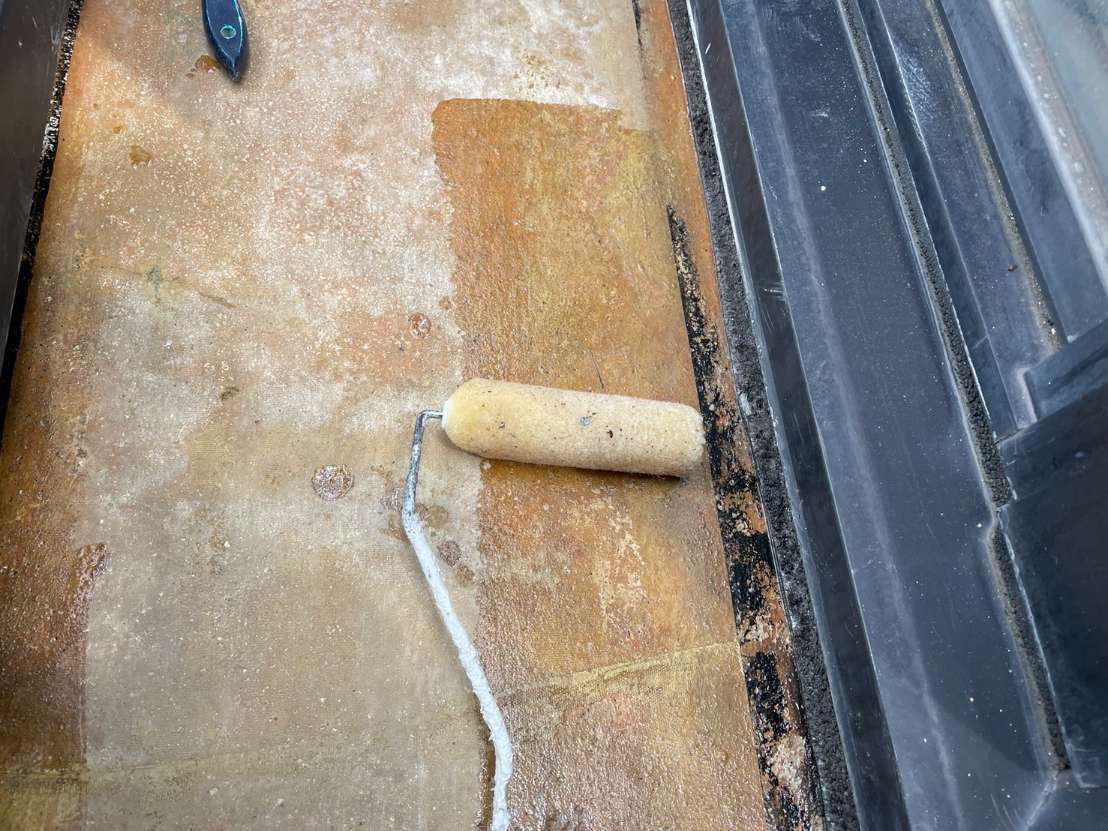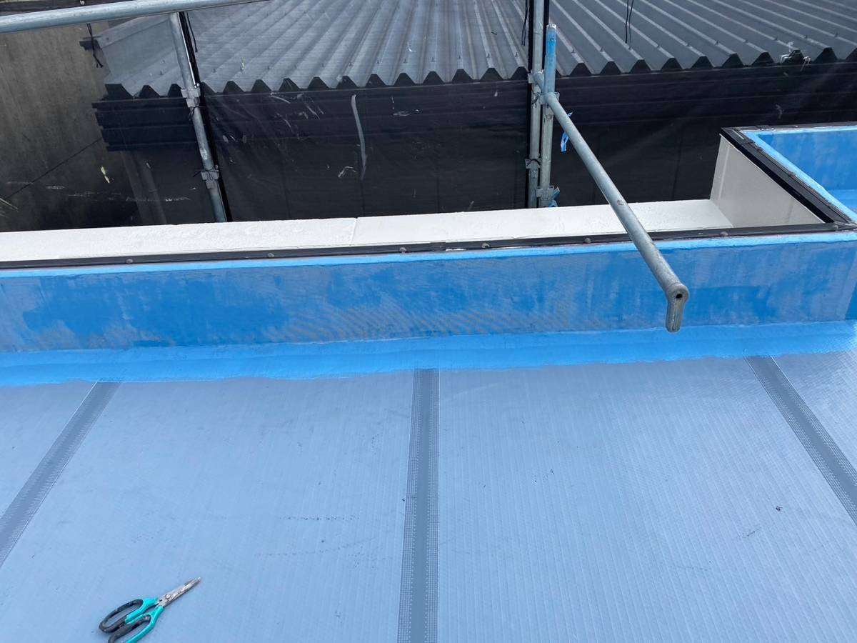 屋上防水作業・玄関上防水作業・樋補修作業を行いました。