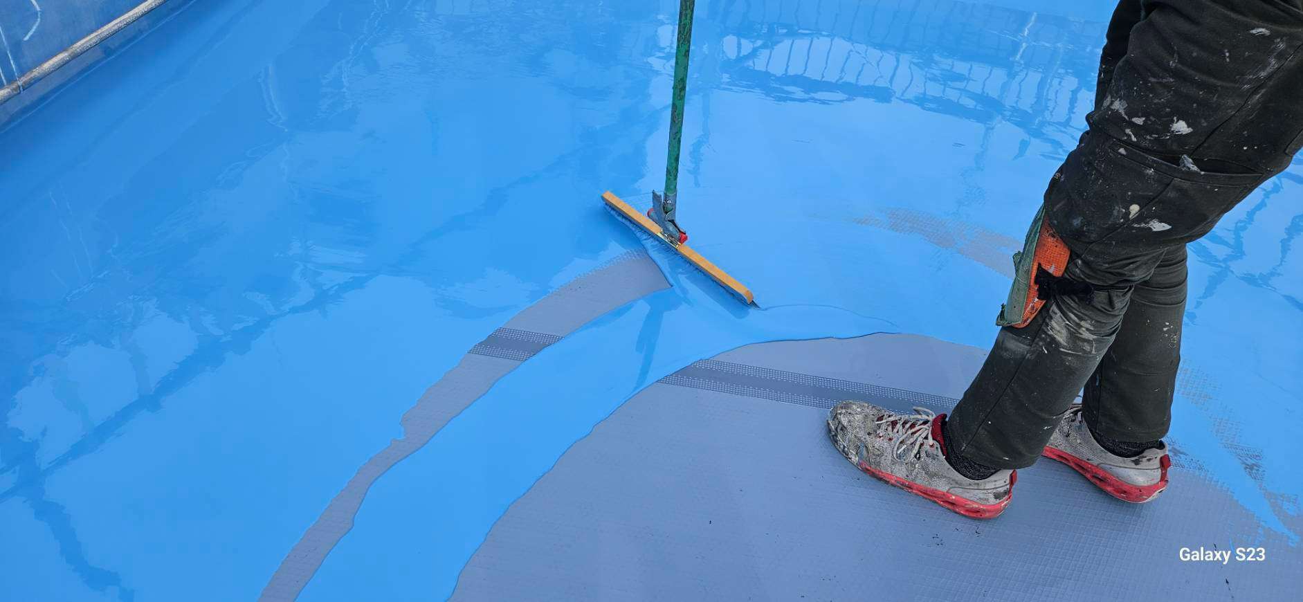 今日の作業は、ウレタン樹脂二層目塗装作業予定です。