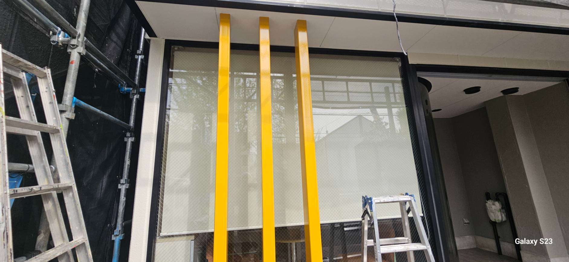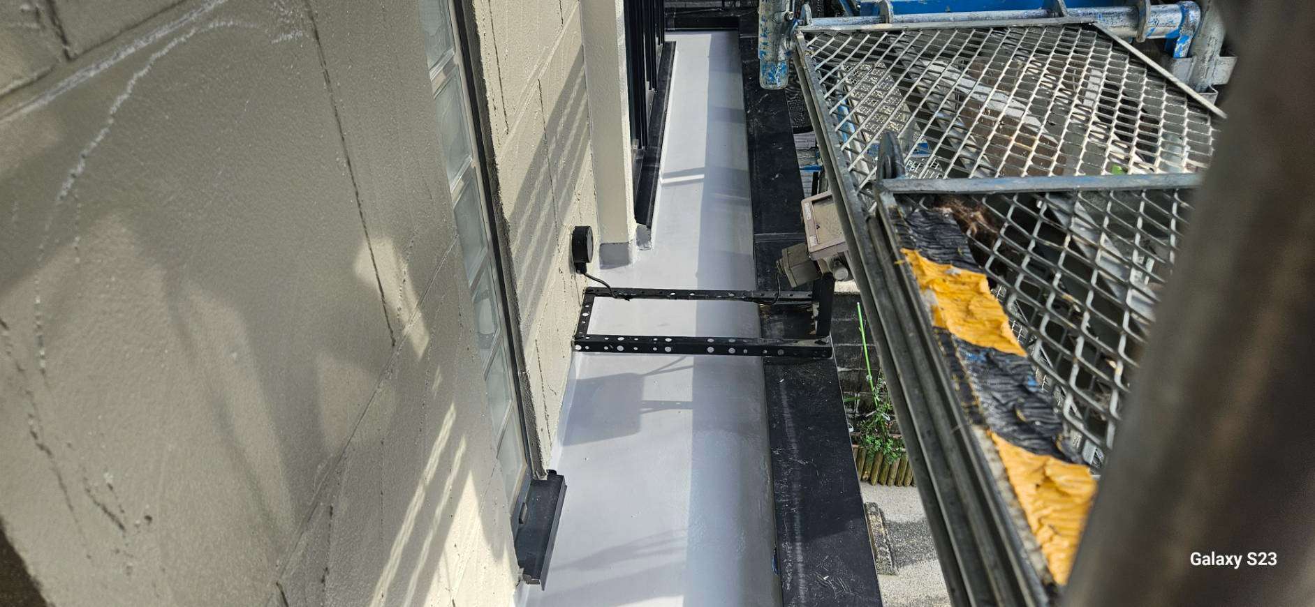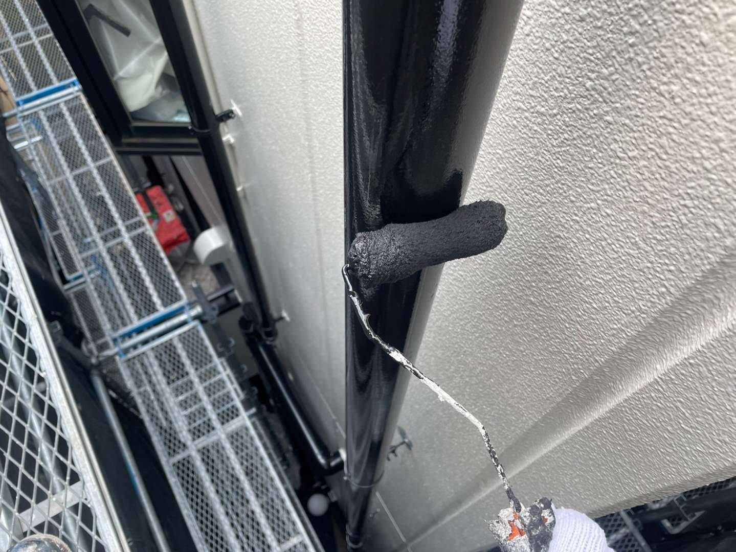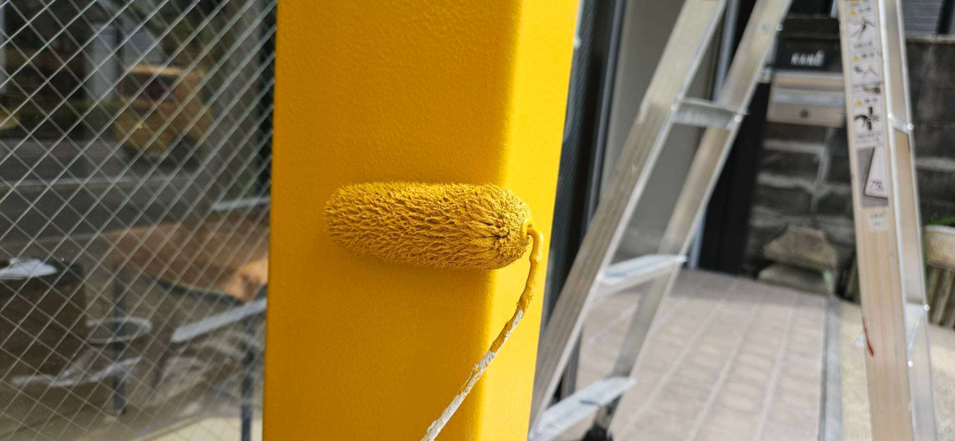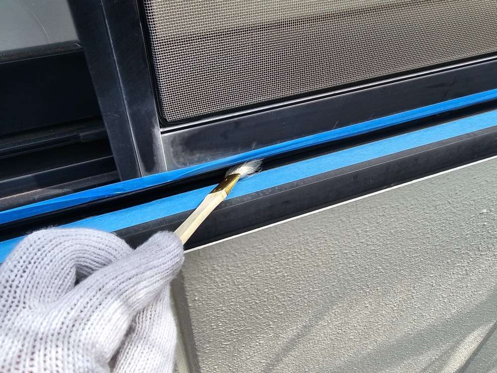 千種区N理容店様の昨日の作業は、屋上ウレタン通気工法防水工事のトップコート塗装、玄関上ウレタン密着工法防水工事のトップコート塗装、屋根上塗り、付帯部の上塗り2回目塗装、サッシ下の面台コーキング、タイル部の撥水剤塗装作業を行いました。