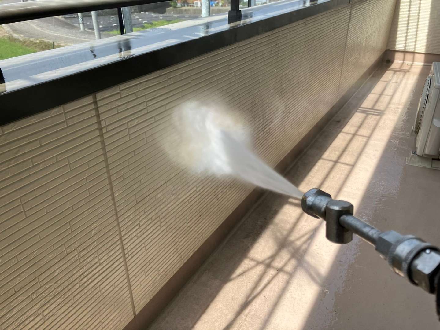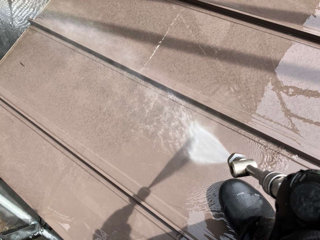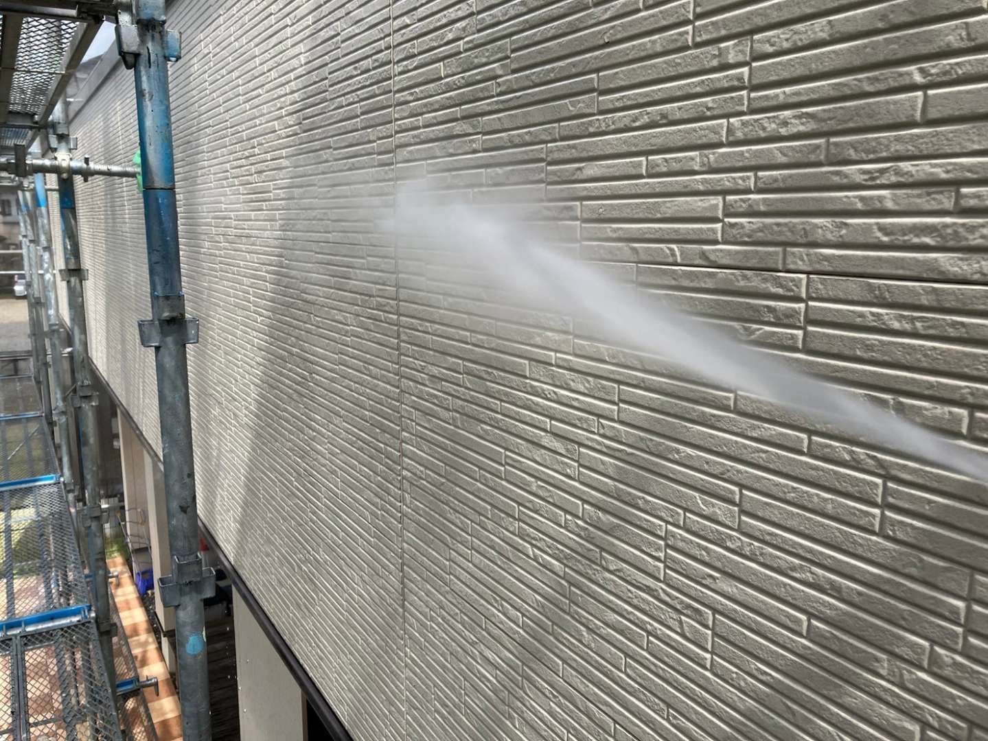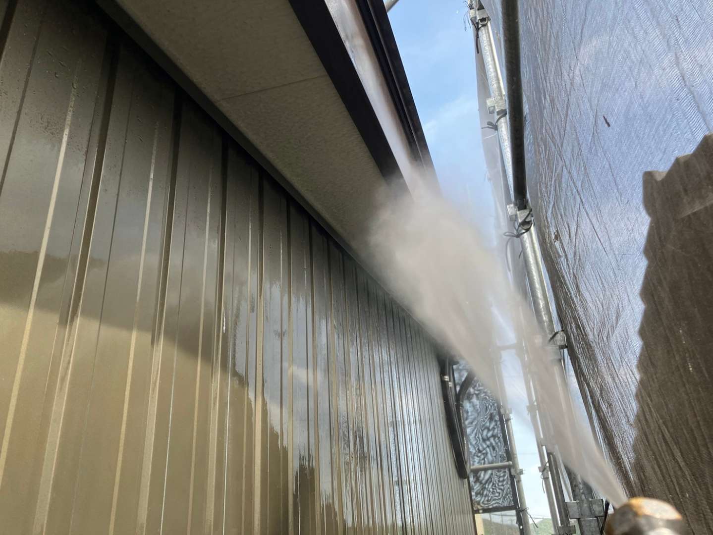 関市H様邸の昨日の作業は、高圧洗浄作業を行っています。