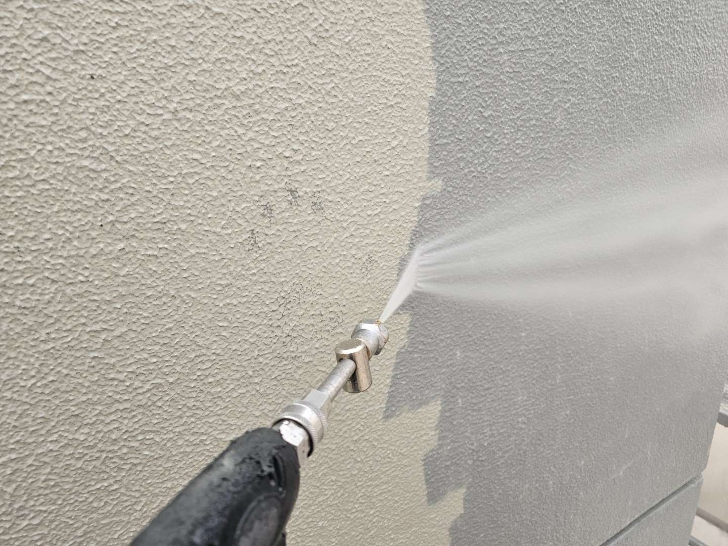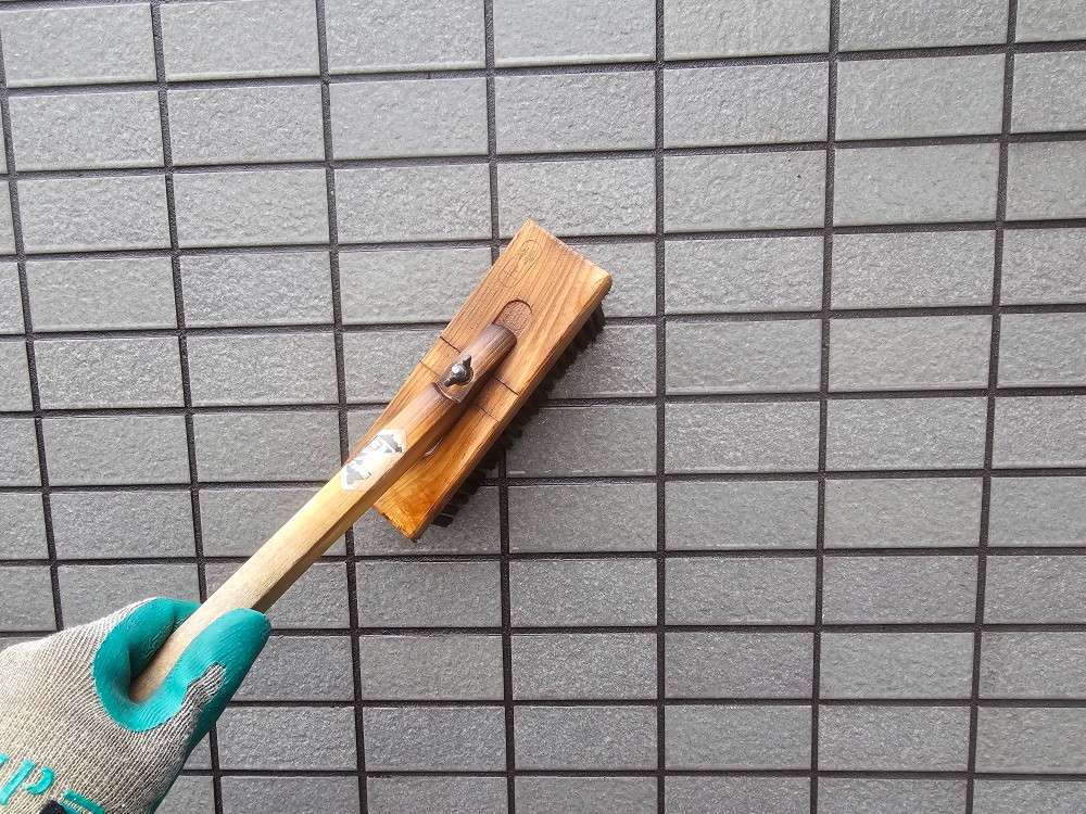 今日の作業は、外壁の補修・エフロ除去作業予定です。