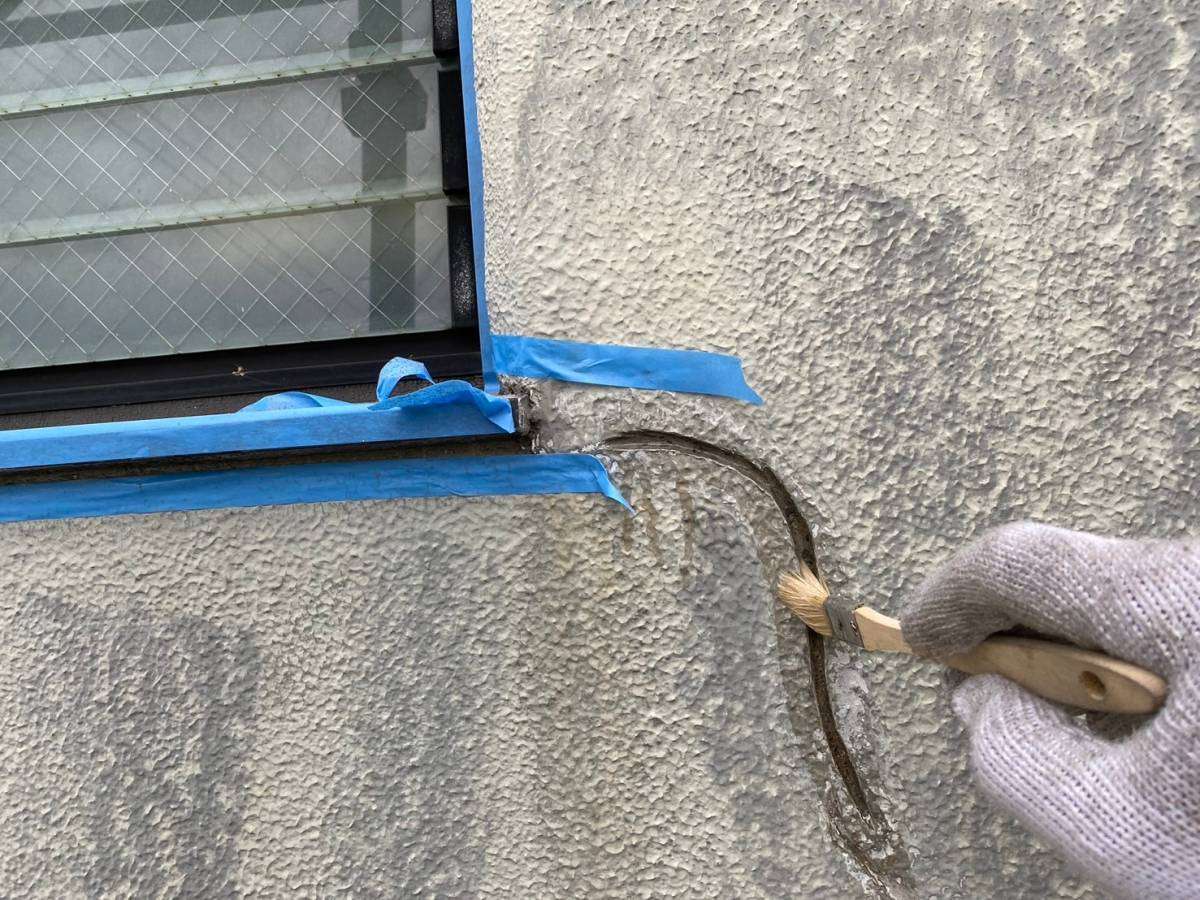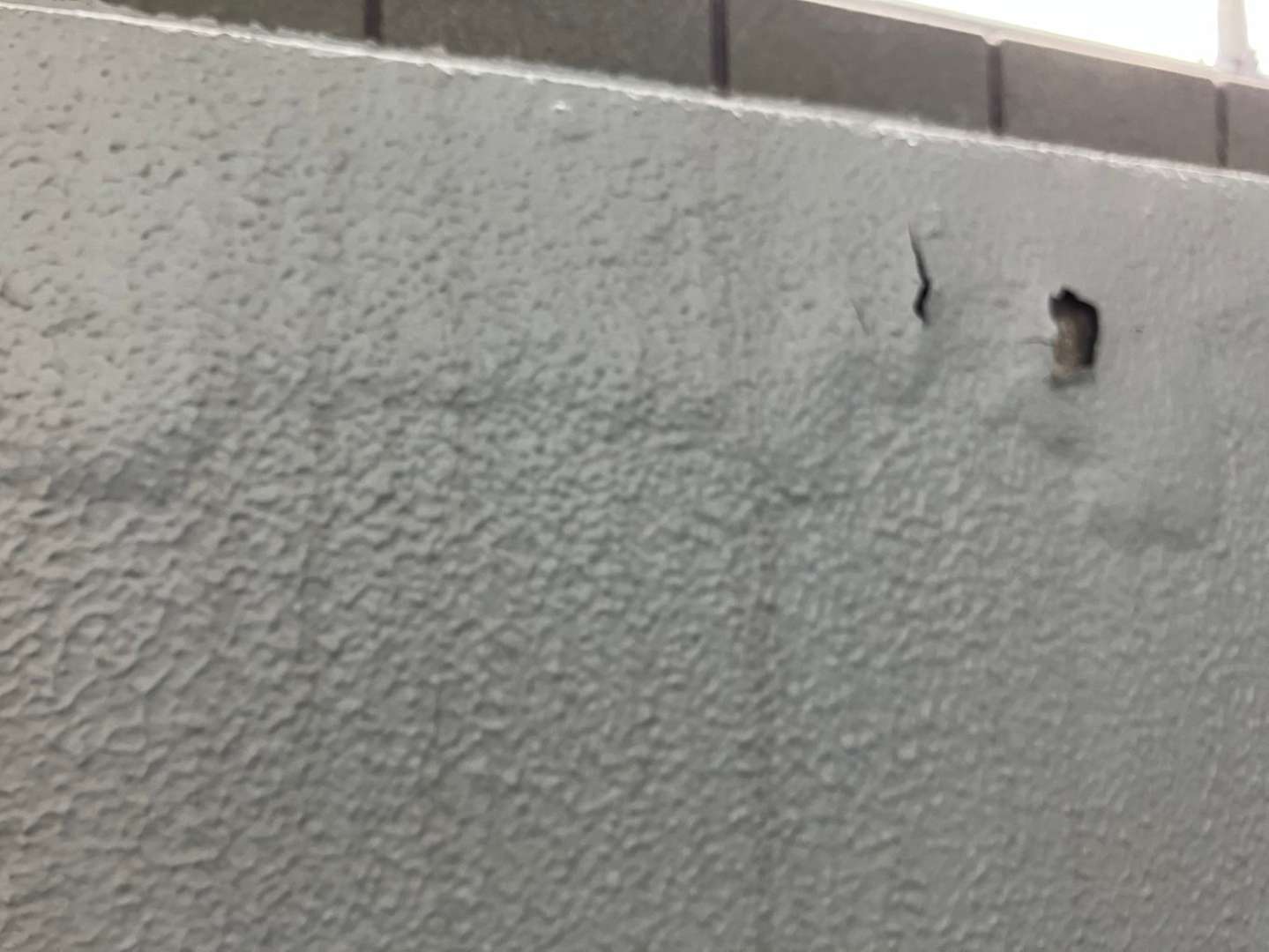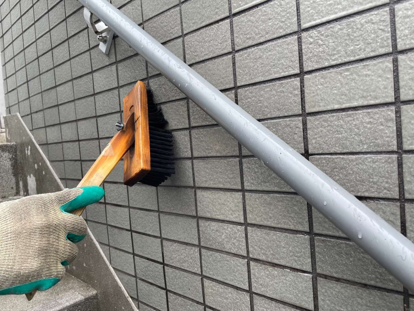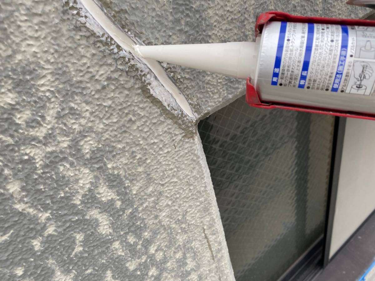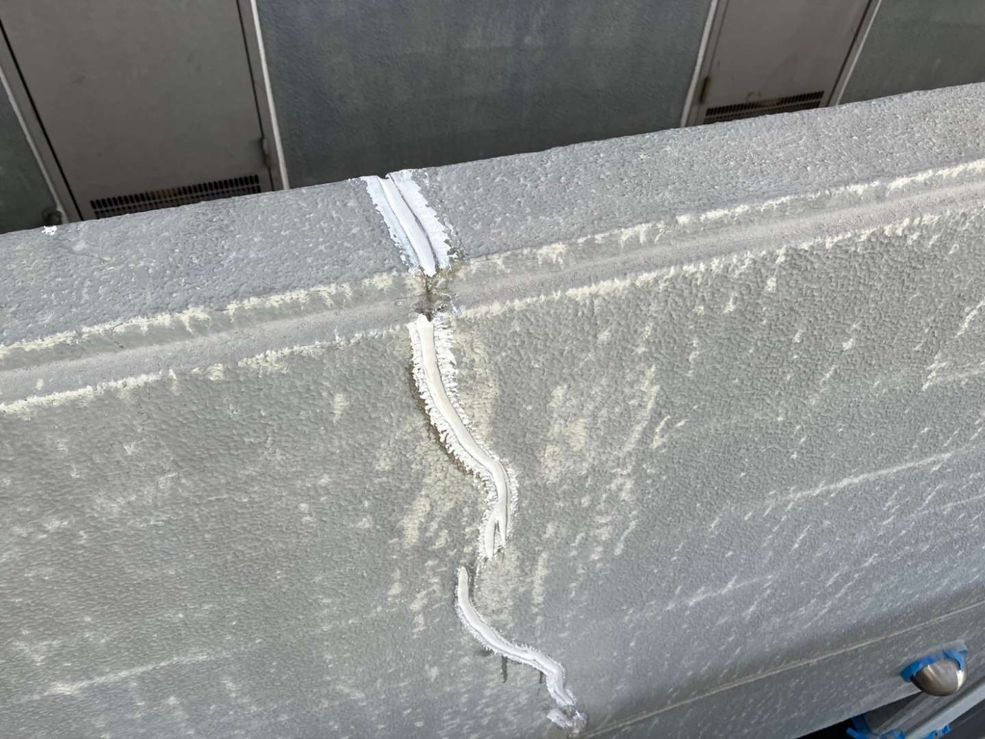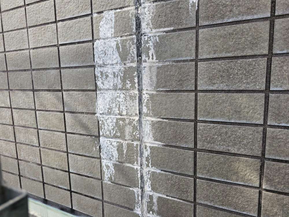 タイル部のエフロ除去・外壁の膨れ、劣化部補修・亀裂部補修・コーキング(シーリング)作業を行いました。