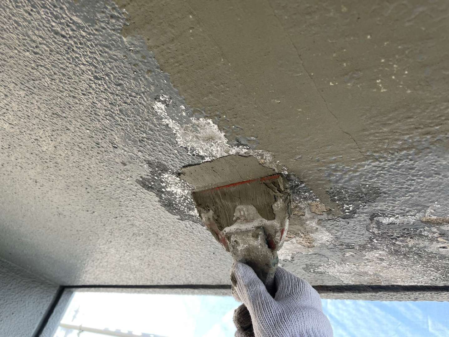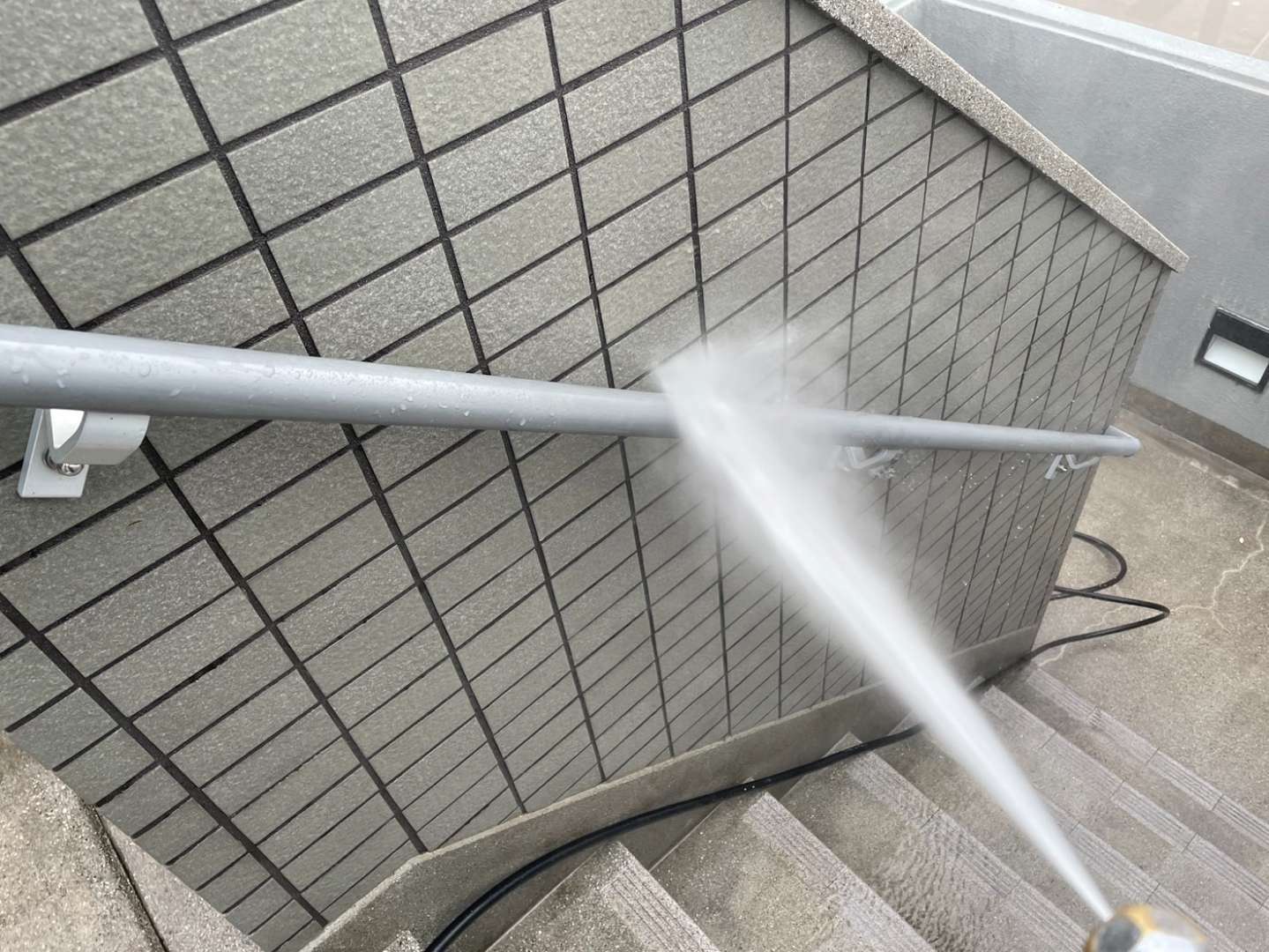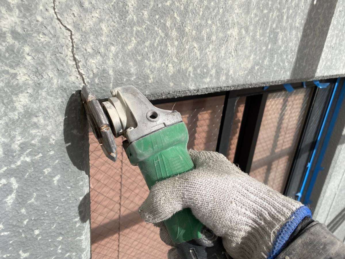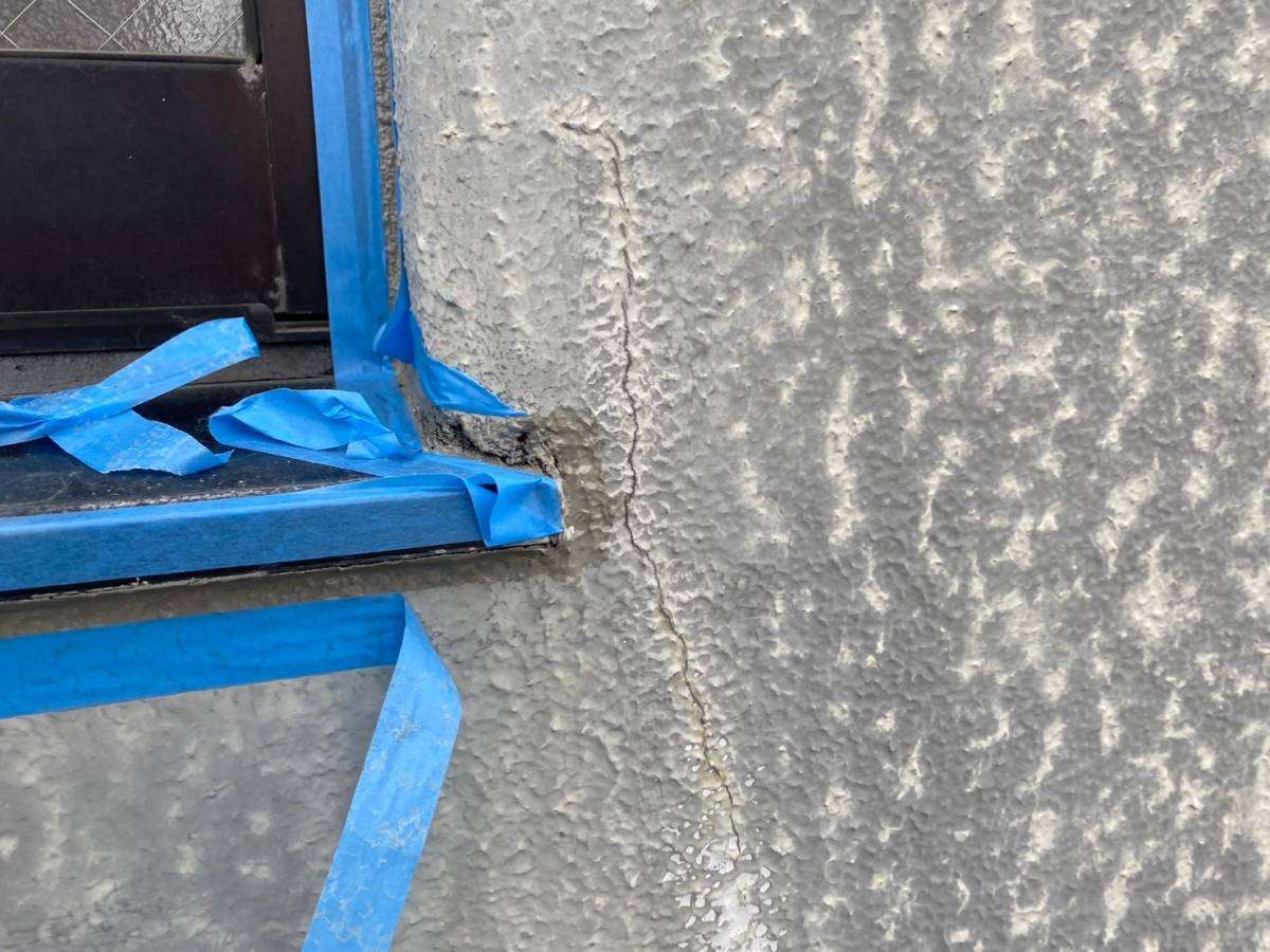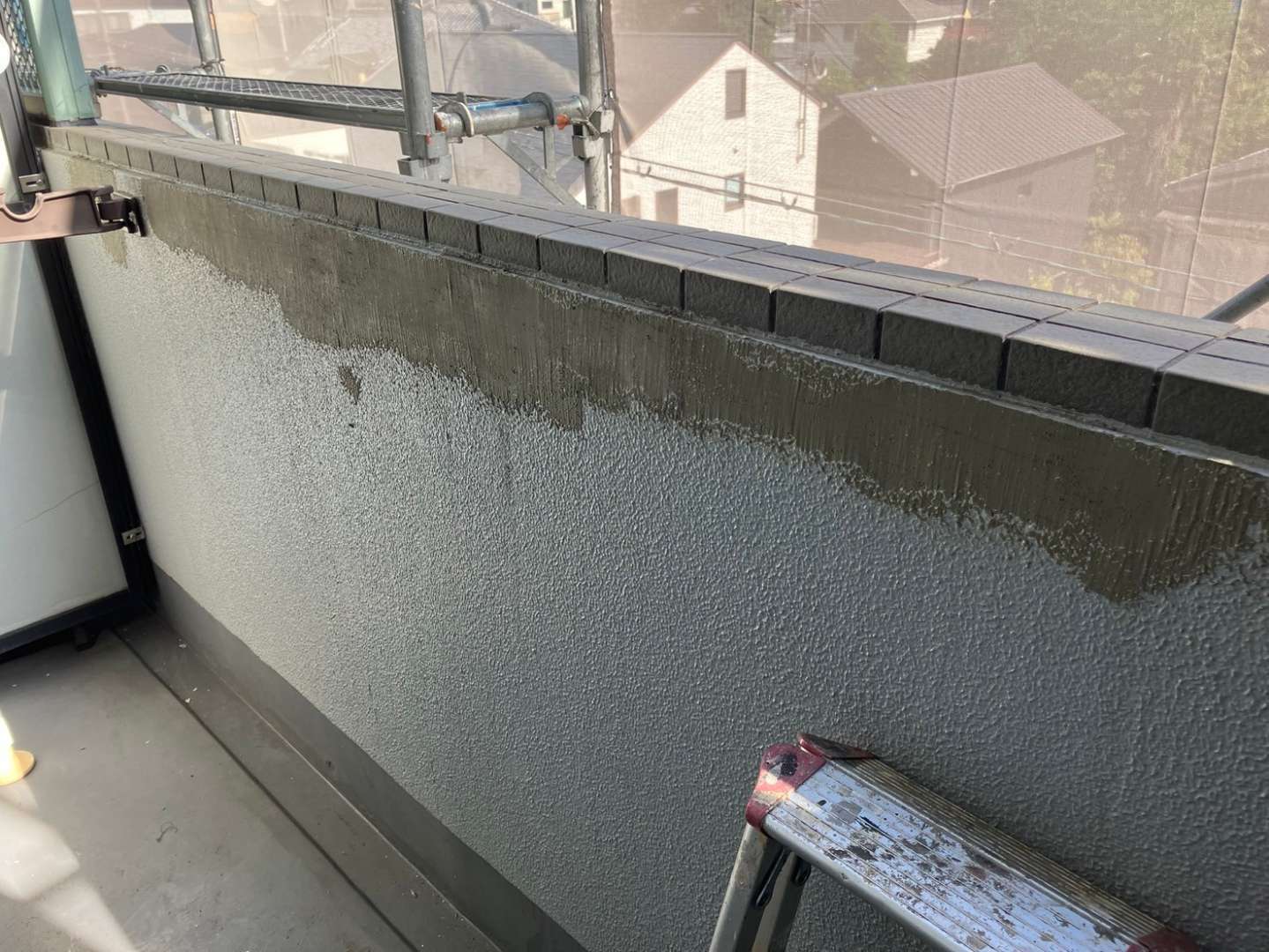 タイル部のエフロ除去・外壁の膨れ、劣化部補修・亀裂部補修・コーキング(シーリング)作業を行いました。