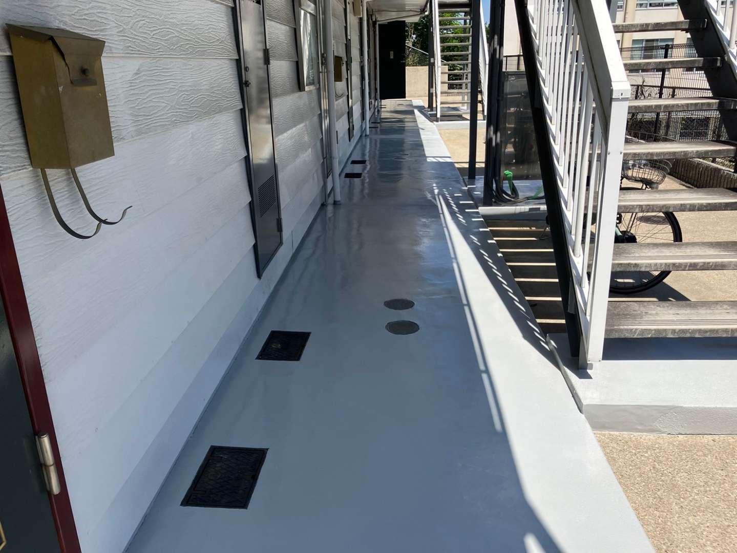 通路のトップコート2回目塗装作業を行いました。