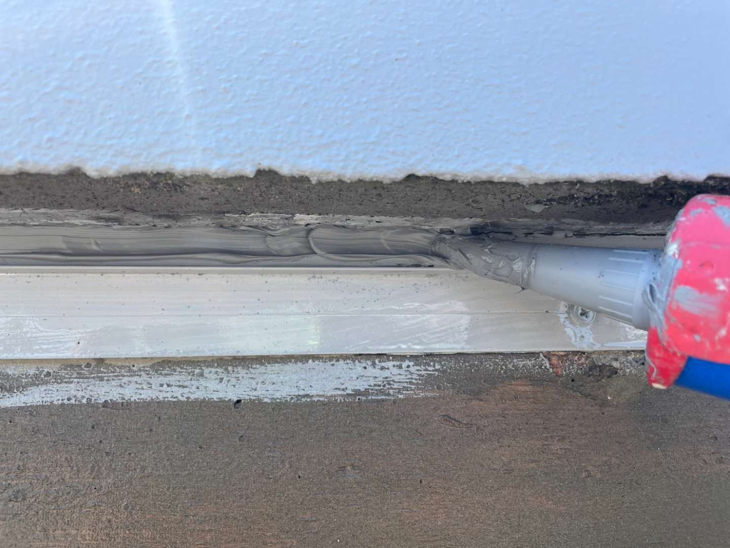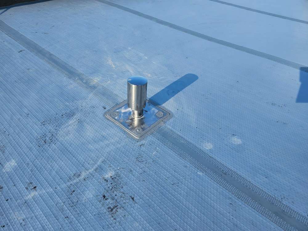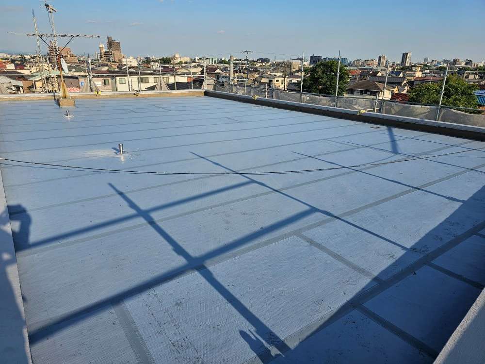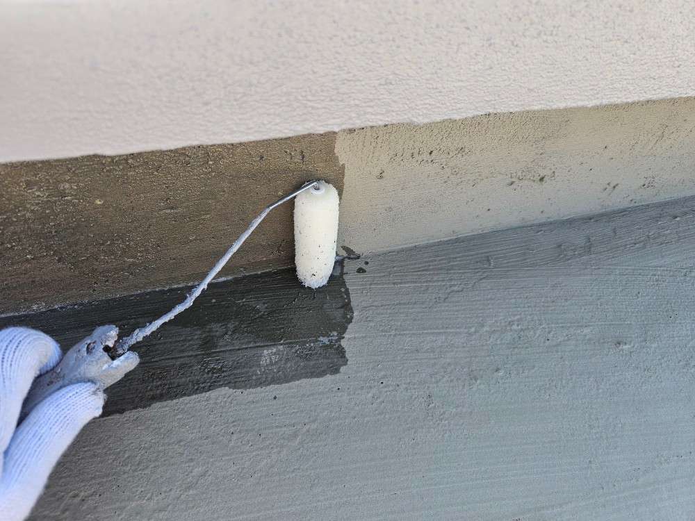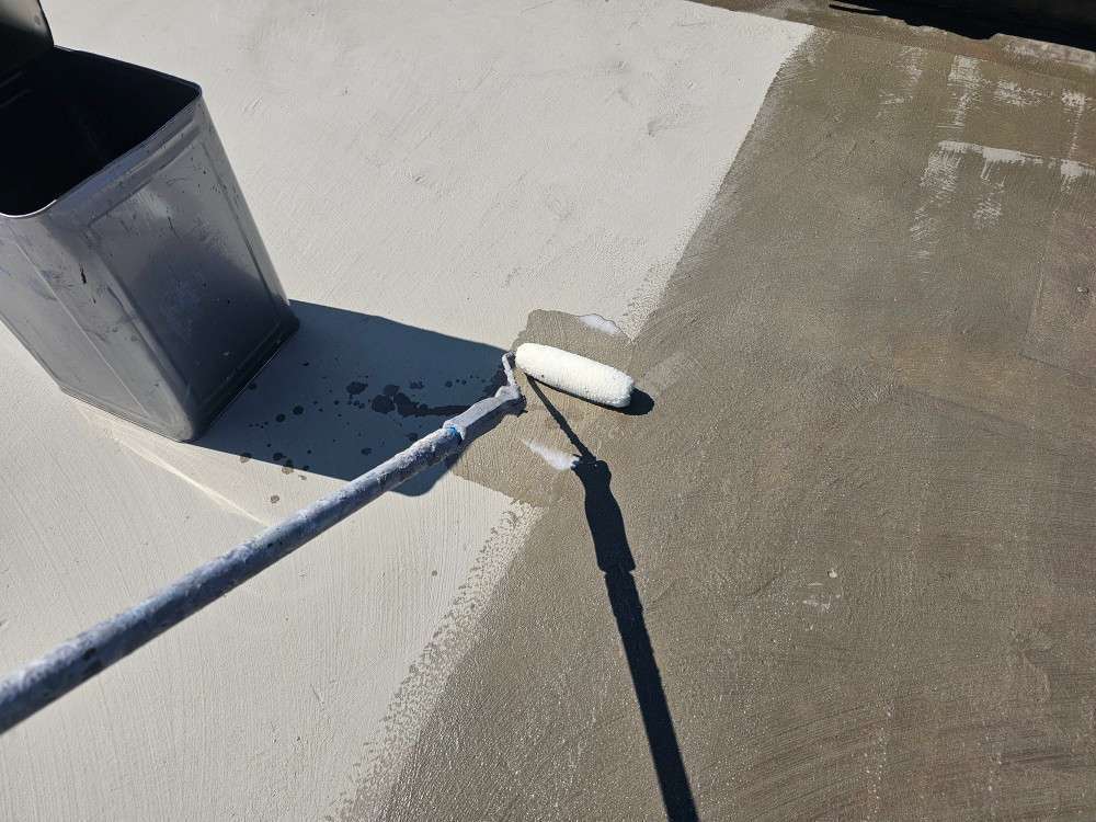 ウレタン通気緩衝複合工法防水工事のプライマー塗装・コーキング・シート張付け・脱気筒取り付け作業を行いました。