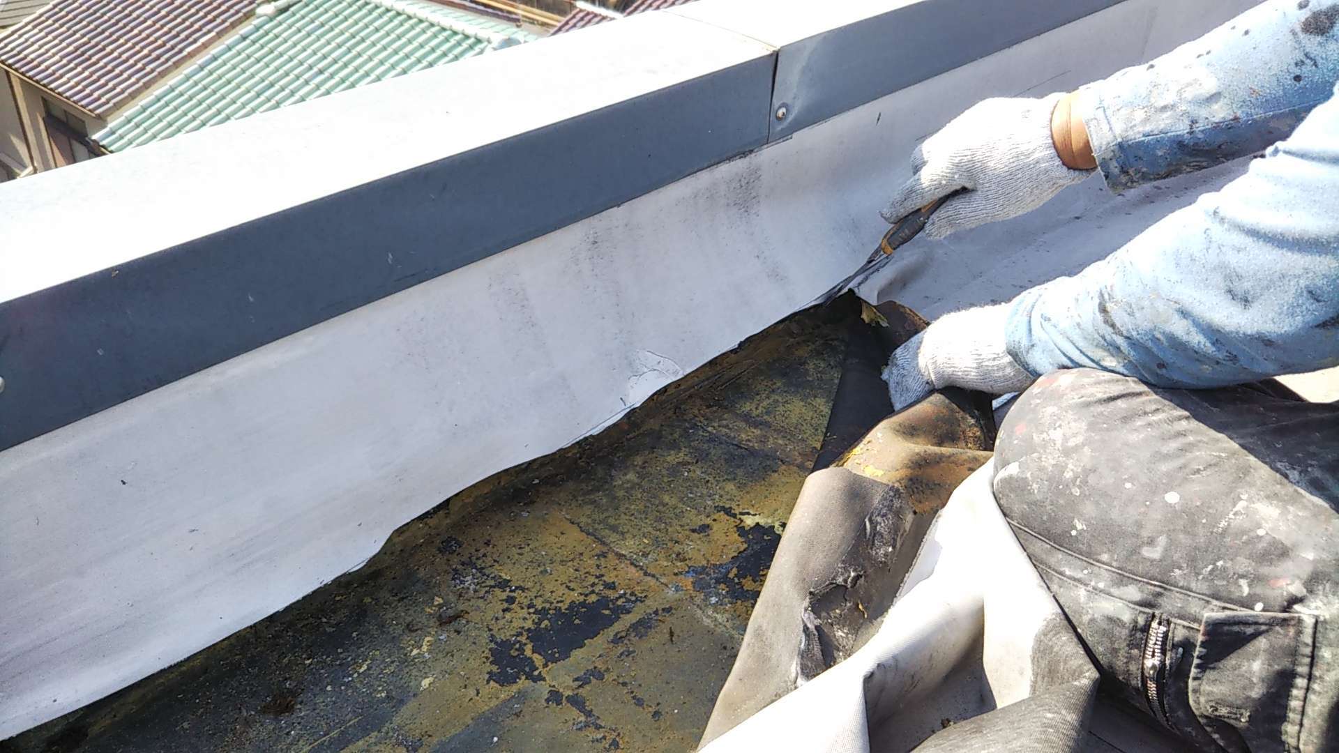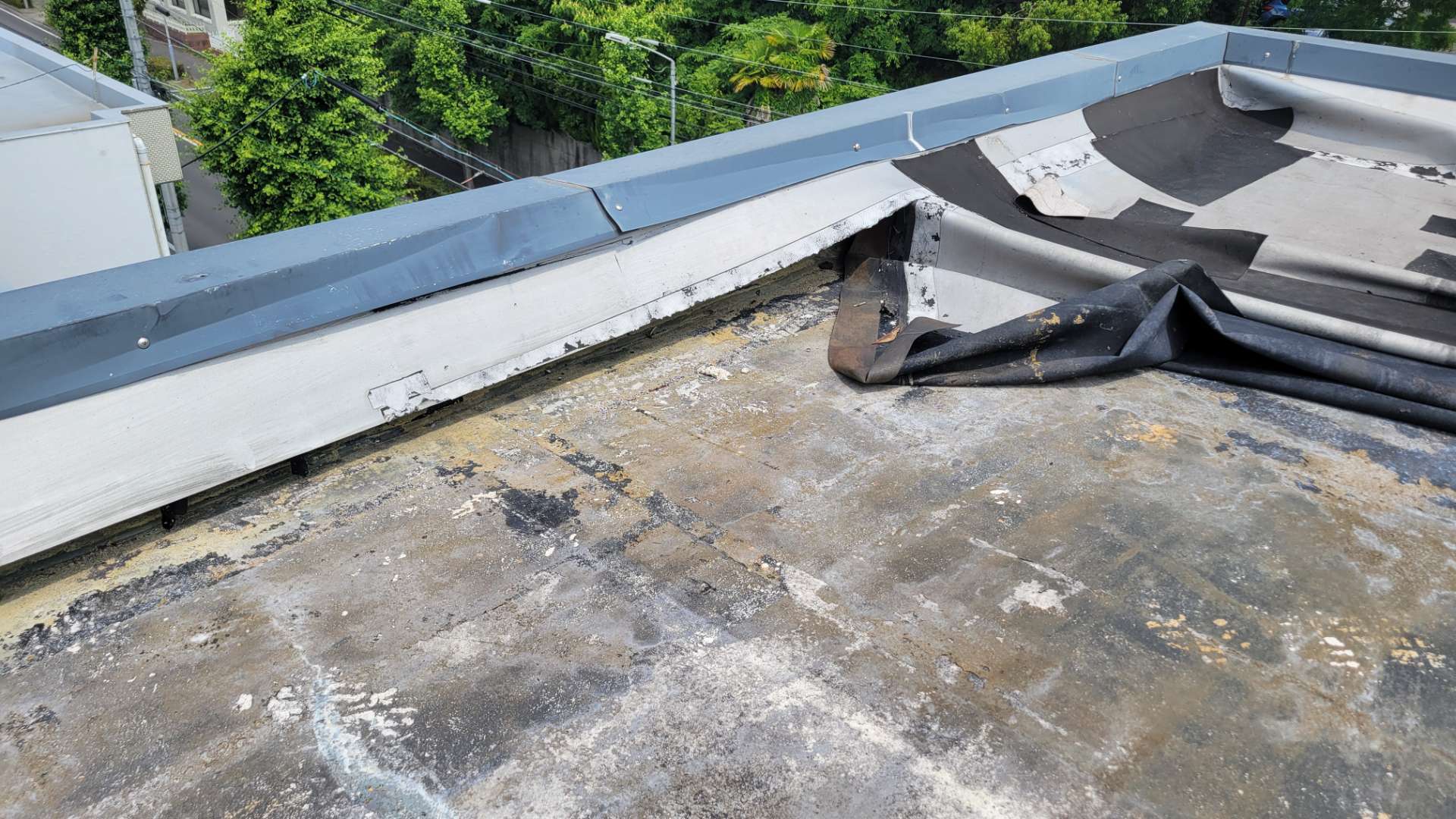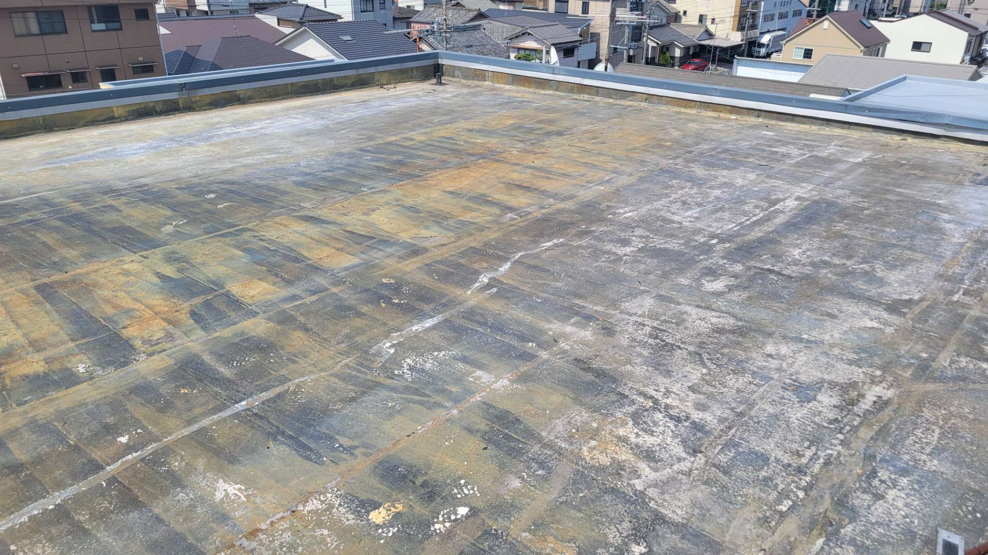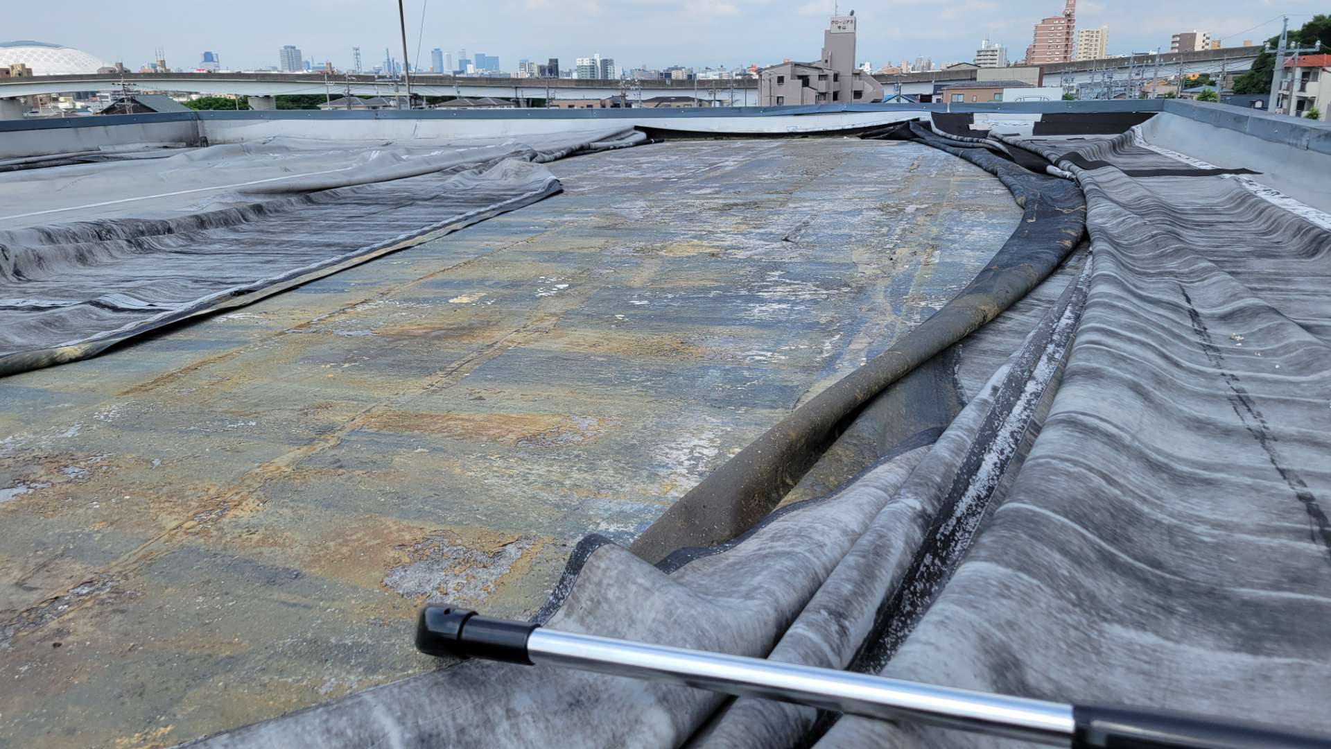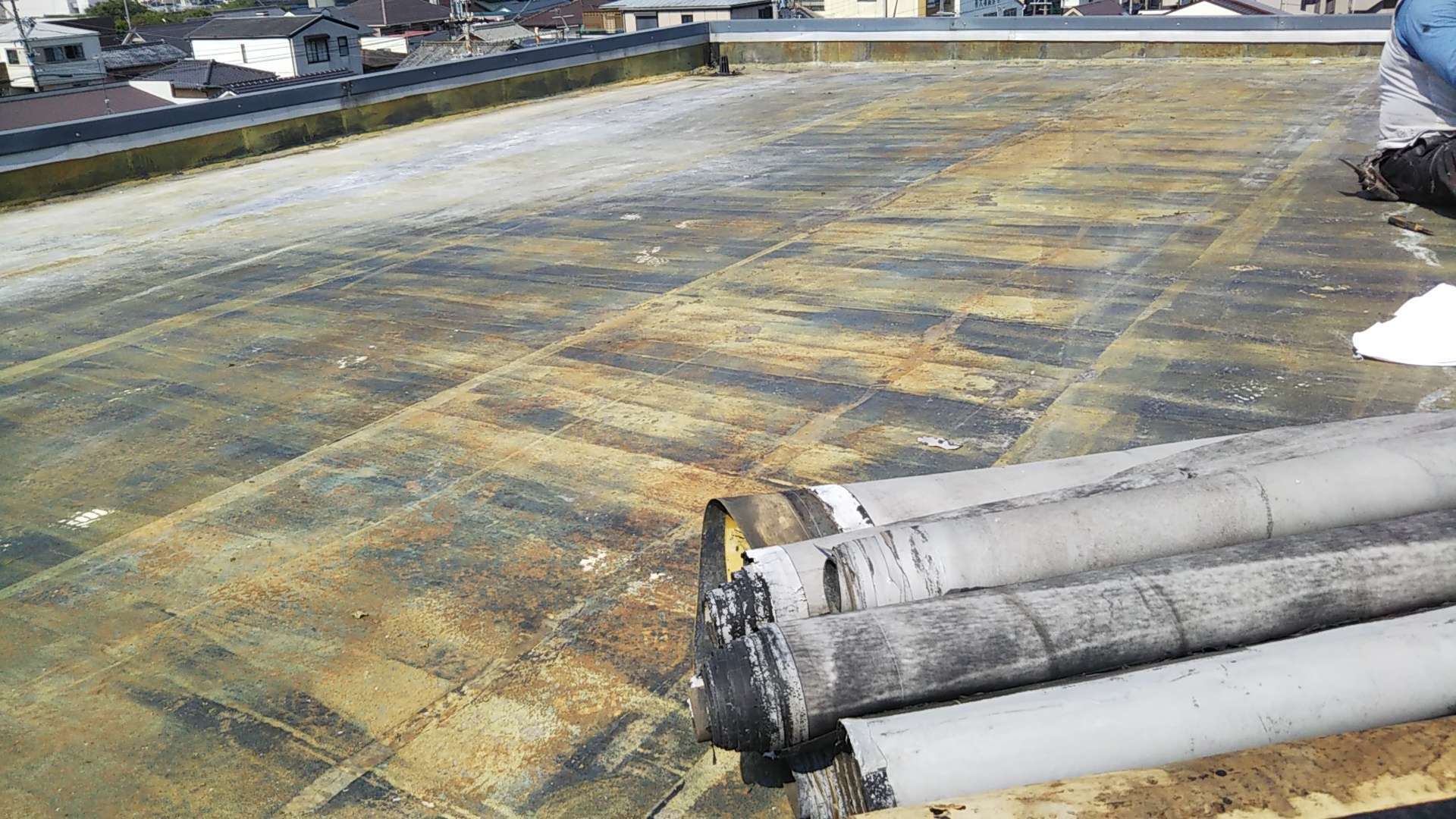 既存シート撤去作業・下地処理作業まで完了しています。