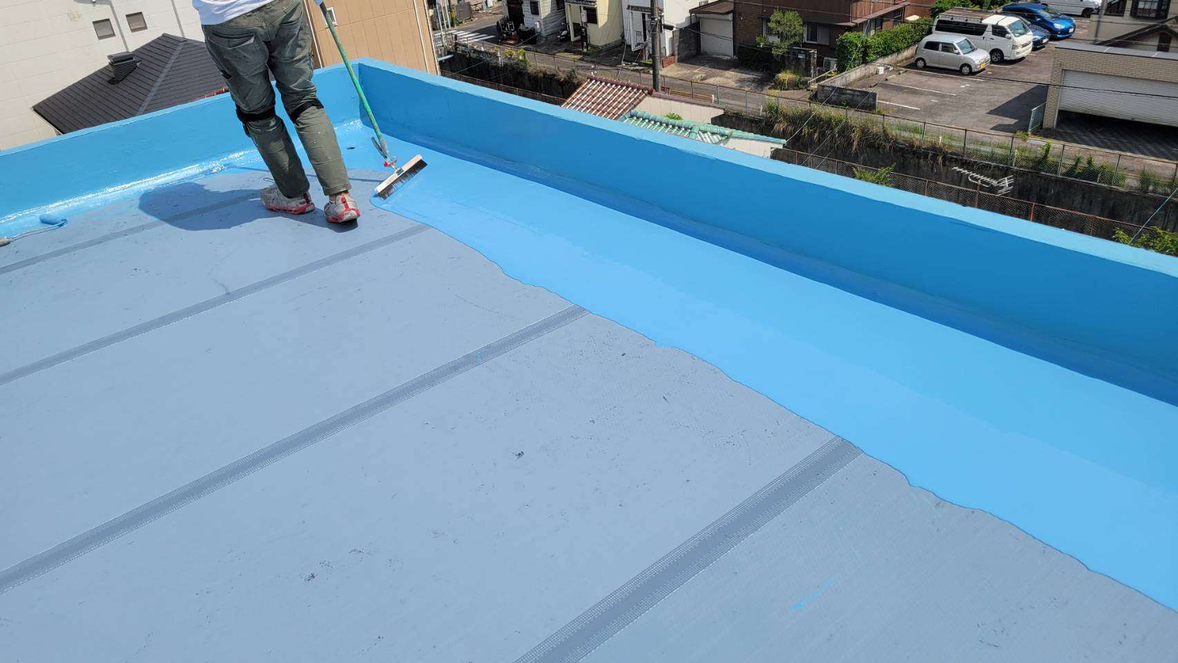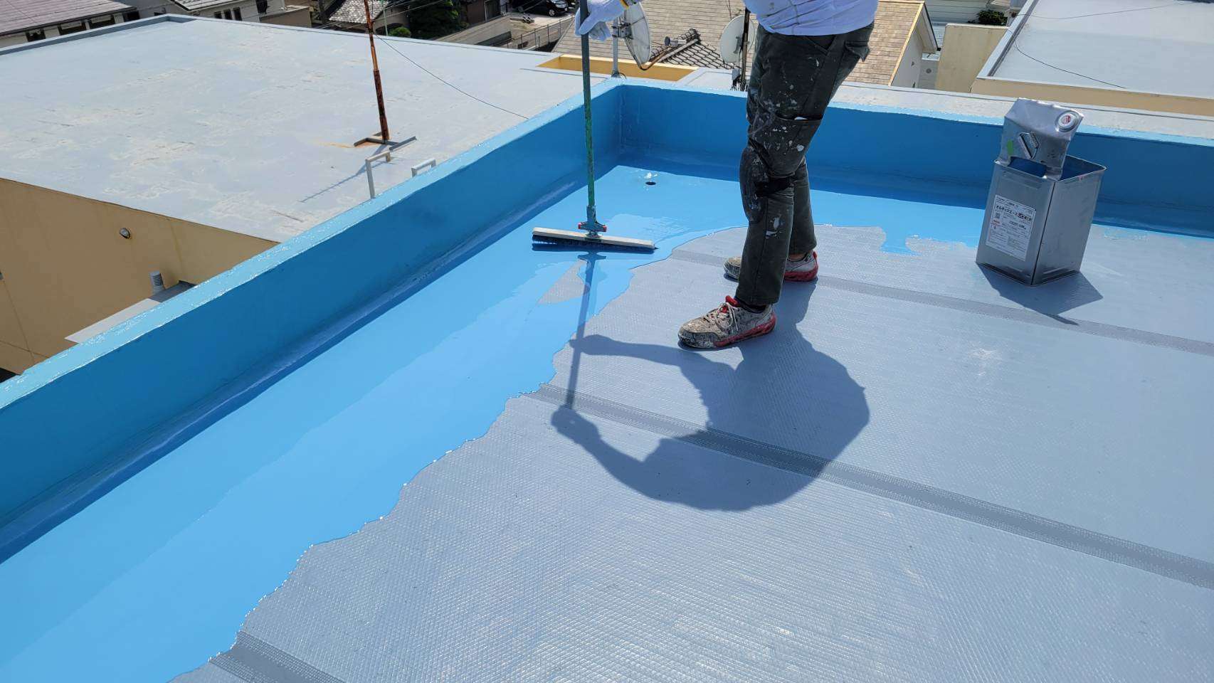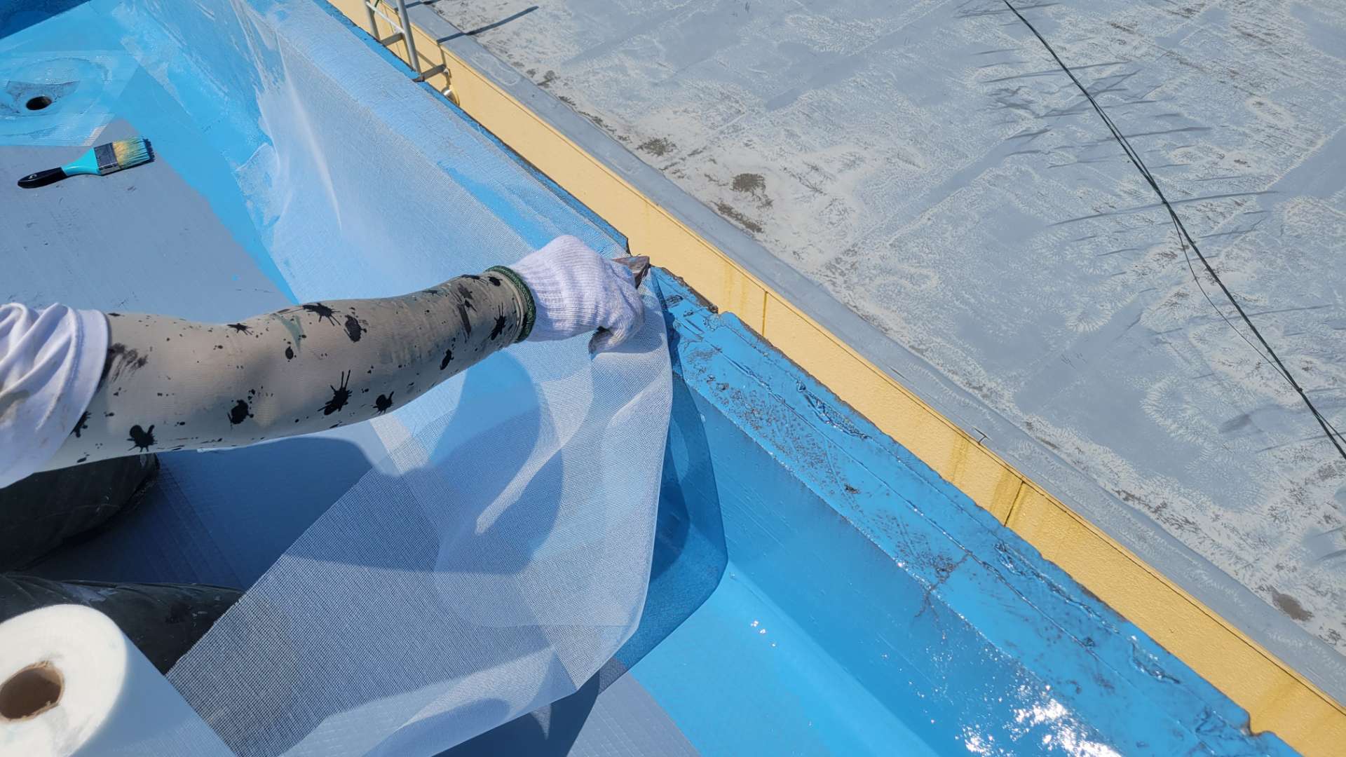 立ち上がり部メッシュ仕様ウレタン樹脂1層目塗装作業