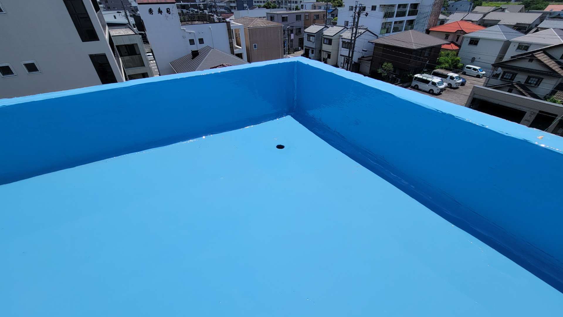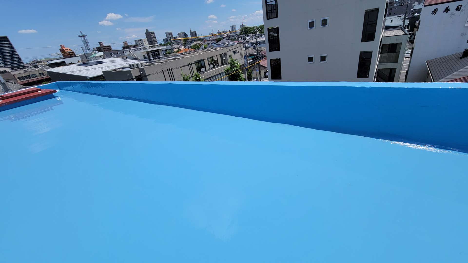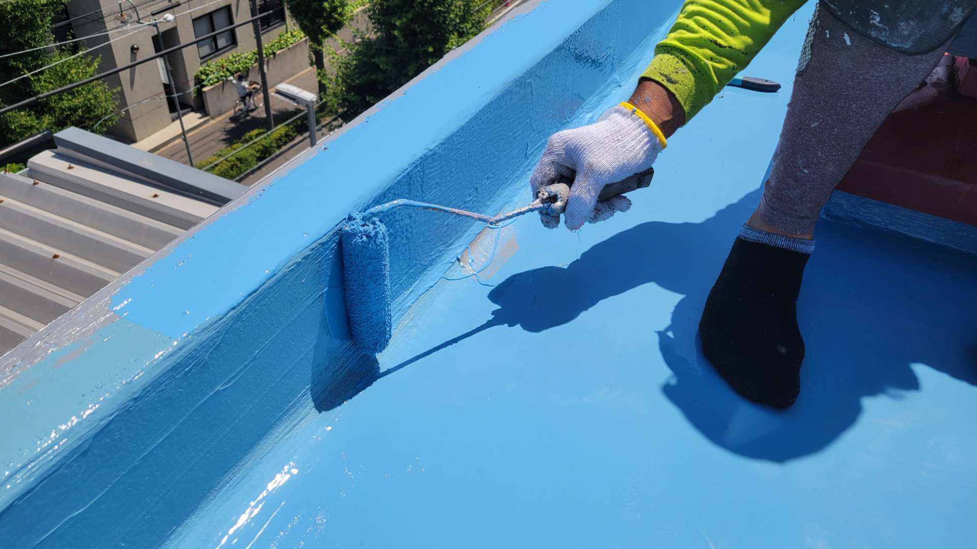 立ち上がり部のウレタン樹脂3層目塗装・平場部ウレタン樹脂2層目塗装作業を行っていました。