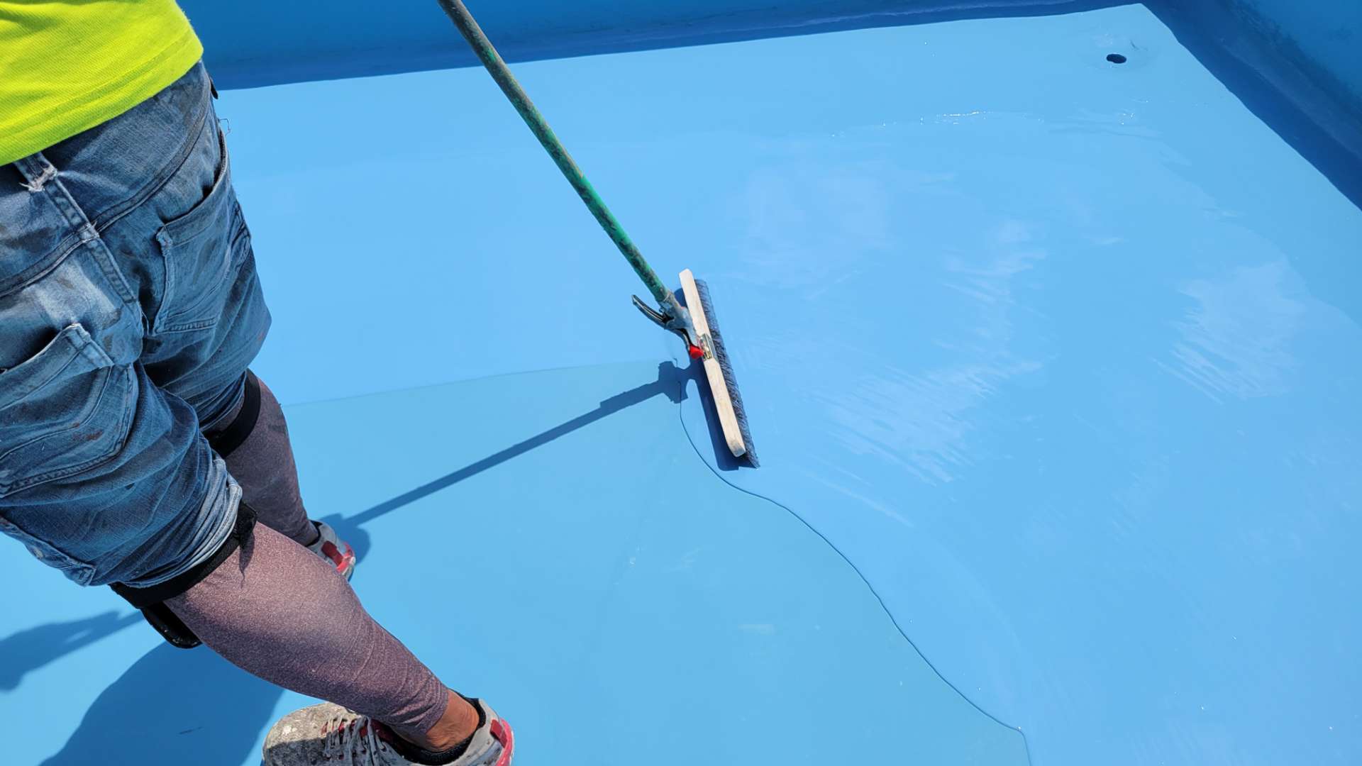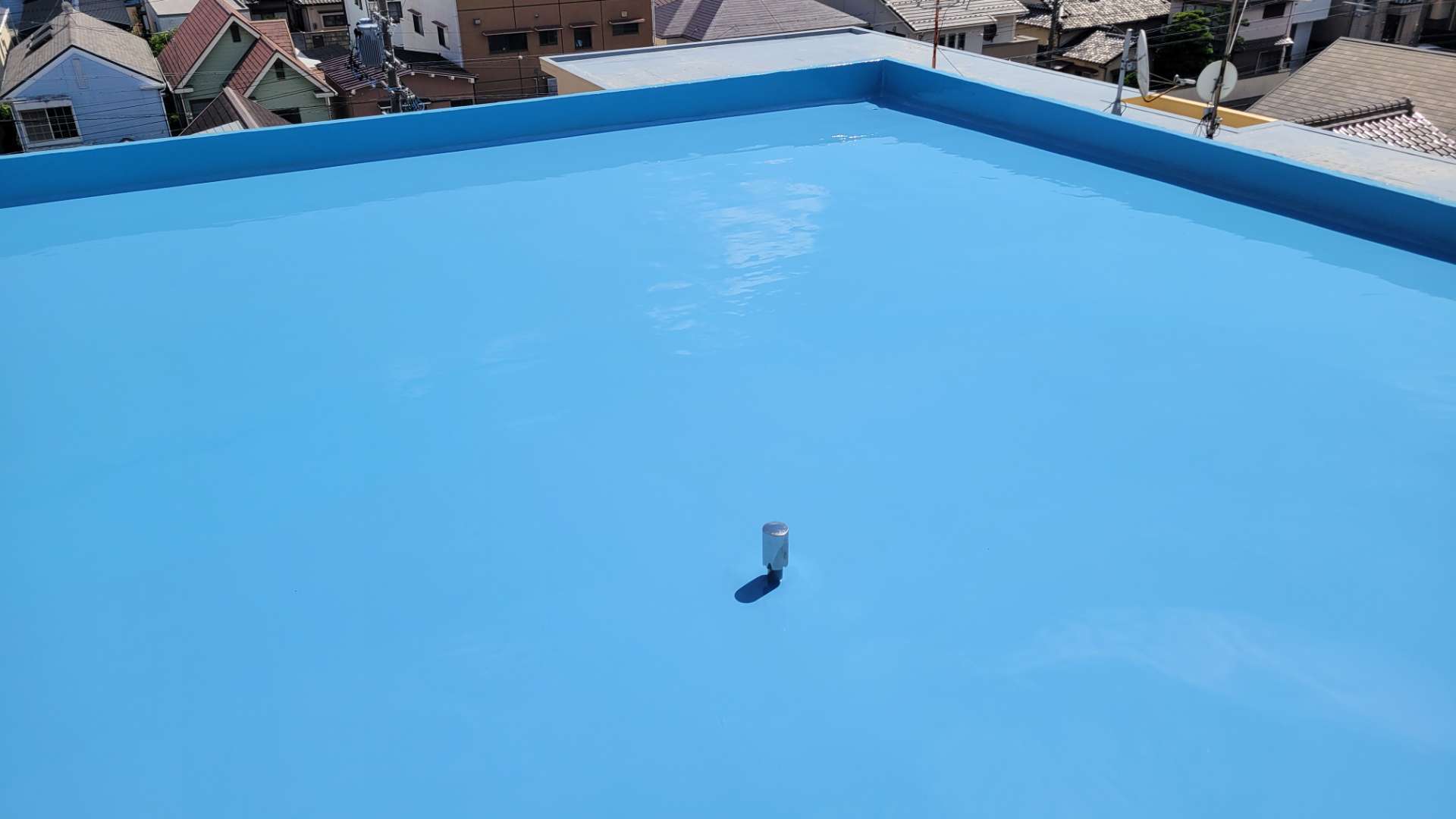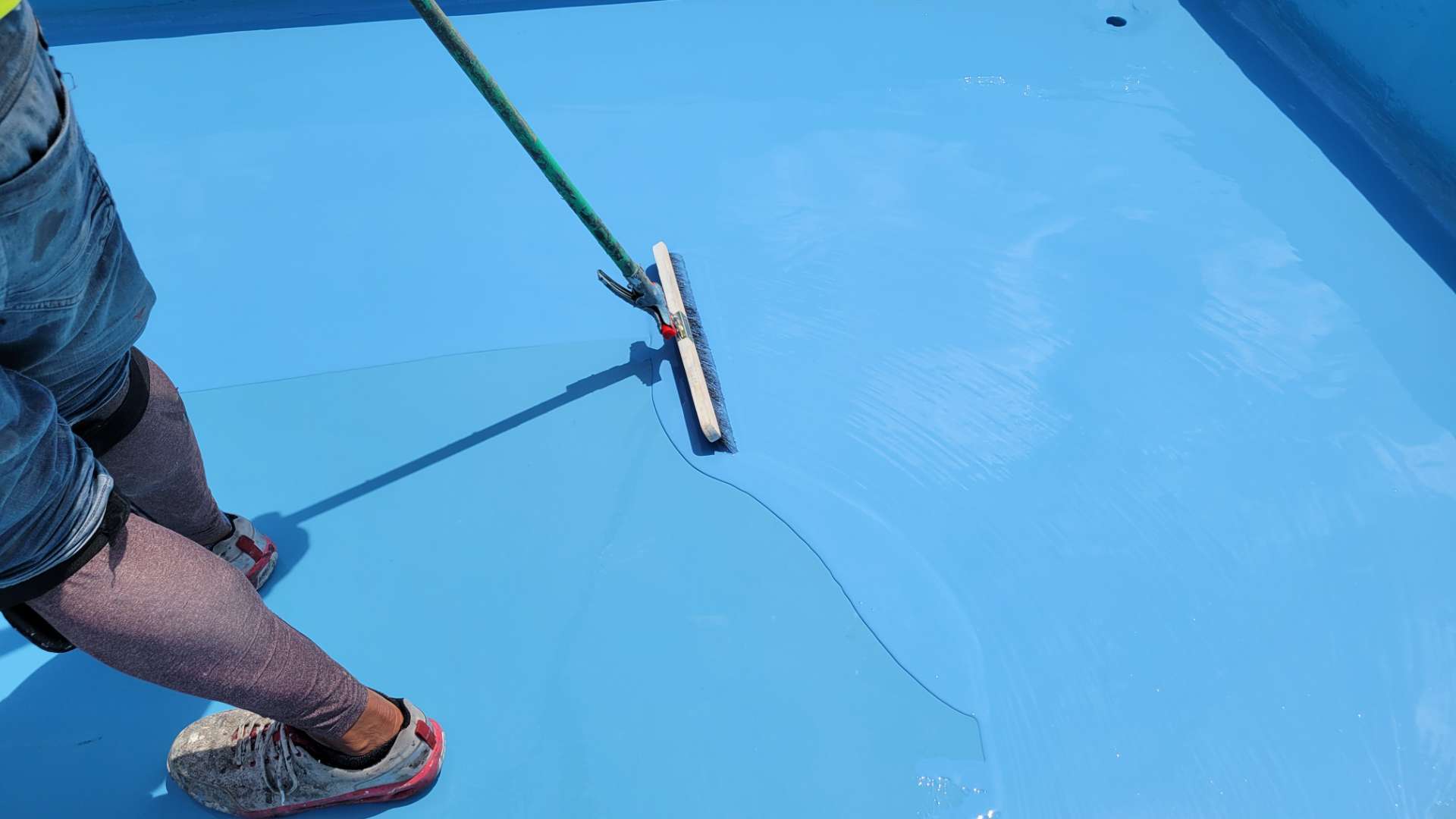 立ち上がり部のウレタン樹脂3層目塗装・平場部ウレタン樹脂2層目塗装作業を行っていました。