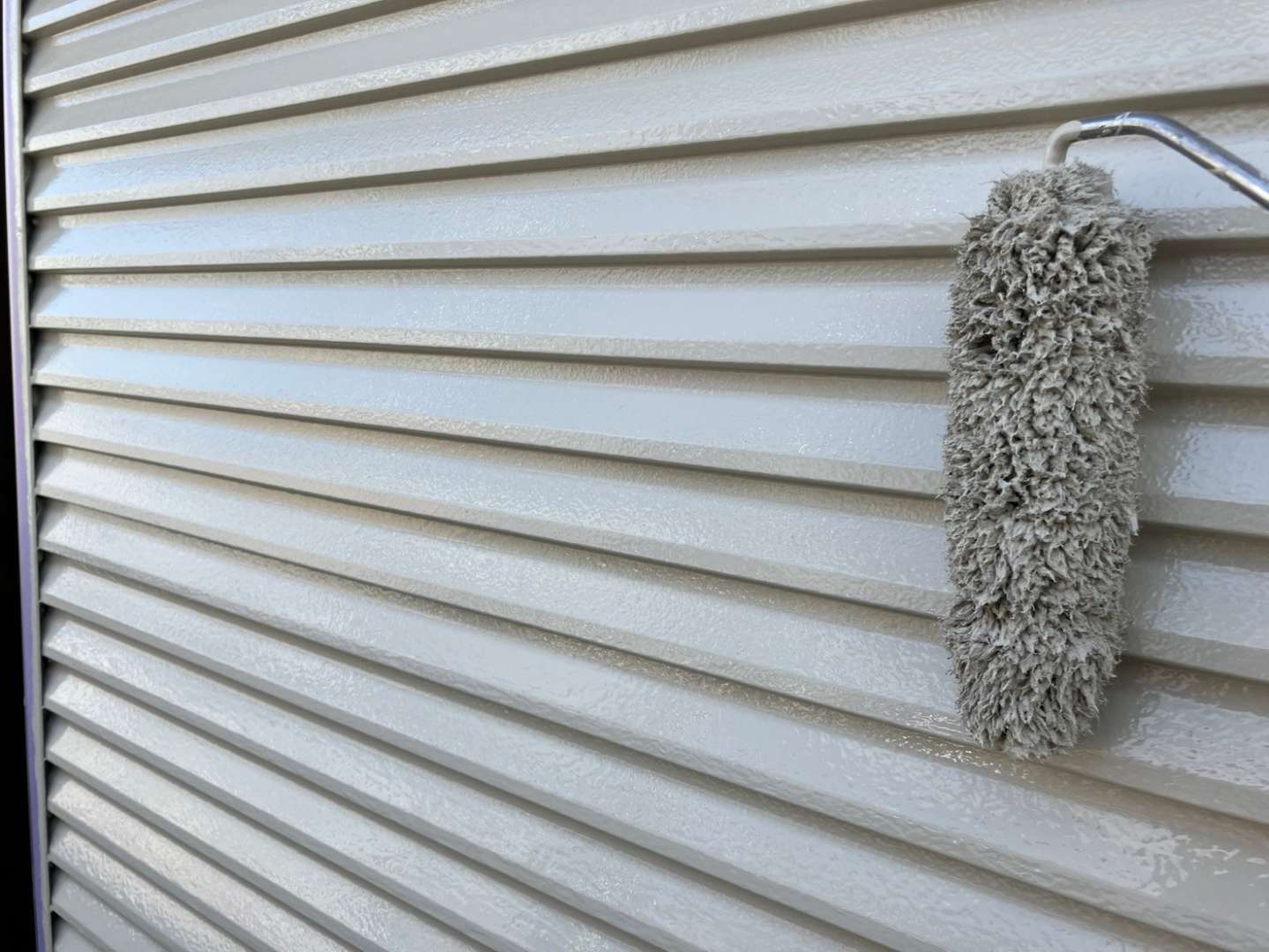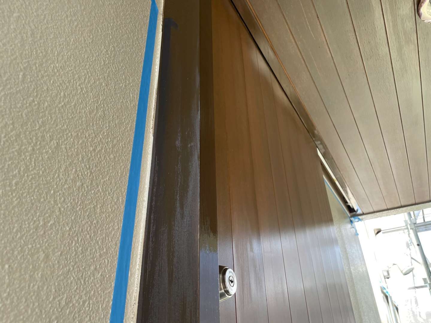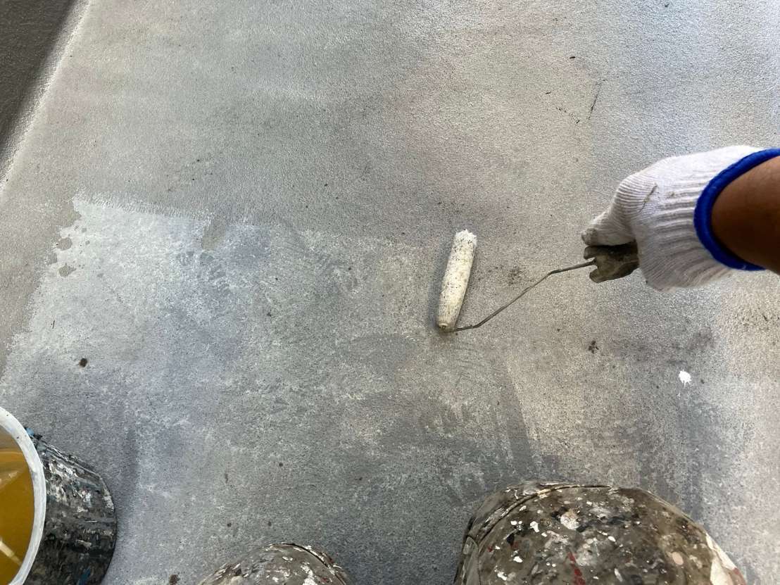 千種区Y様邸の昨日の作業内容は、付帯部塗装作業・下屋根の上塗り塗装作業・ベランダ防水工事のプライマー塗装作業・窓廻りコーキング(シーリング)作業を行っています。
