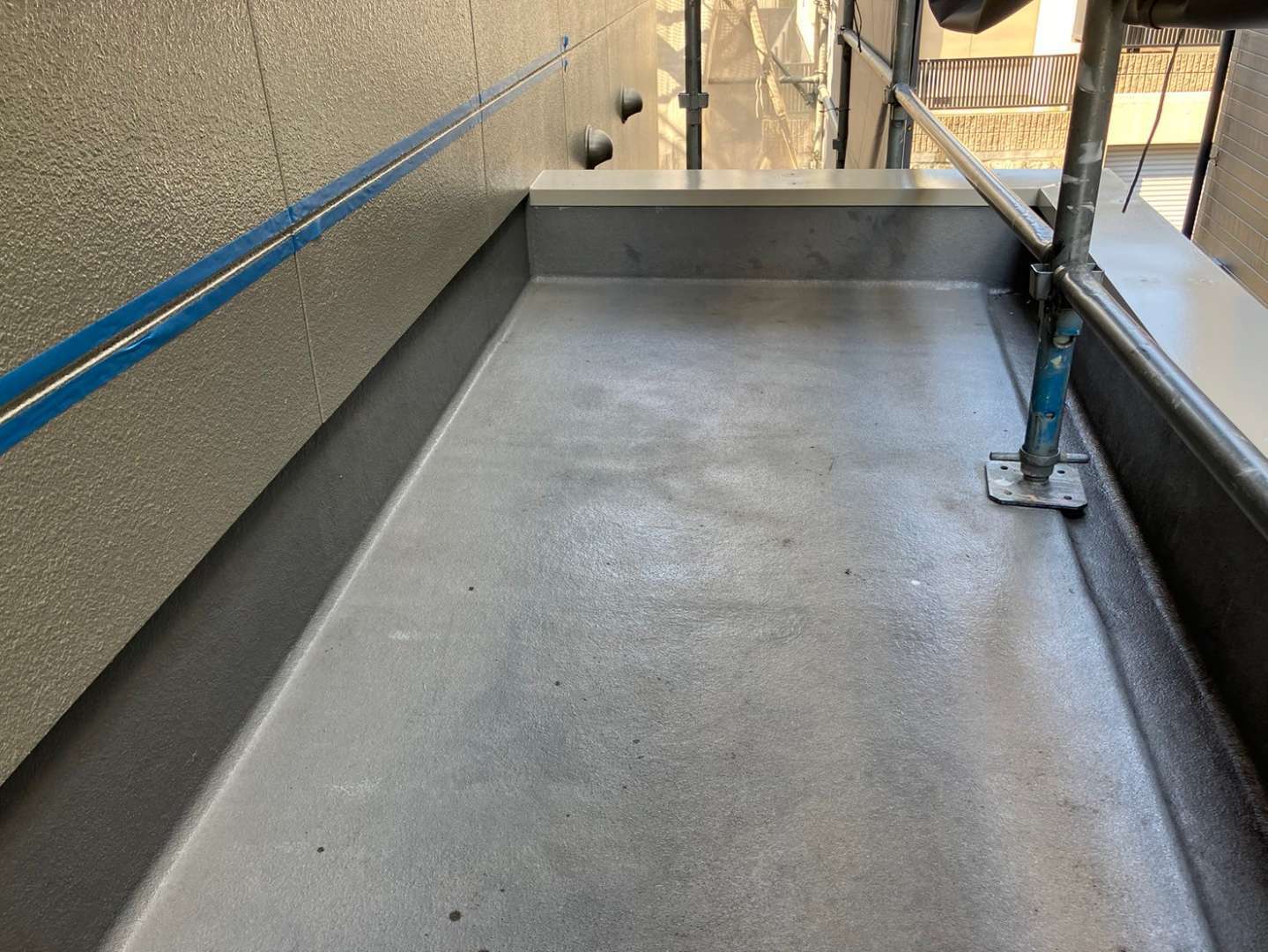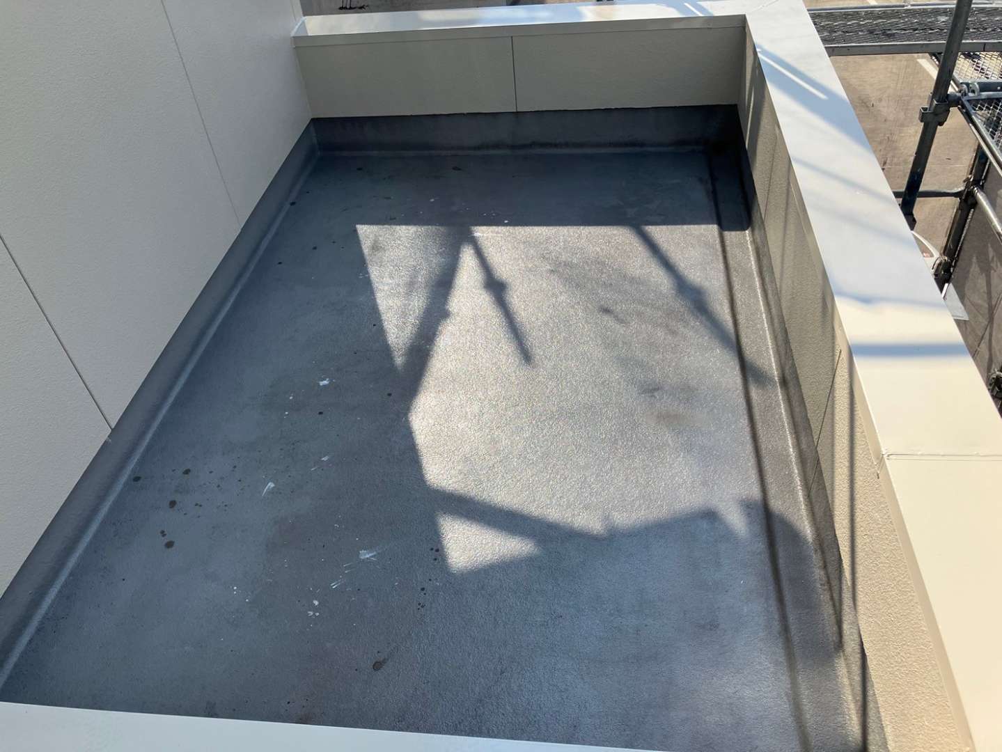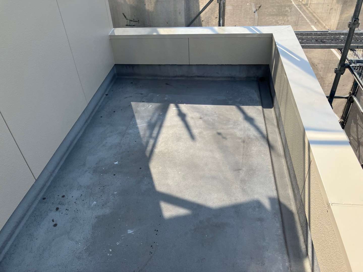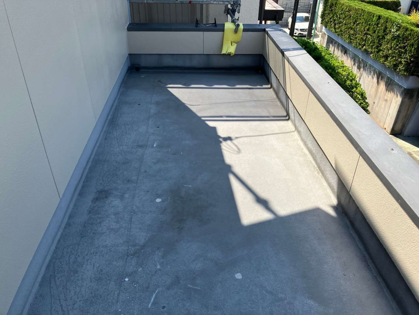 千種区Y様邸の昨日の作業内容は、付帯部塗装作業・下屋根の上塗り塗装作業・ベランダ防水工事のプライマー塗装作業・窓廻りコーキング(シーリング)作業を行っています。