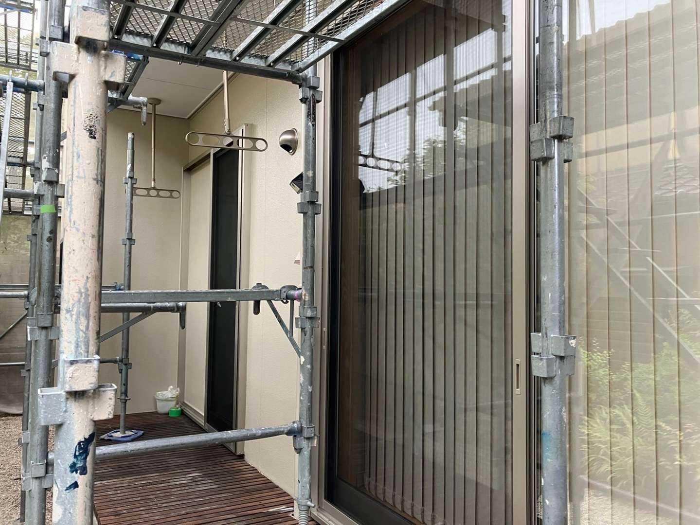 名古屋市名東区 K様邸 外壁塗り替え工事 洗浄作業が終わり、今日は養生作業です! 洗浄作...