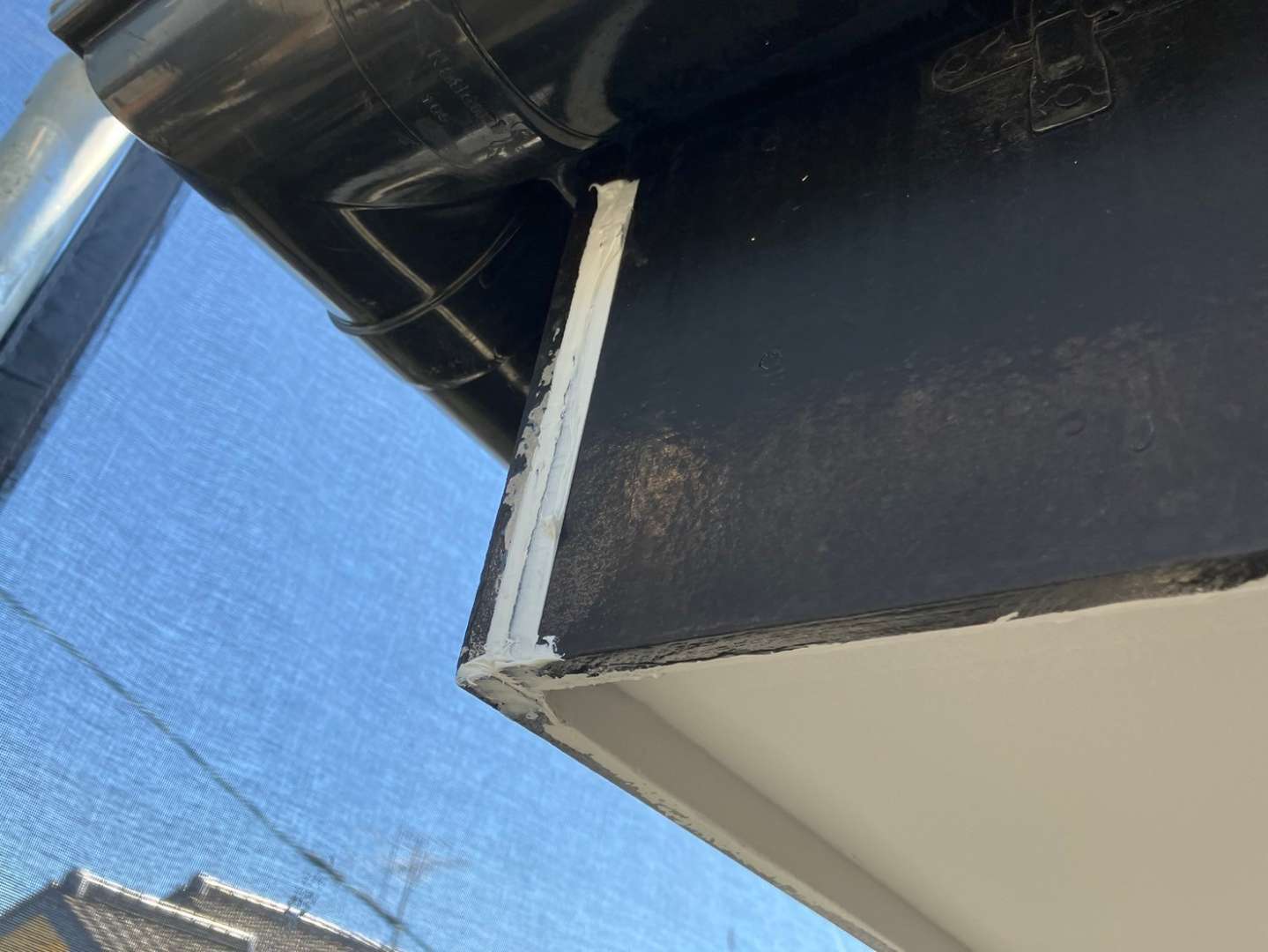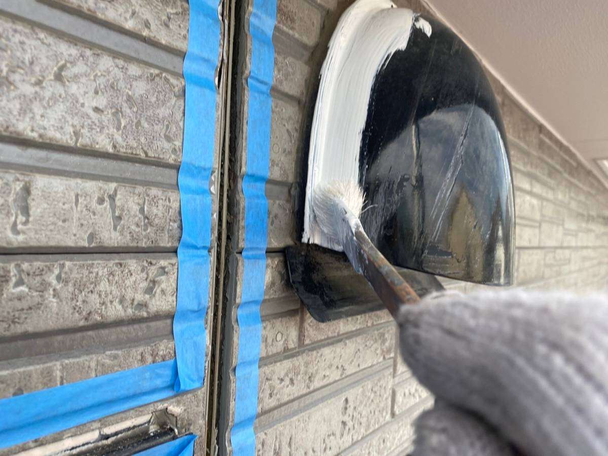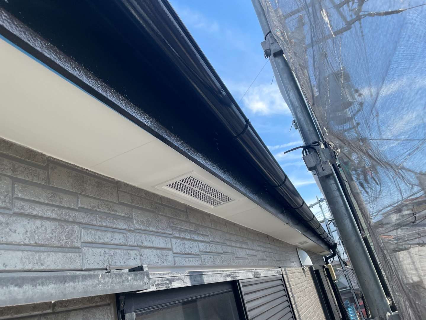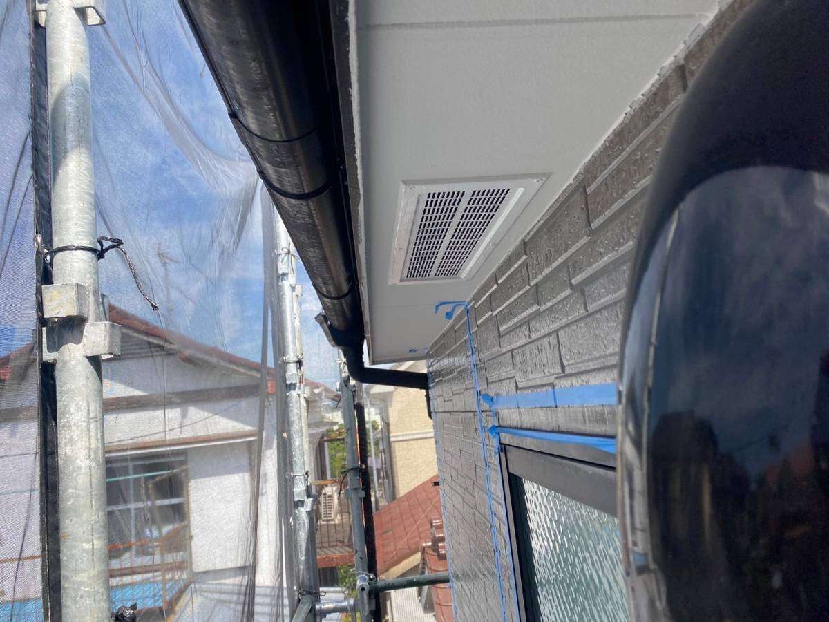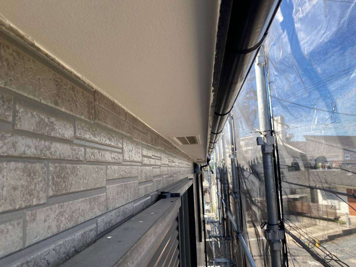 軒天塗装・コーキング・付帯部塗装作業を行っていました。