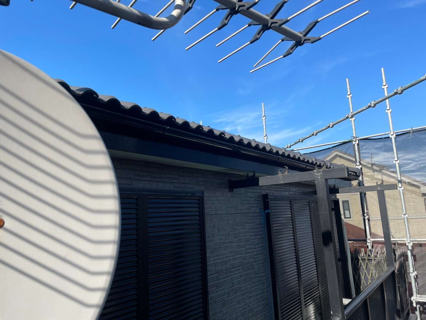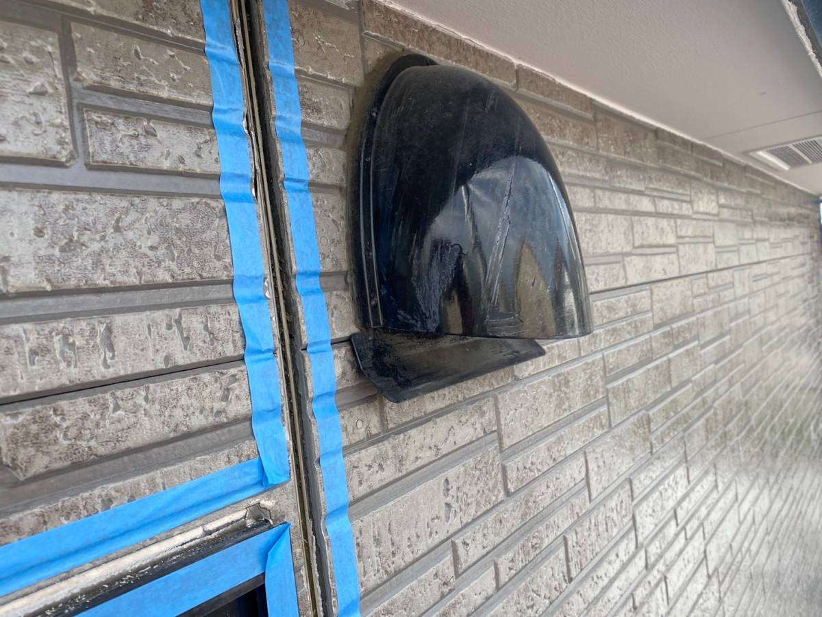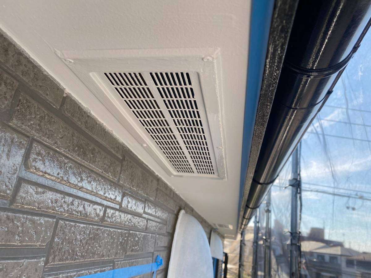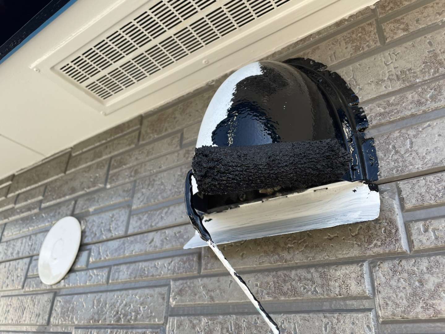 軒天塗装・コーキング・付帯部塗装作業を行っていました。