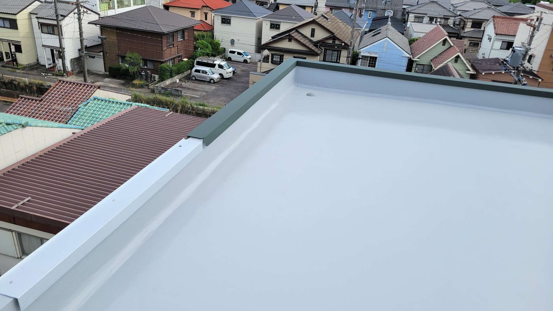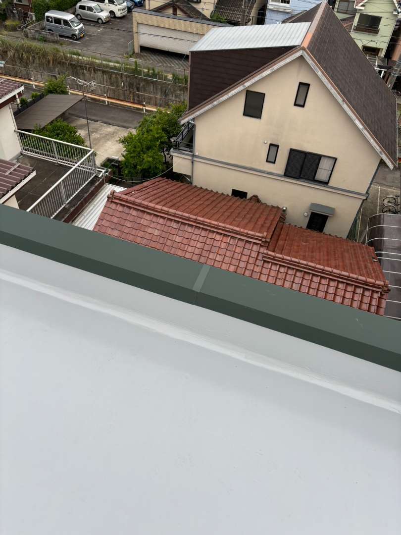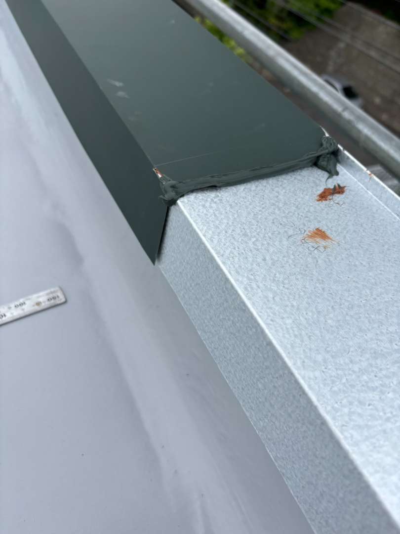 守山区のマンションA様、屋上笠木部の板金取付け作業が完了しました。