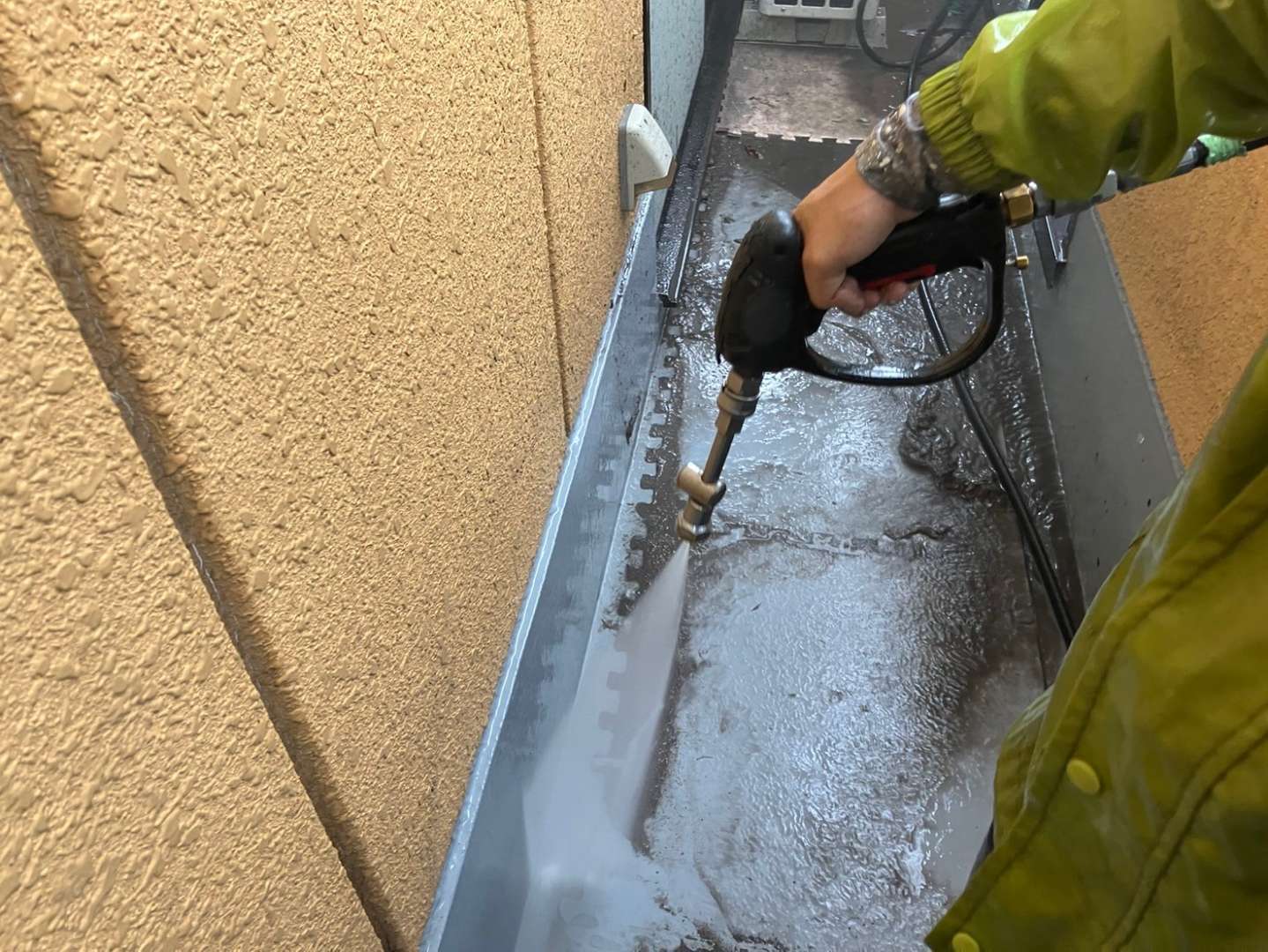 西区、Y様邸の昨日の作業内容は、洗浄作業を行いました。