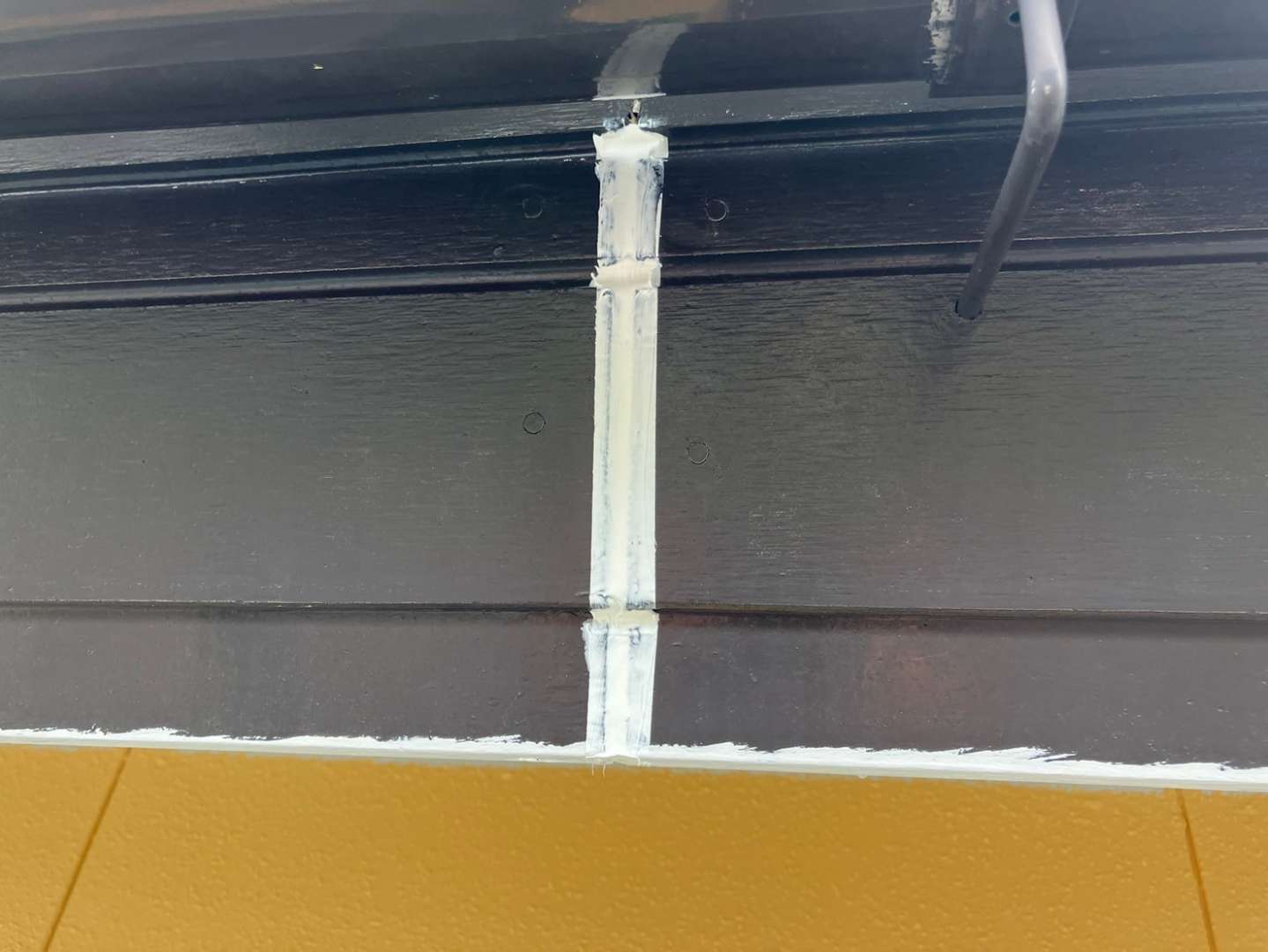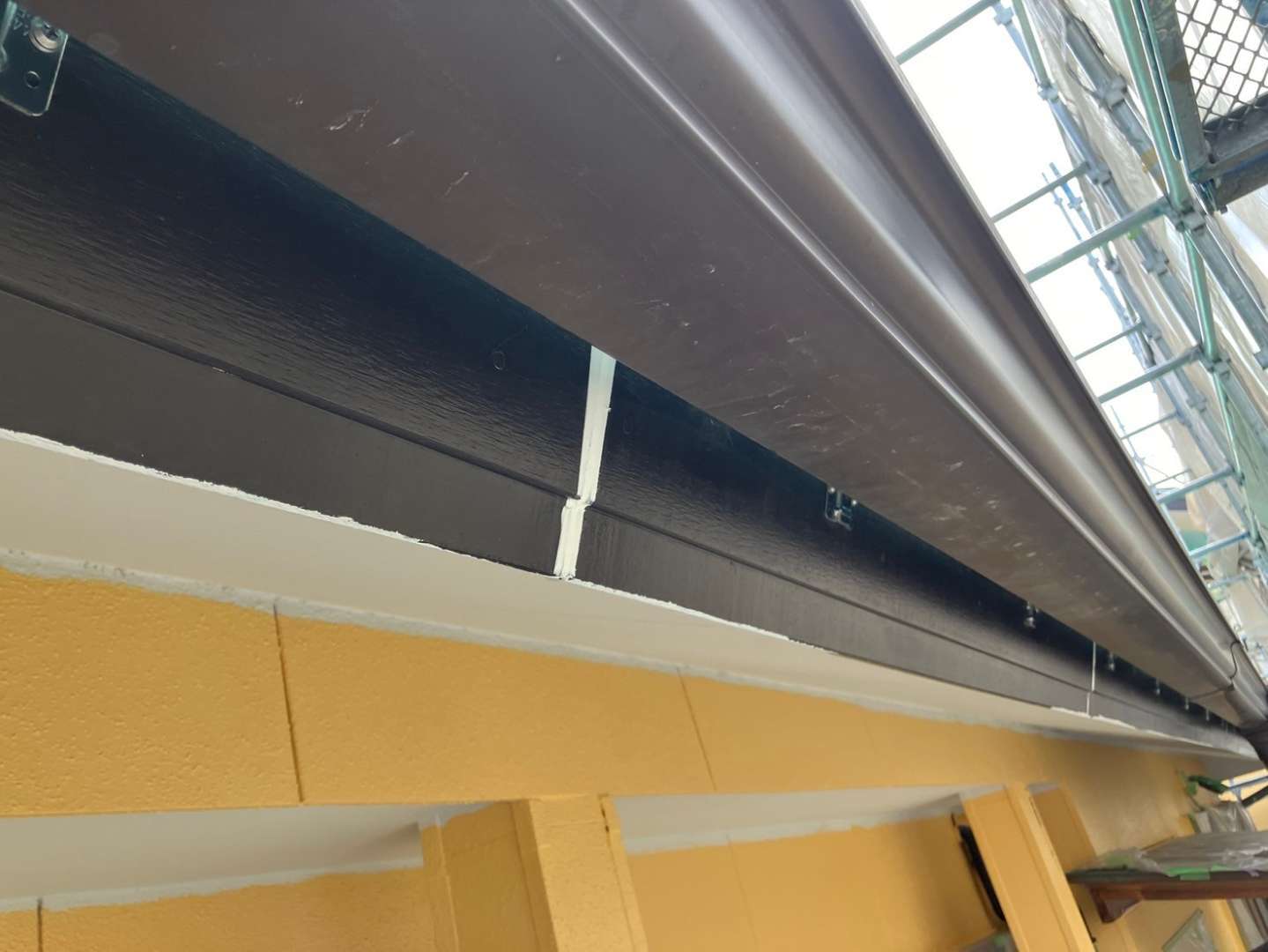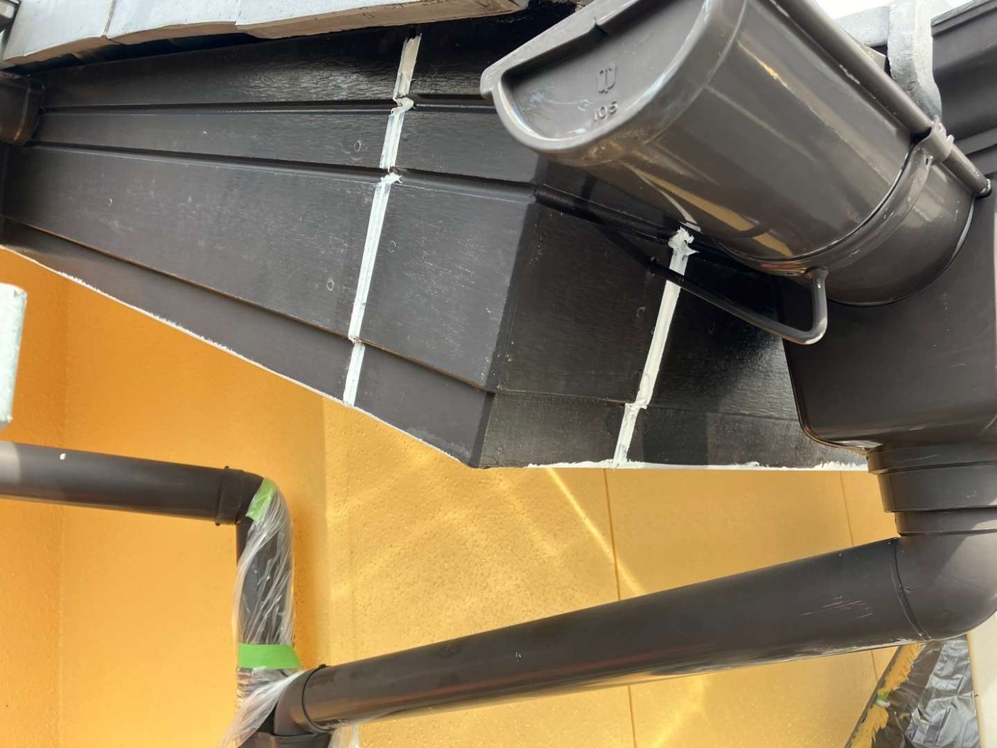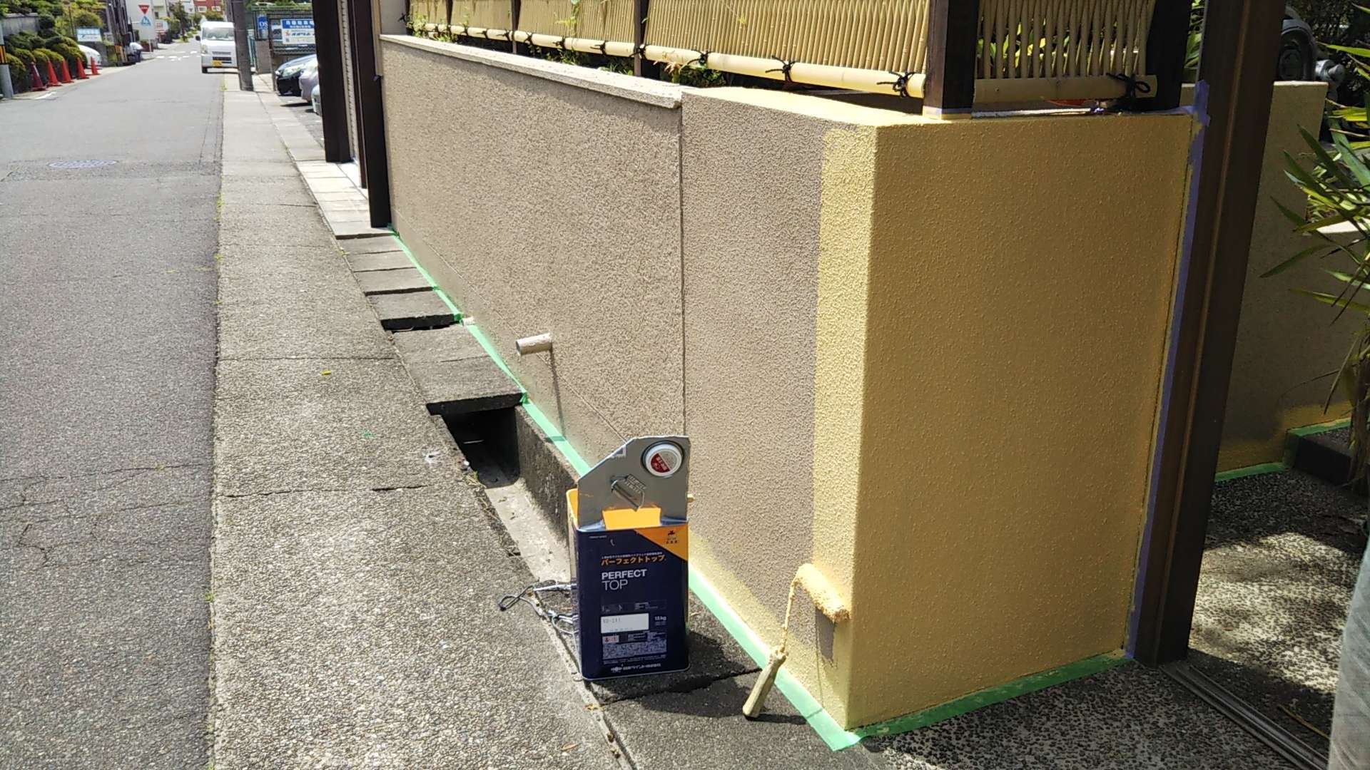 名東区のS様邸の昨日の作業内容は、外壁の上塗り塗装・破風板のコーキング(シーリング)・塀塗装作業を行っていました。