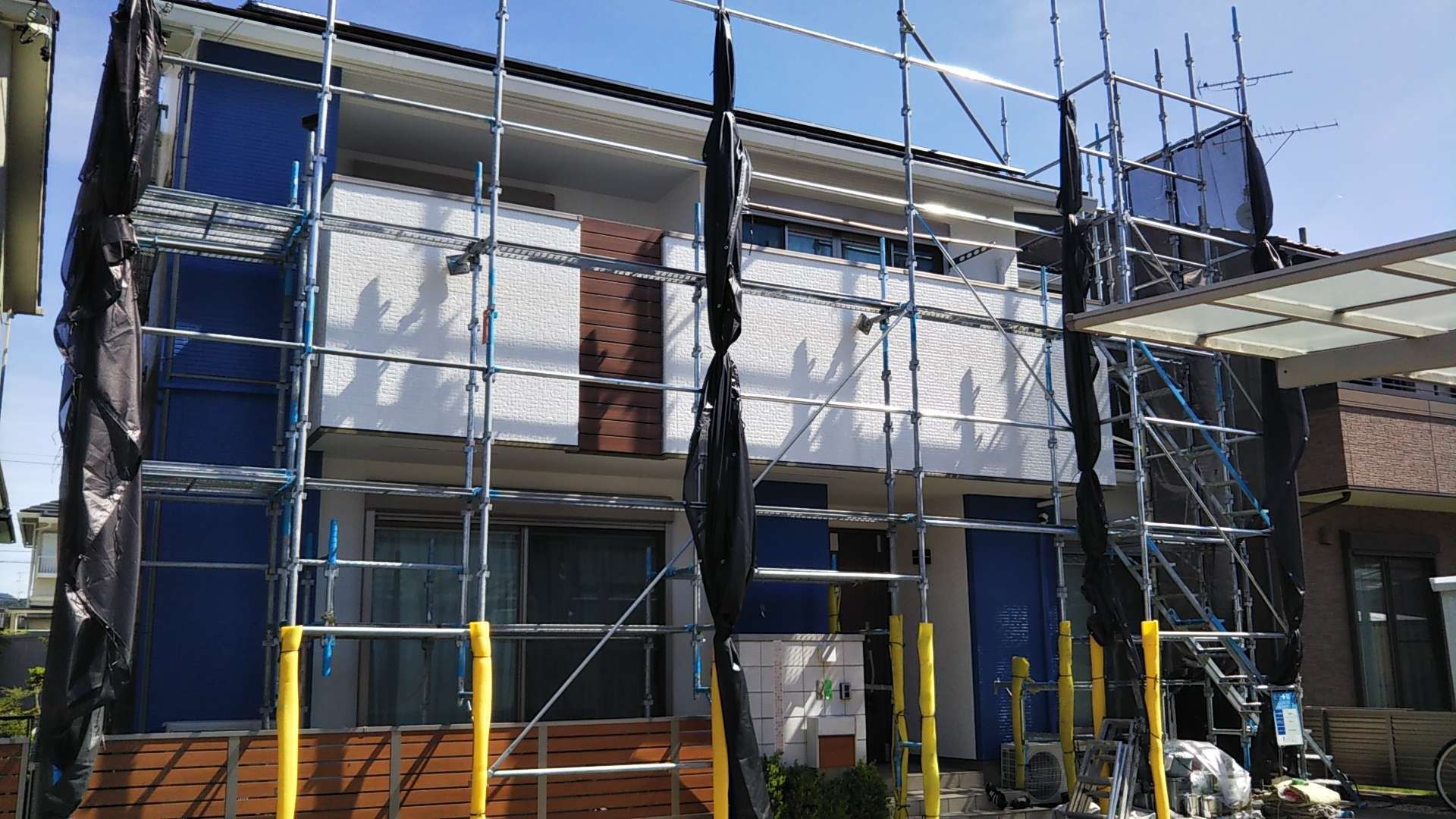 名古屋市北区 コーポ3棟 外壁・屋根の塗り替え工事 A棟 外壁の上塗り、C棟 屋根の上塗り・付...