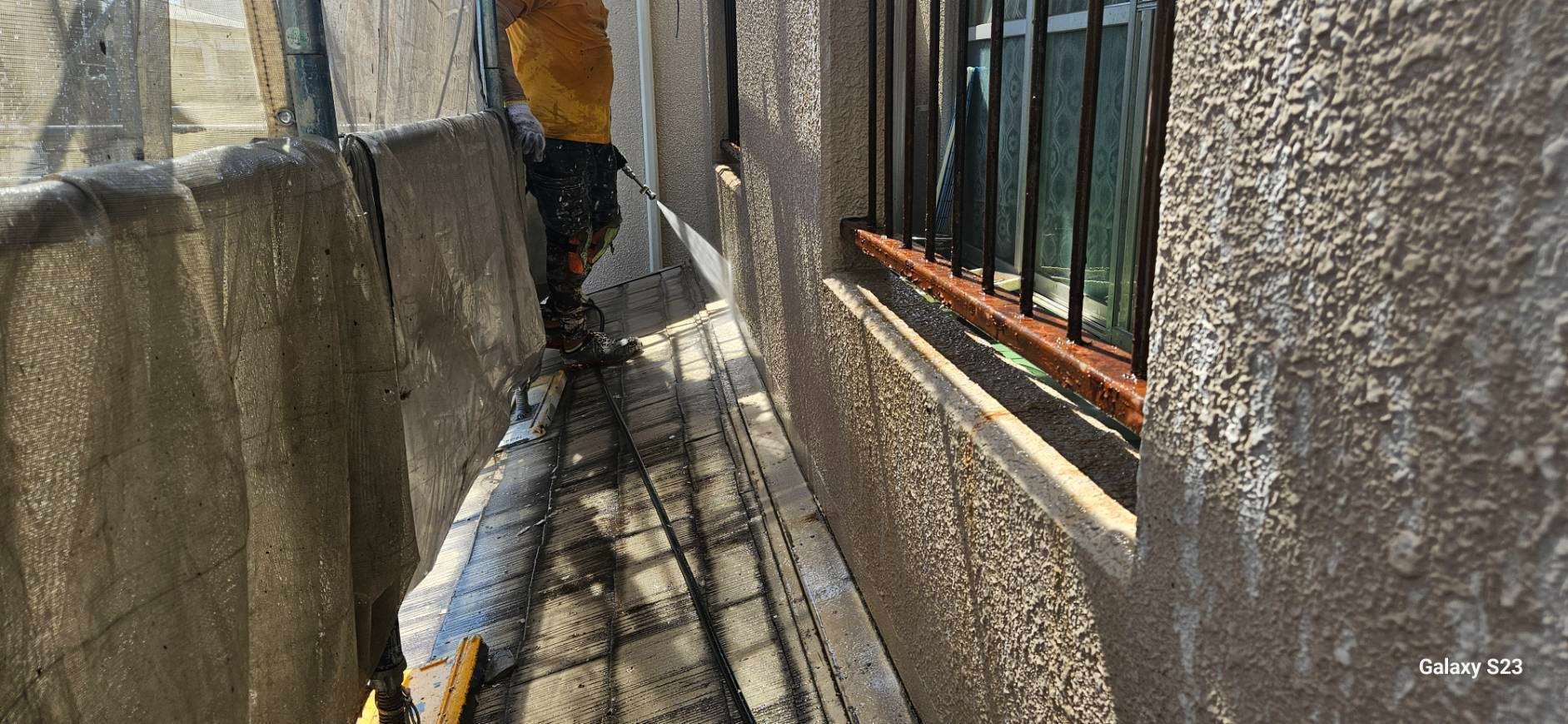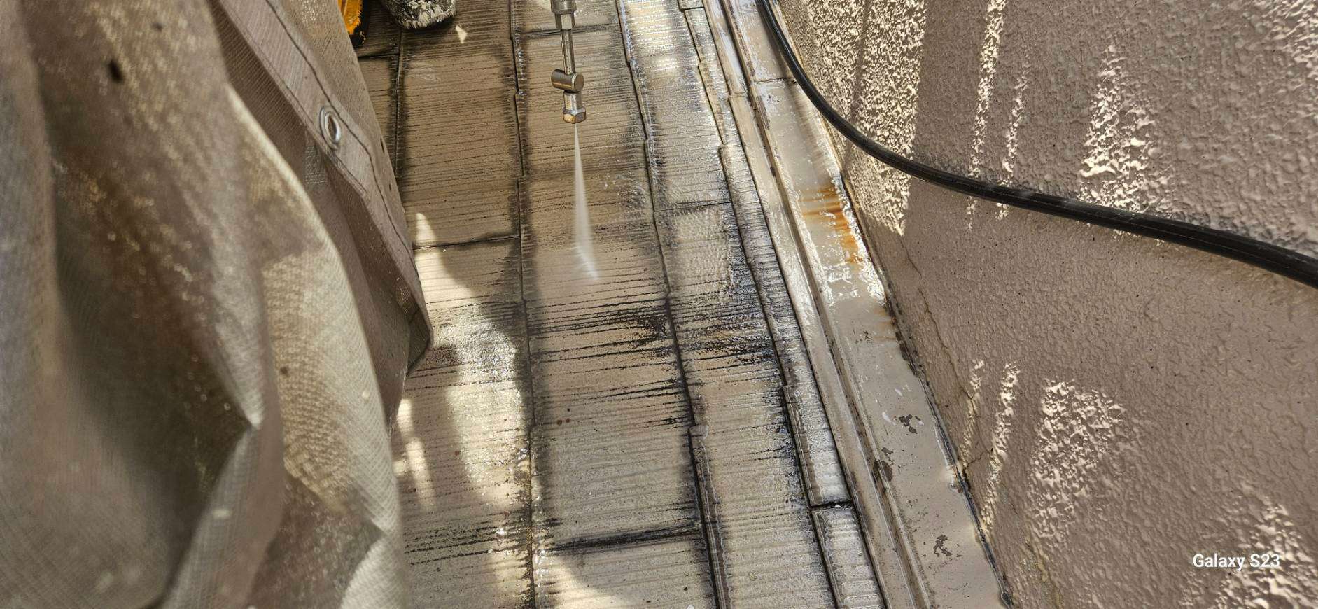 東区のH様邸の昨日の作業内容は、洗浄・劣化亀裂部の補修作業を