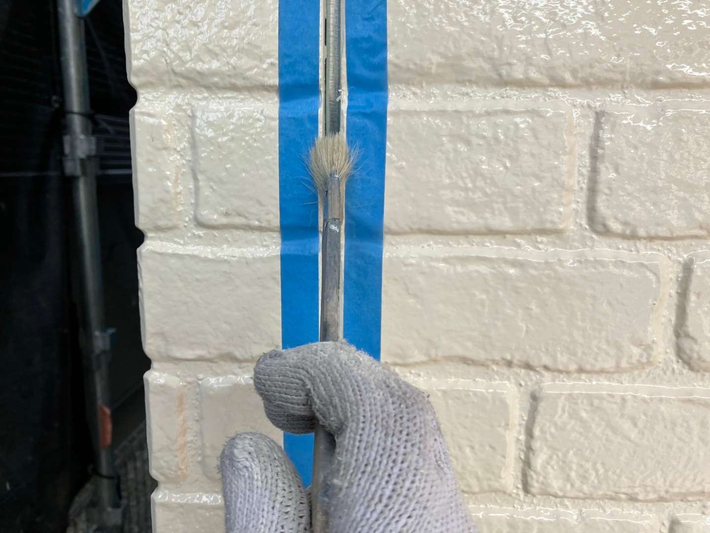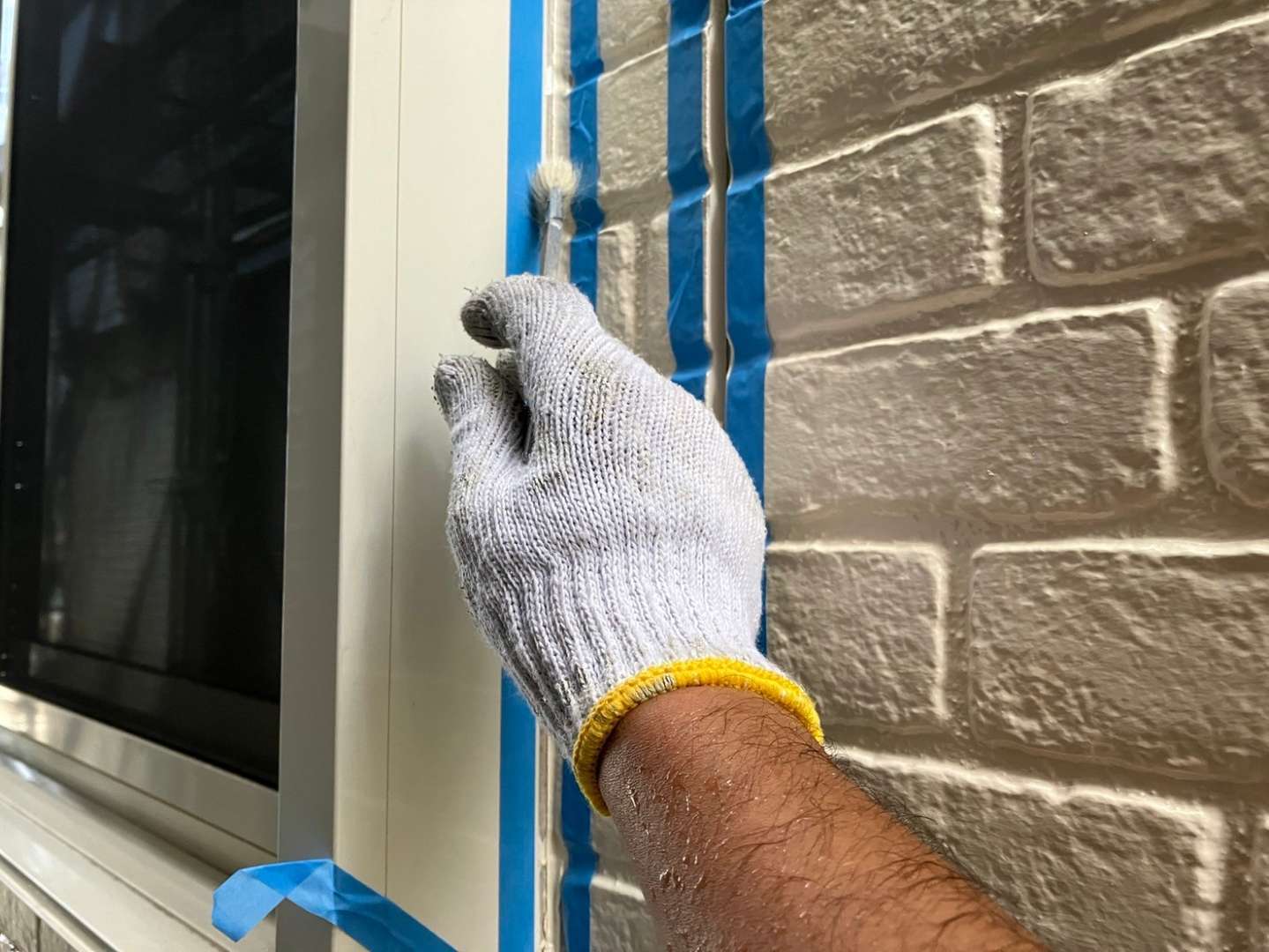 A様邸の今日の作業は、コーキング(シーリング)作業と付帯部上塗り2回目塗装作業予定です。