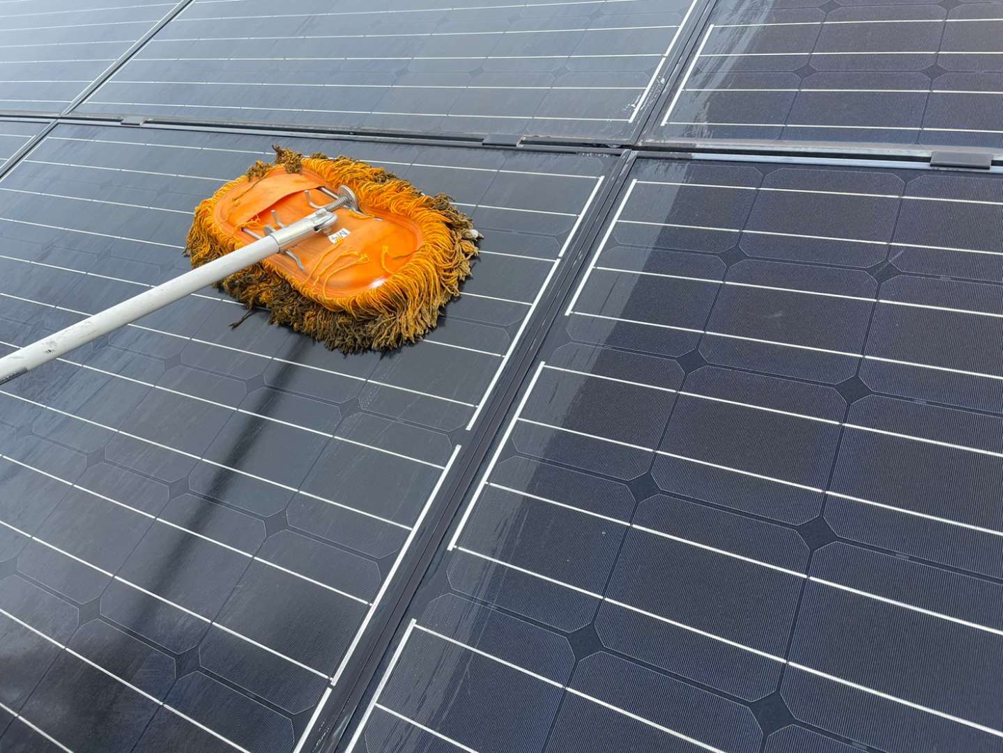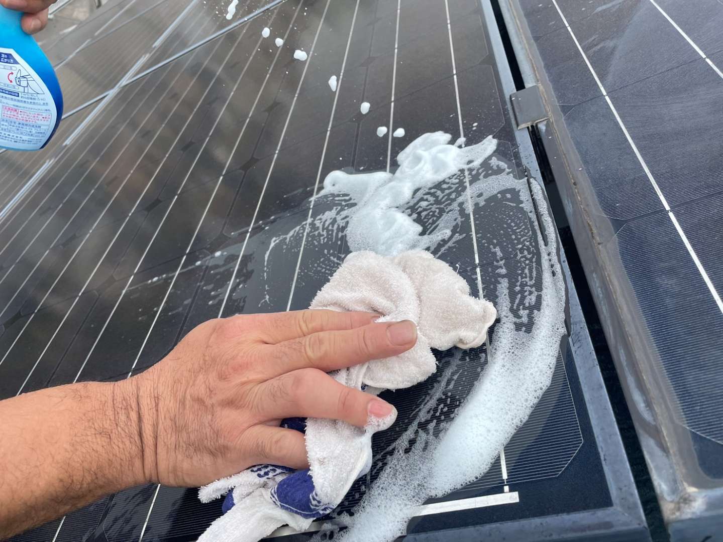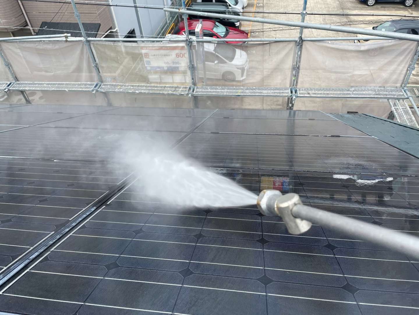 屋根に設置してある太陽光パネルも洗浄しています。