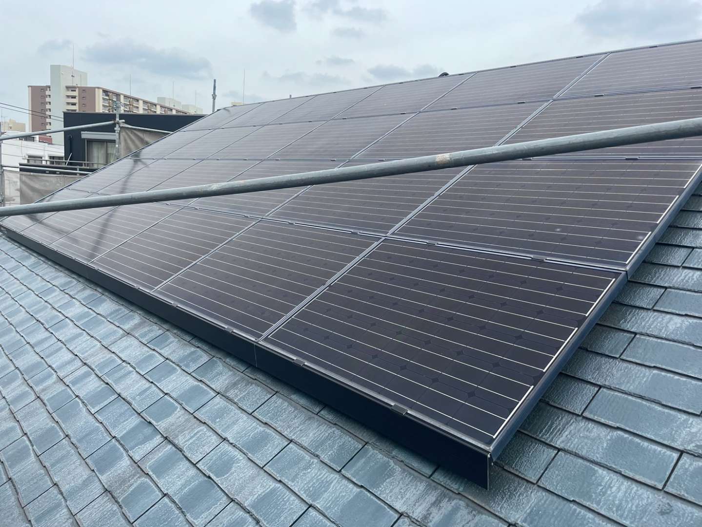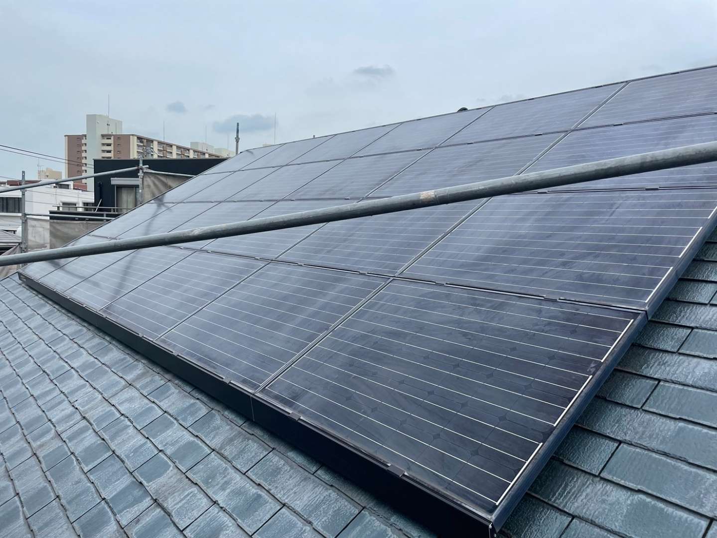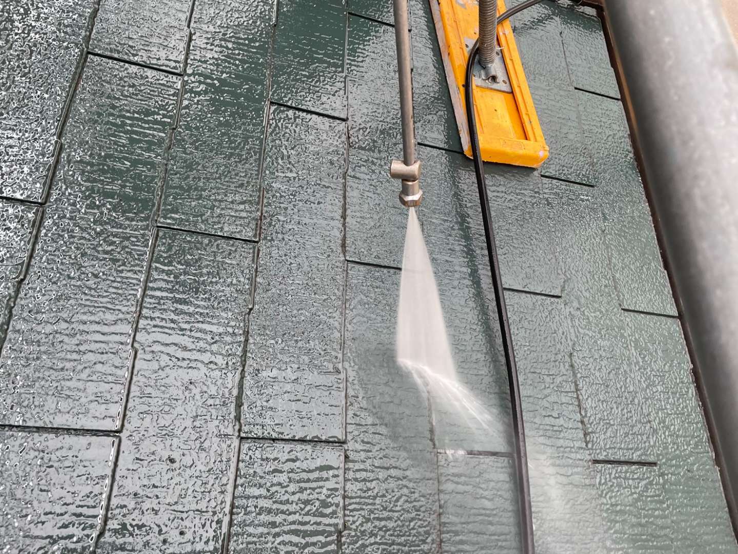 屋根に設置してある太陽光パネルも洗浄しています。