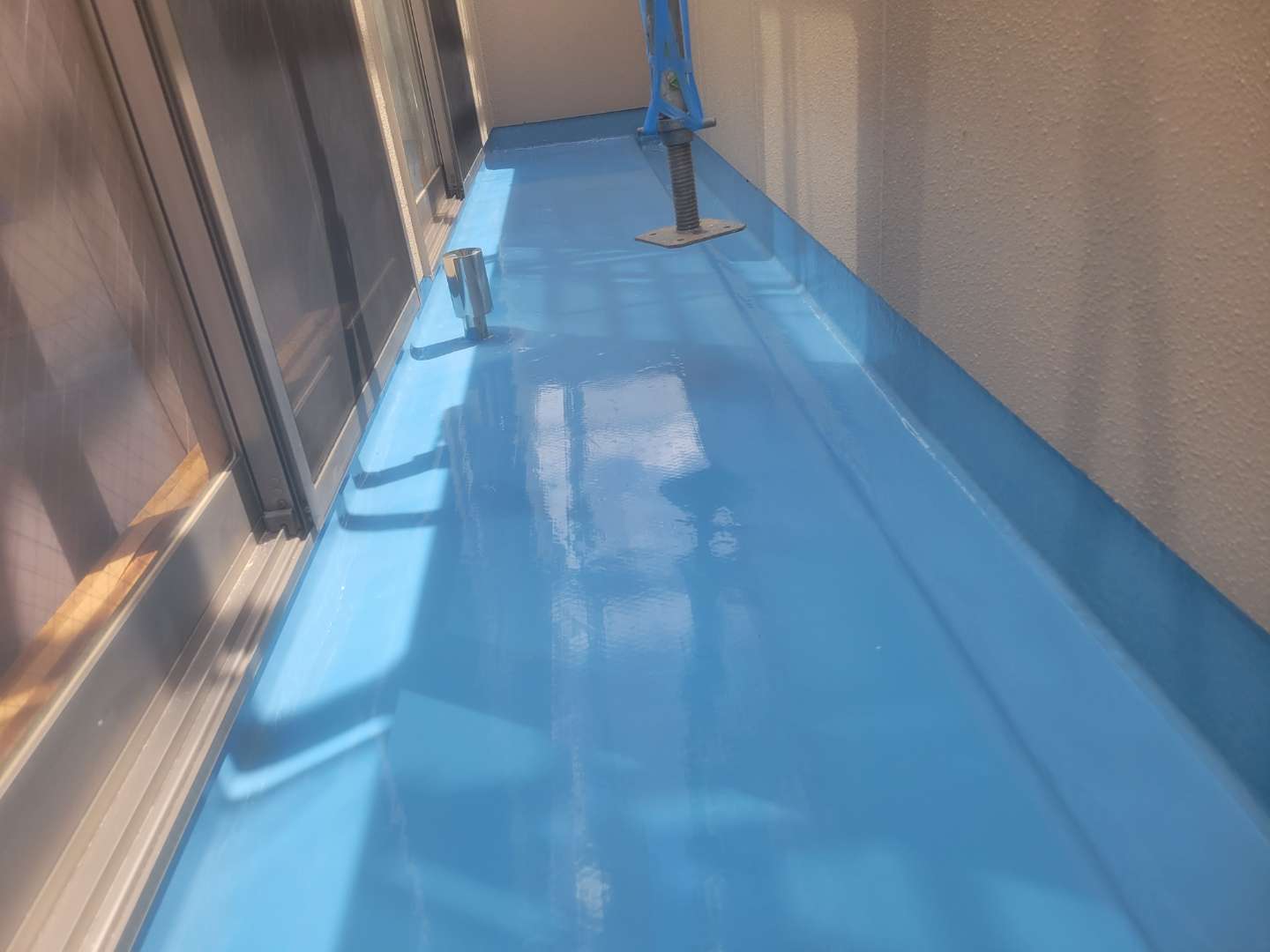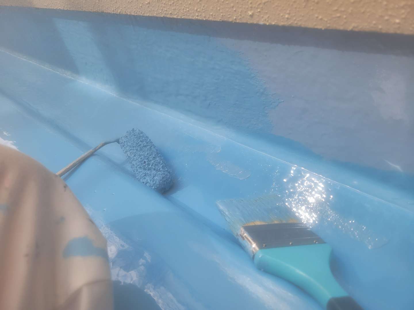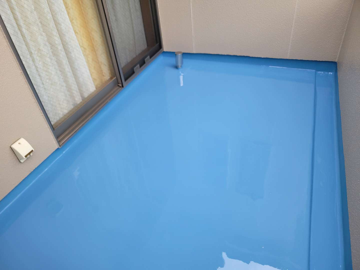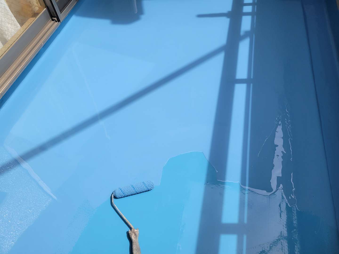 名古屋市北区のI様邸の昨日の作業内容は、付帯部塗装作業・ベランダ防水(ウレタン樹脂2層目塗装)作業を行っていました。