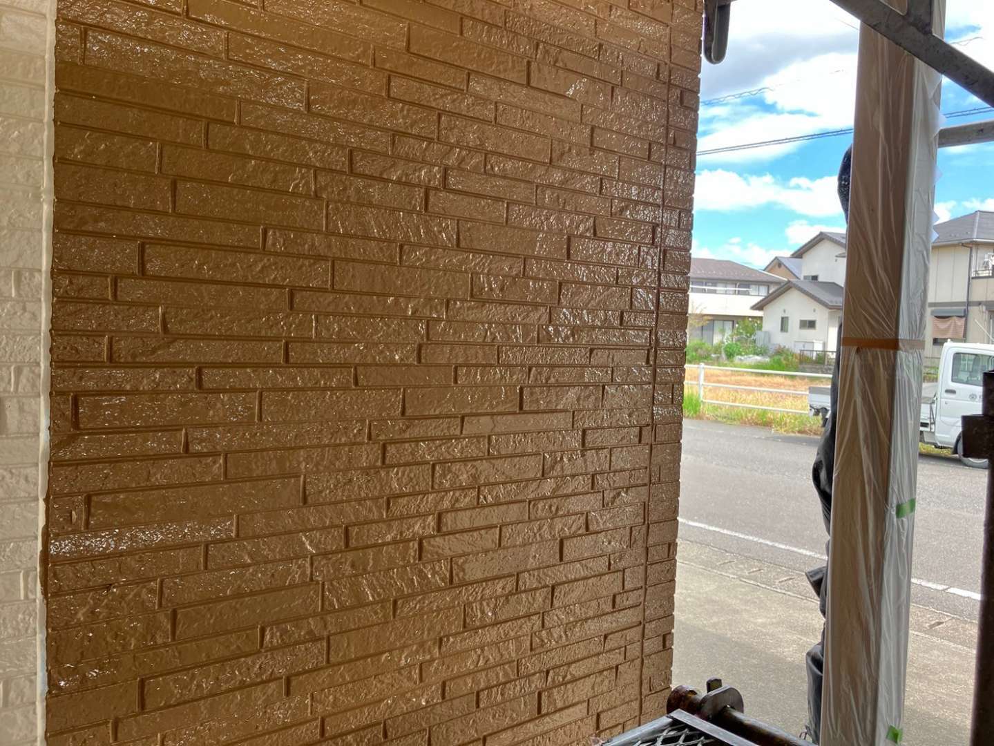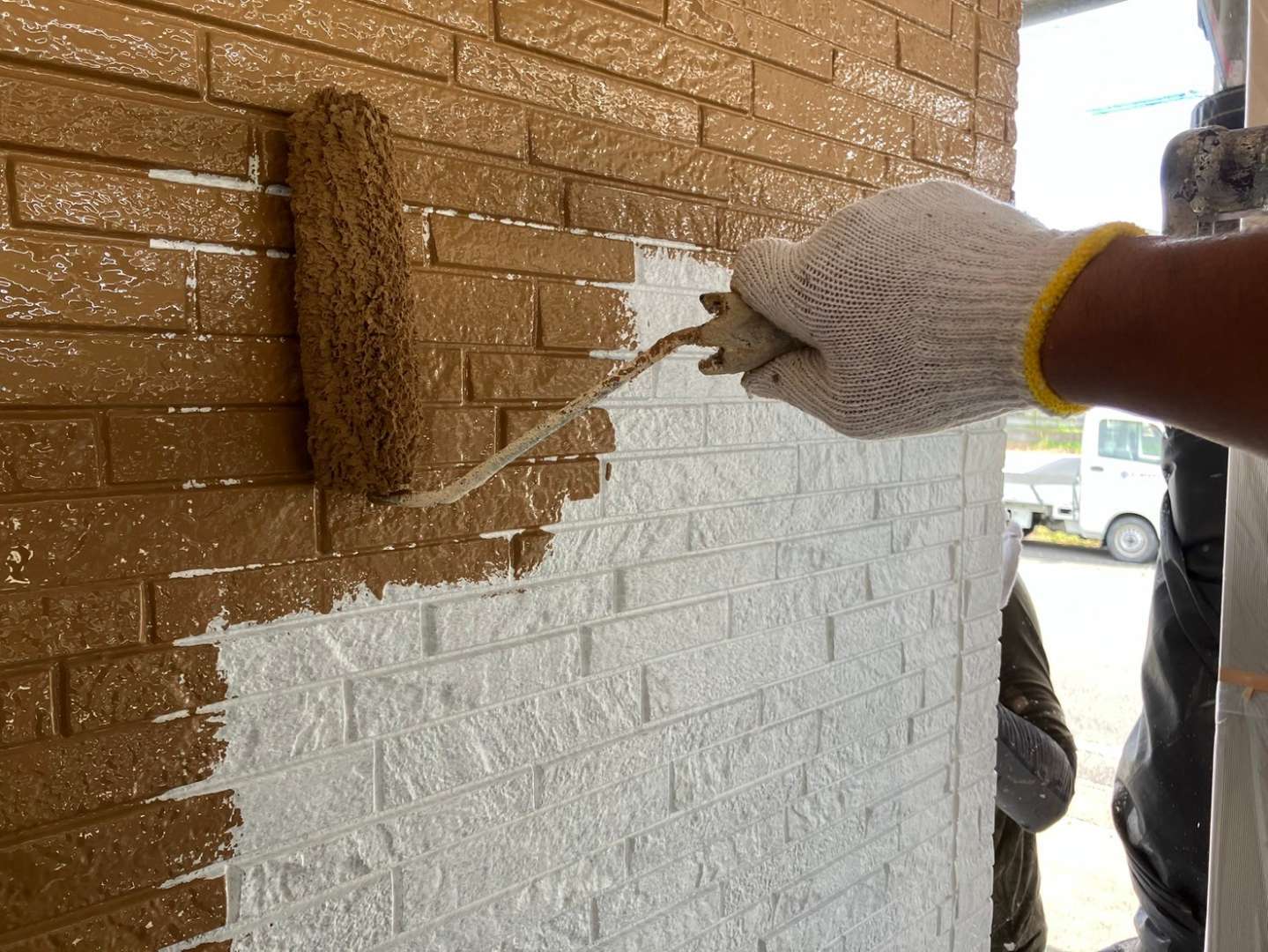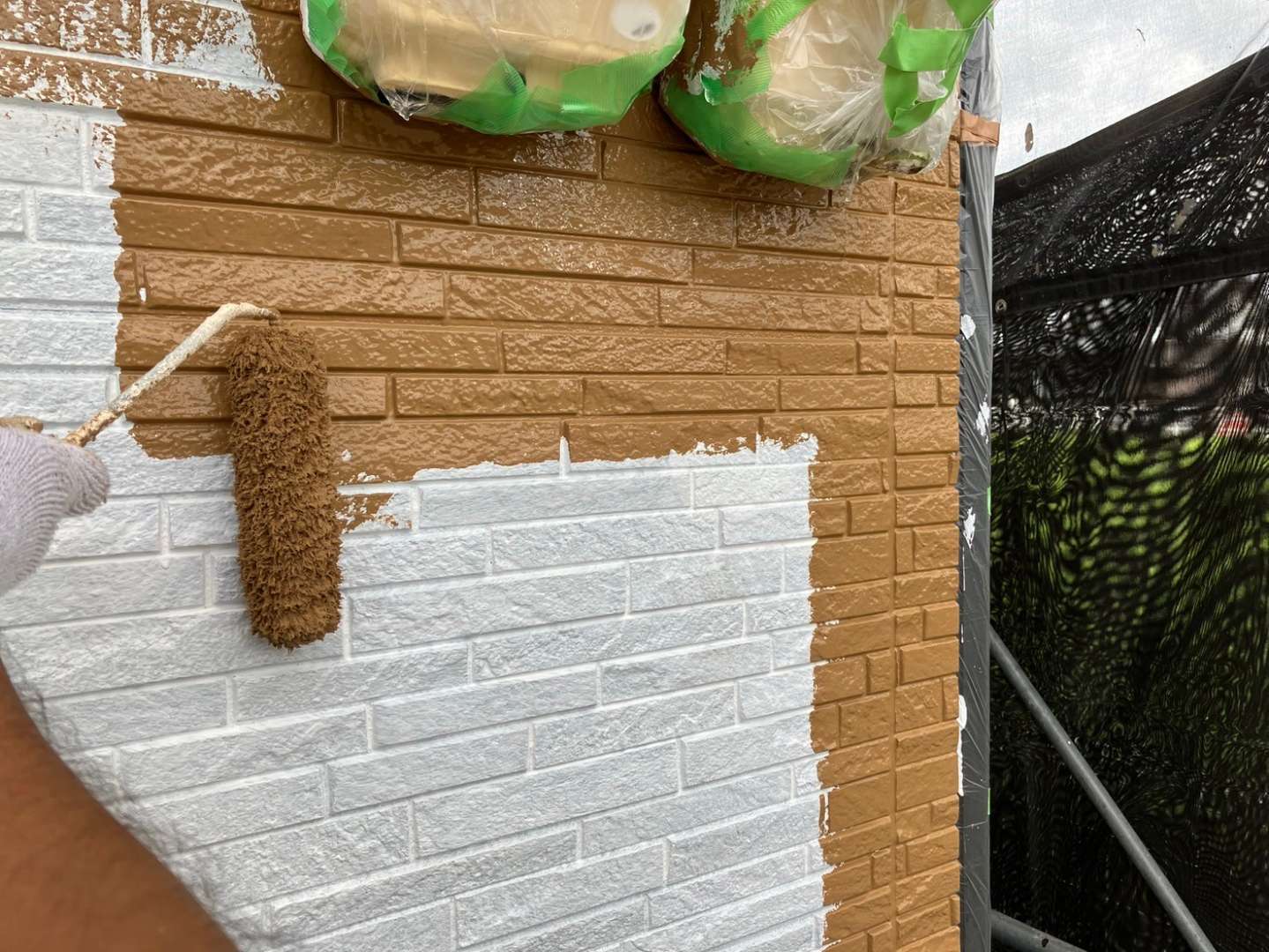 外壁色替え部分中塗り塗装作業