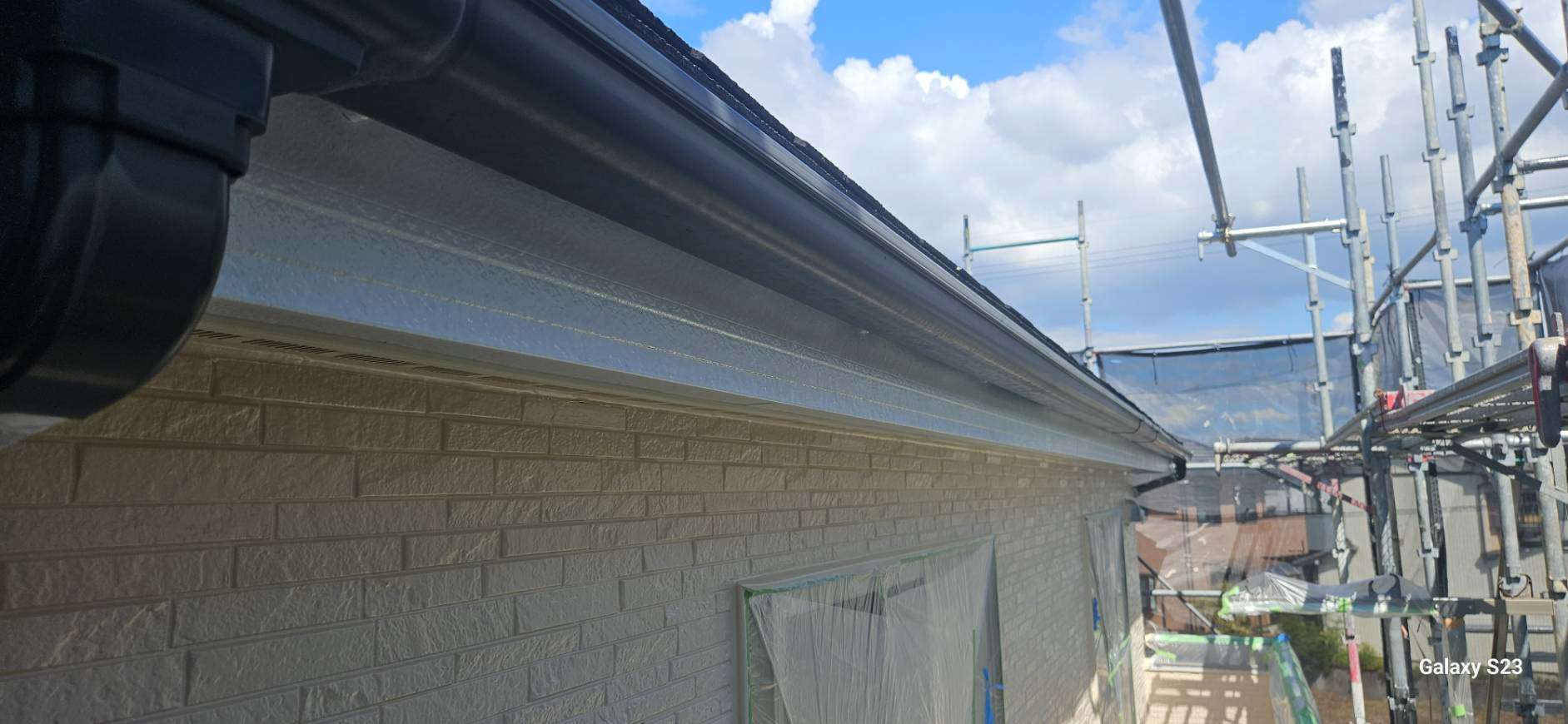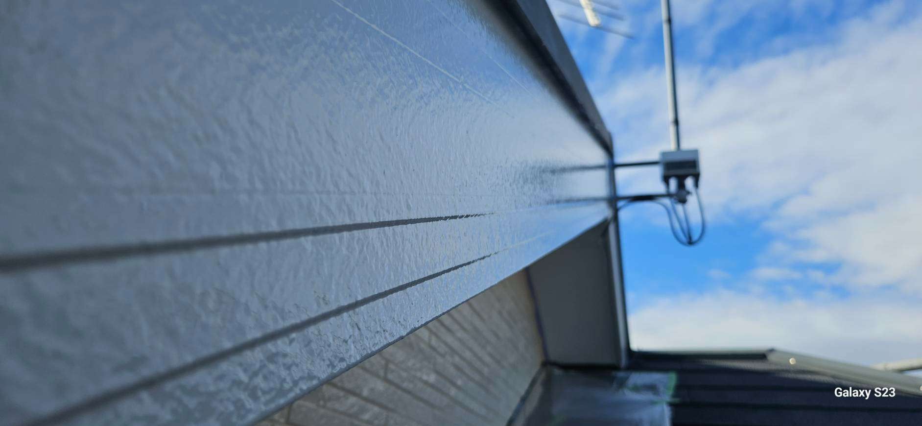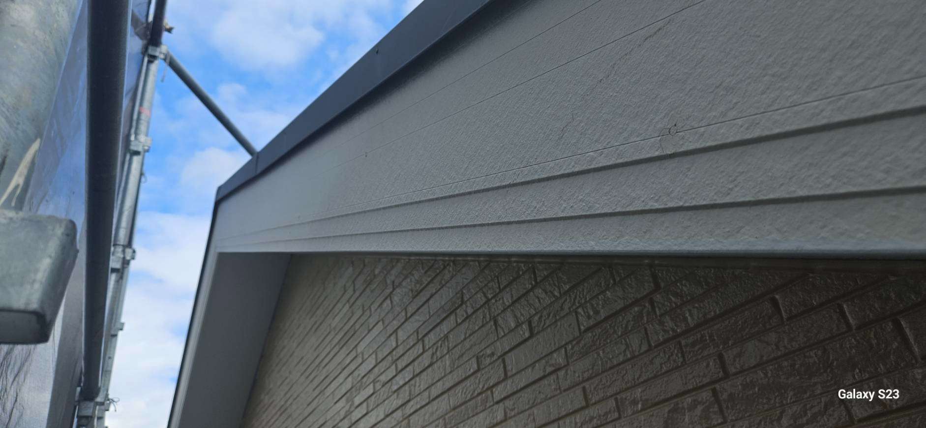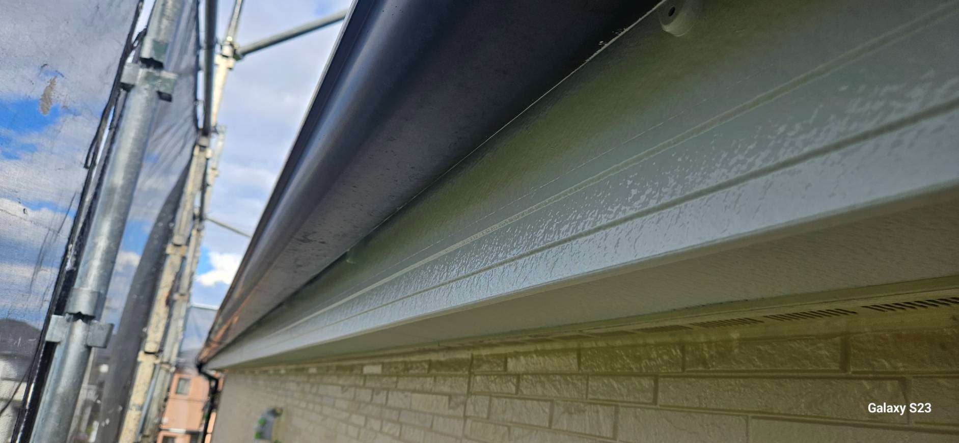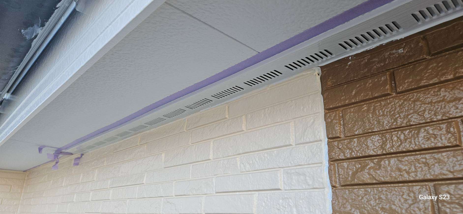 本巣郡O様邸の昨日までの作業内容は、外壁色替え部分の中塗り塗装と破風板・鼻隠し板の下塗り塗装と上塗り1回目、2回目塗装、換気口塗装作業を行っていました。